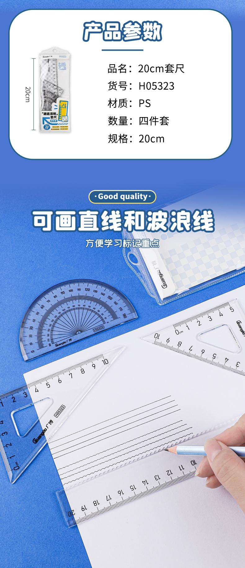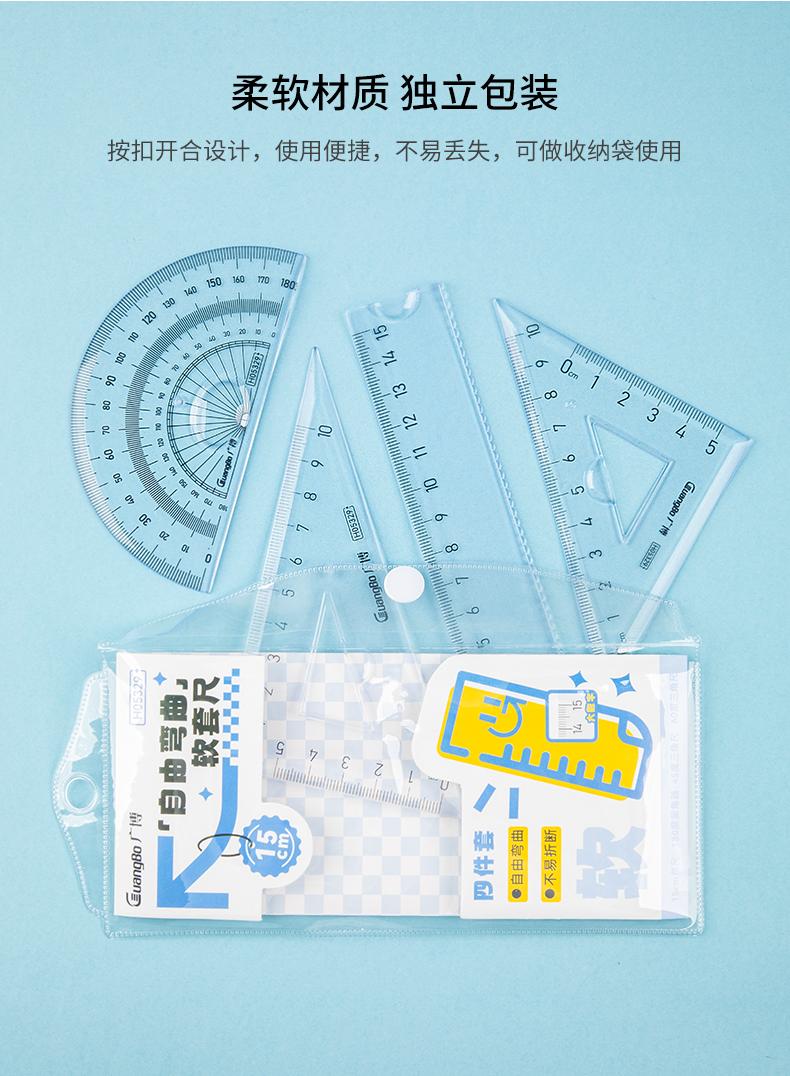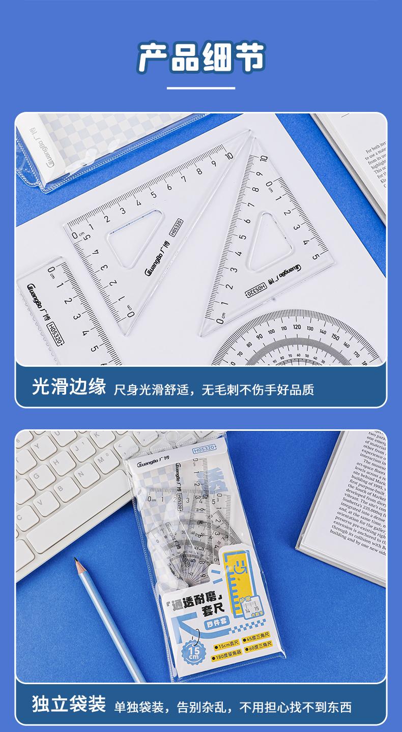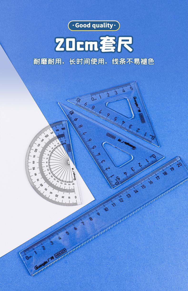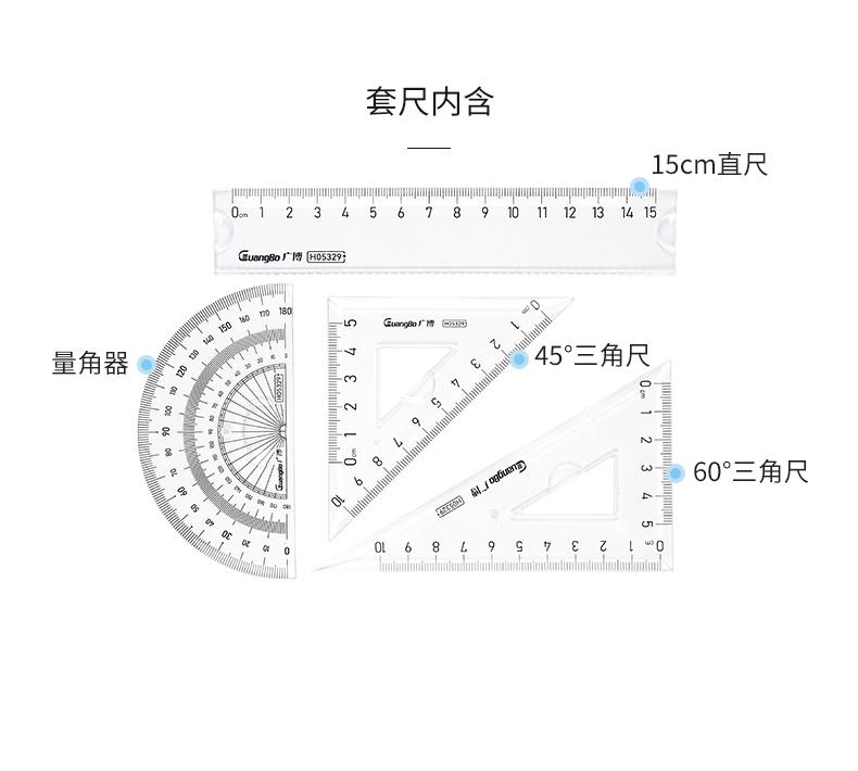 【广博】开学文具学生尺子套装(直尺/三角尺/三角板/量角器)套尺办公