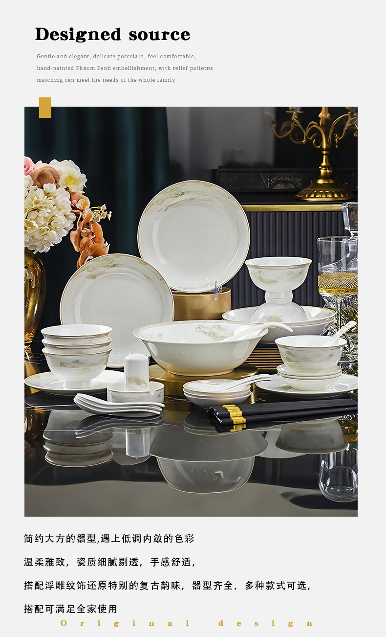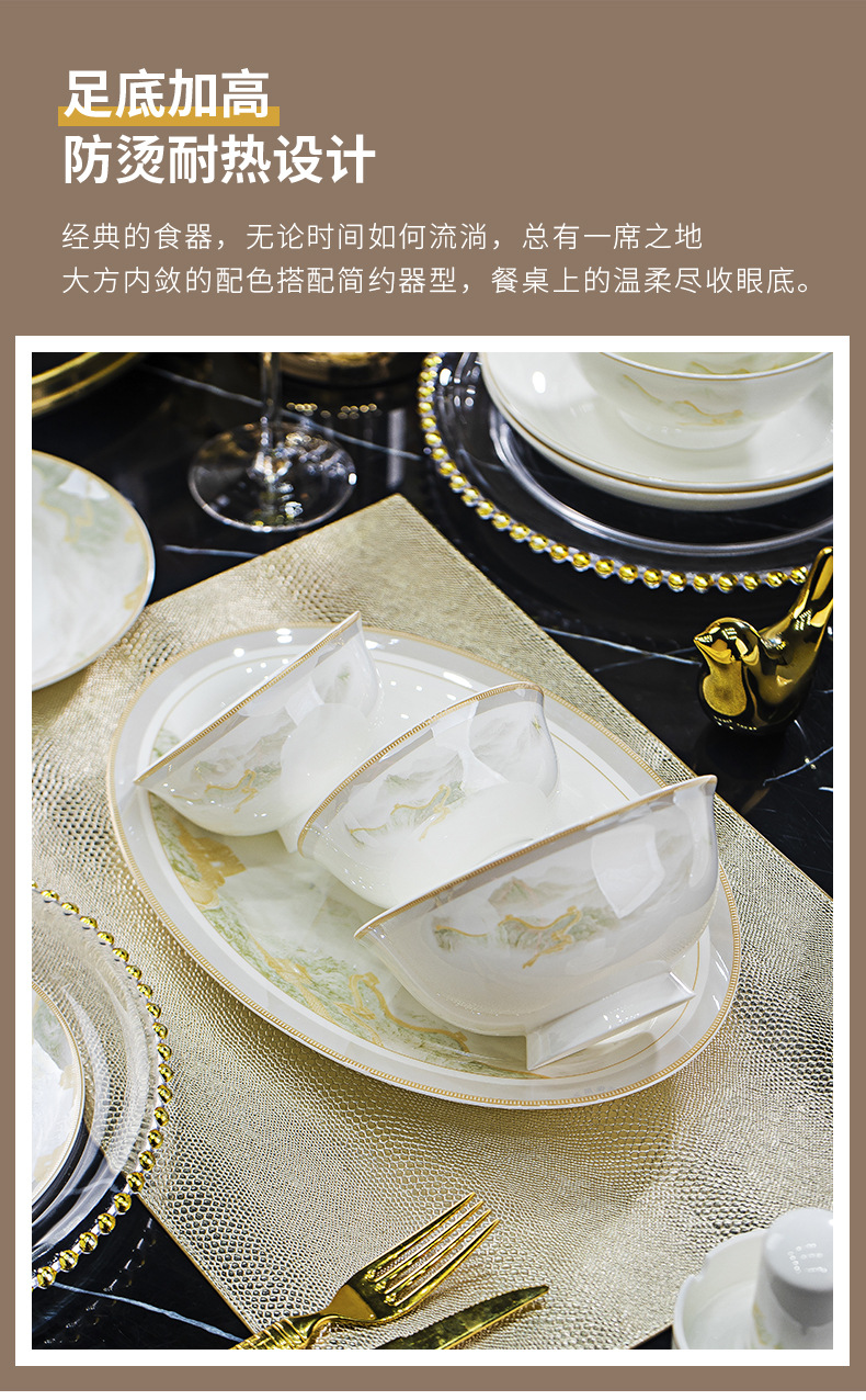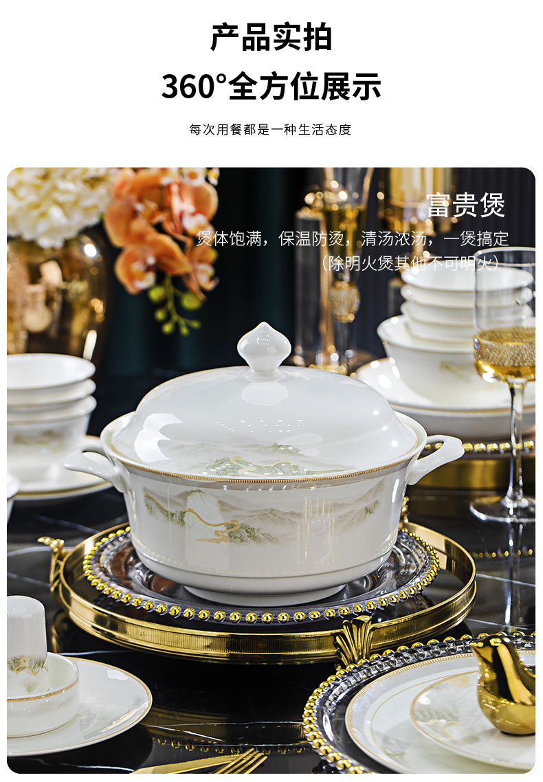 朕的潮代·大好河山景德镇陶瓷餐具套组 高温烧制骨瓷 防烫耐热 釉面光滑易清洁 彩绘精美图案 典雅大气