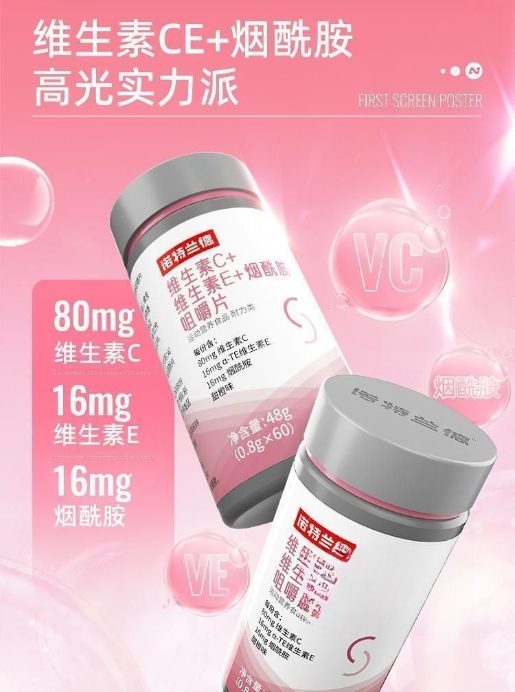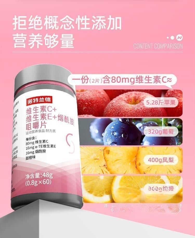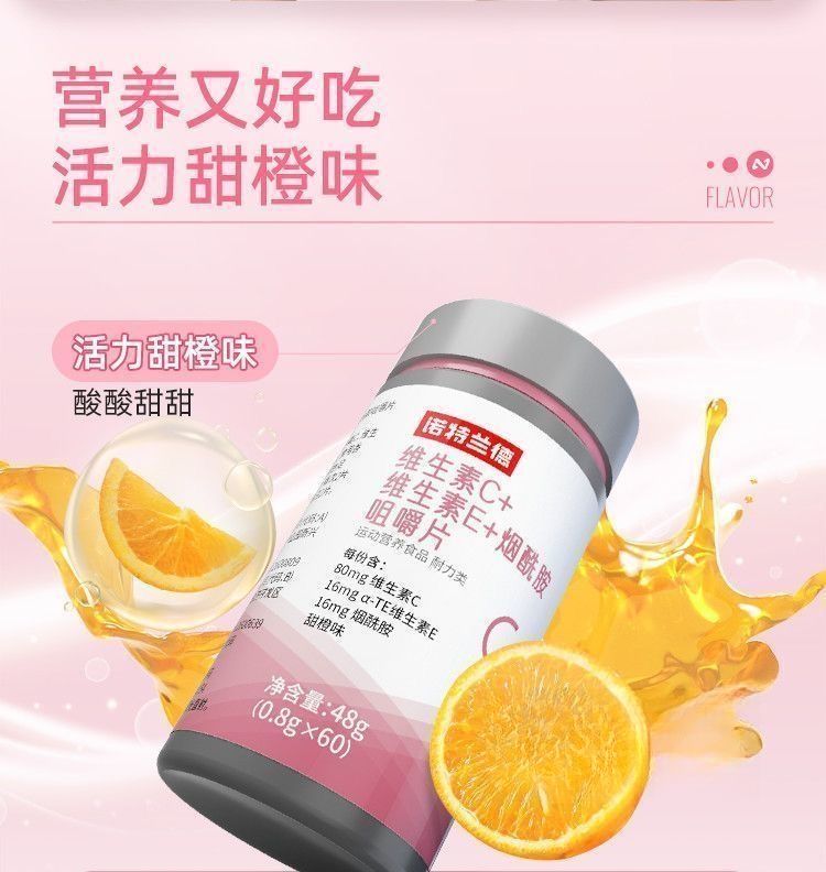 [诺特兰德]维生素C+维生素E+烟酰胺咀嚼片(甜橙味)48g(0.8g*60片)/瓶