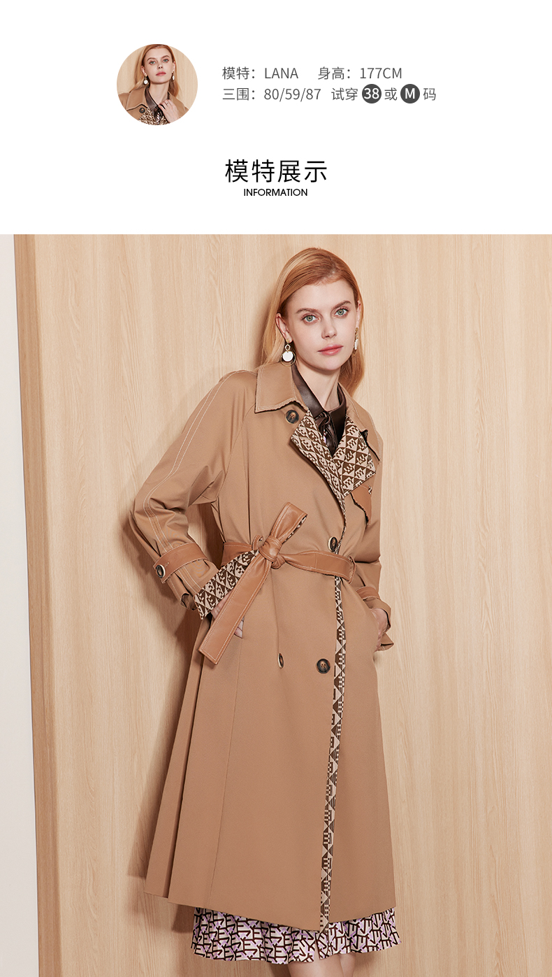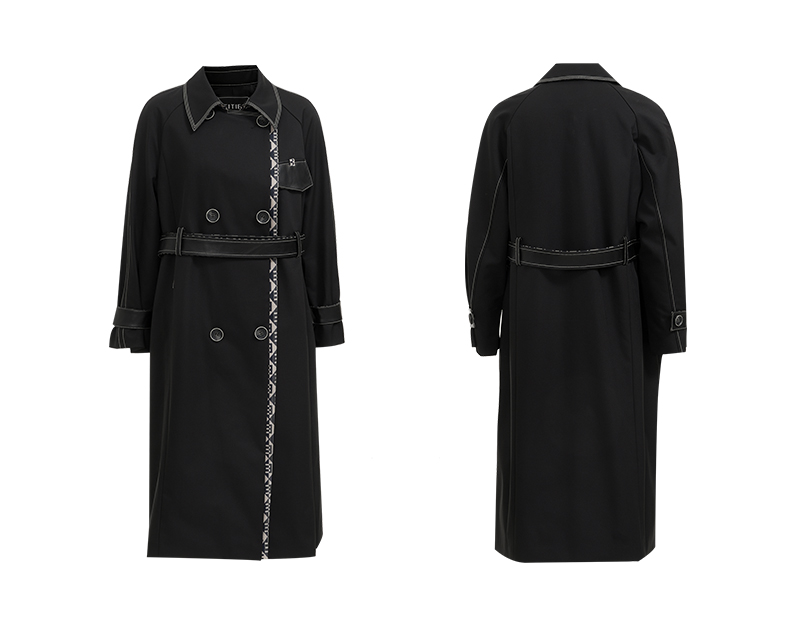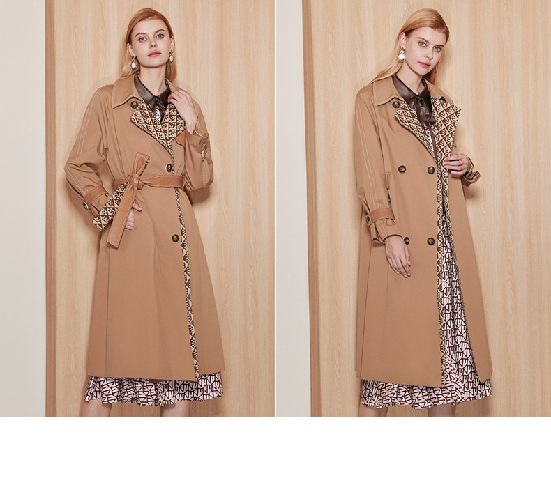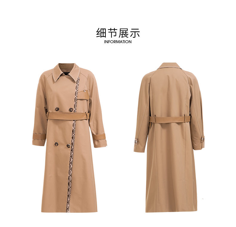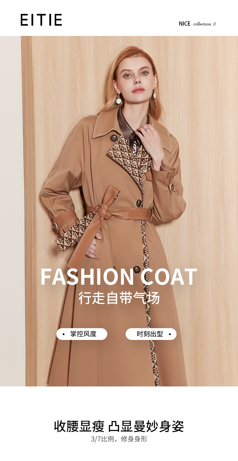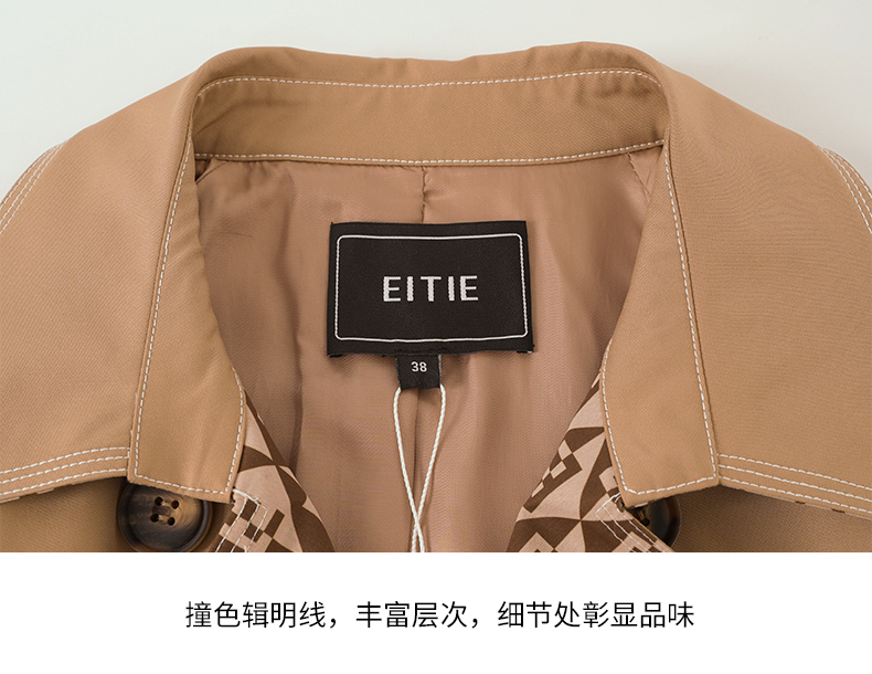 EITIE爱特爱秋季新款宽松廓形双排扣翻领长款显瘦风衣外套女7104808
