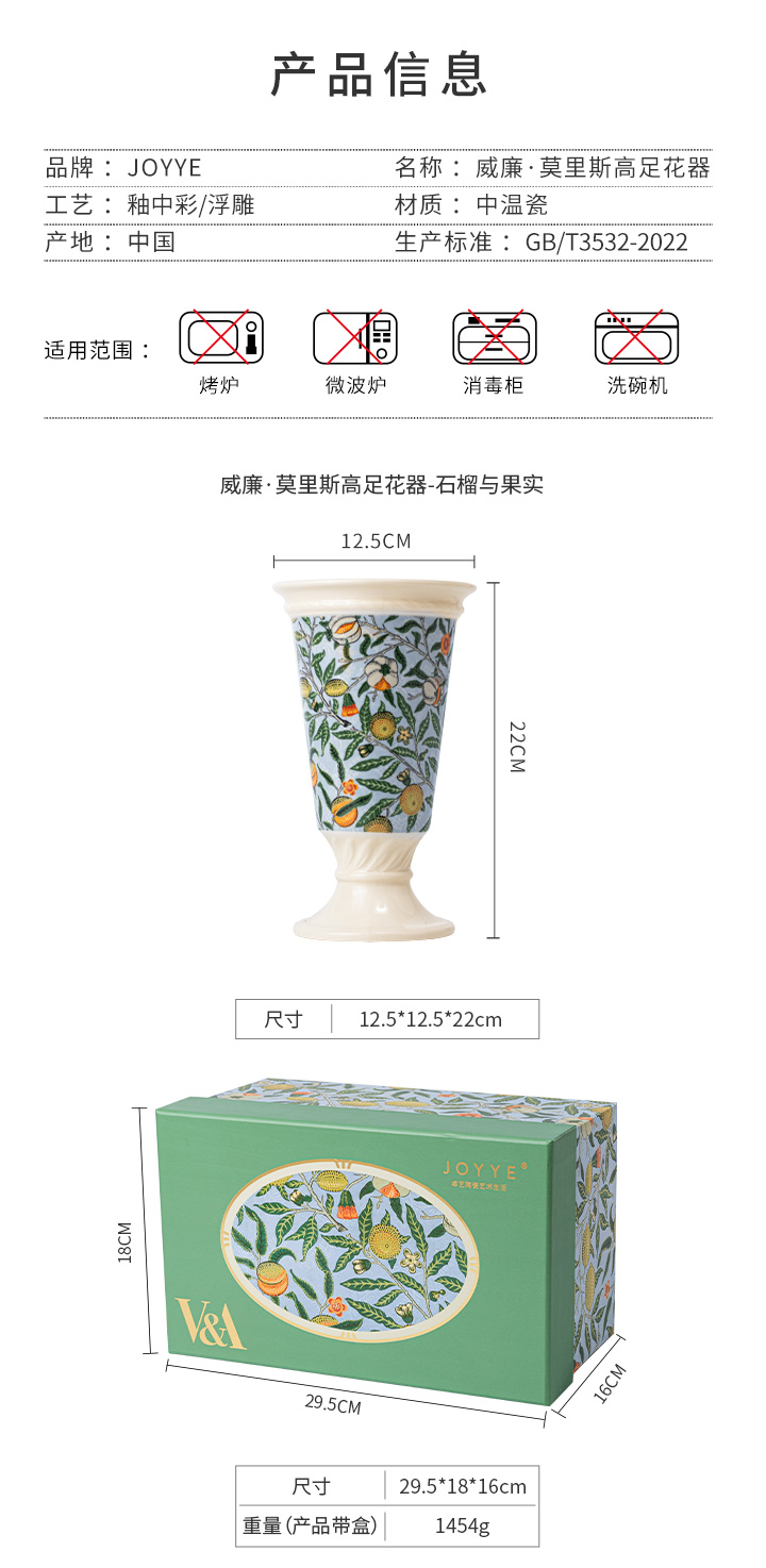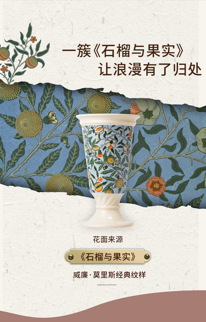 JOYYE威廉·莫里斯-艺术陶瓷花瓶摆件轻奢高级感客厅复古设计感插花花器大口径