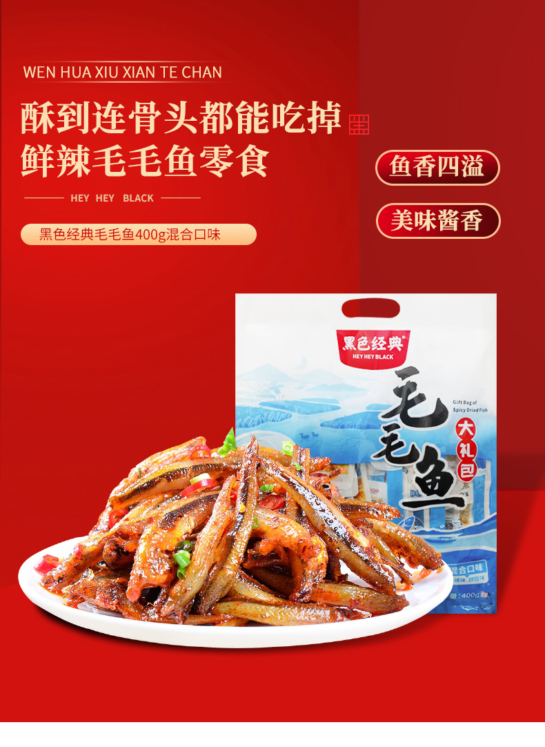 【超值礼包】黑色经典毛毛鱼大礼包香辣糖醋混合口味400g/包
