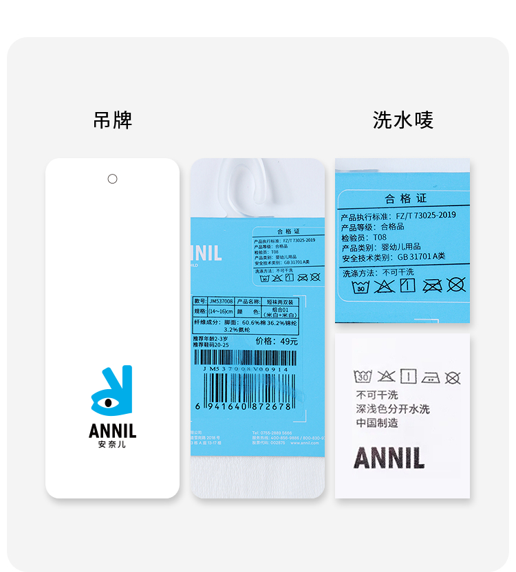 【实体店同款】男女童短袜两双装秋季新款安奈儿童装JM537008