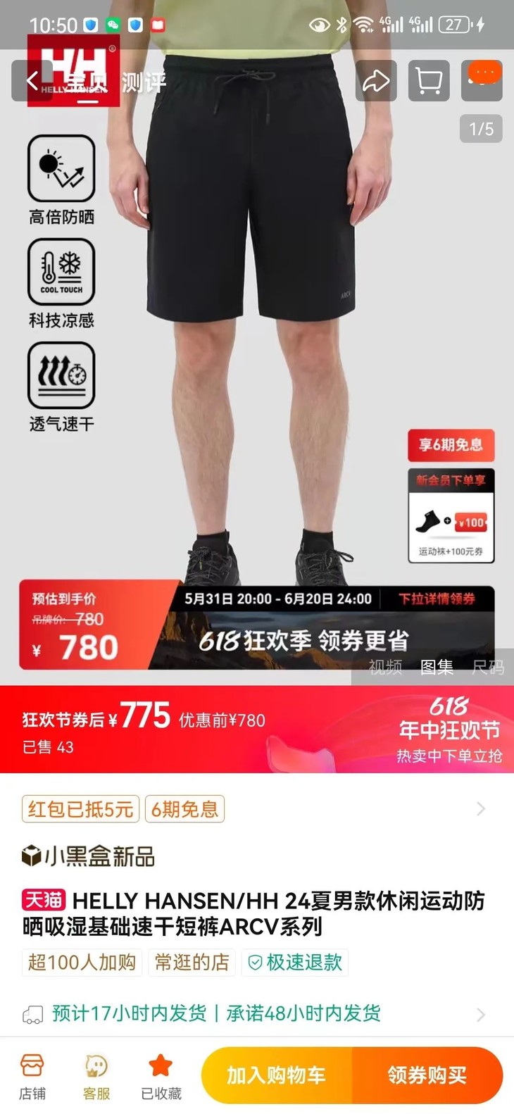 HH 夏季男款休闲运动防晒吸湿基础短裤ARCV系列