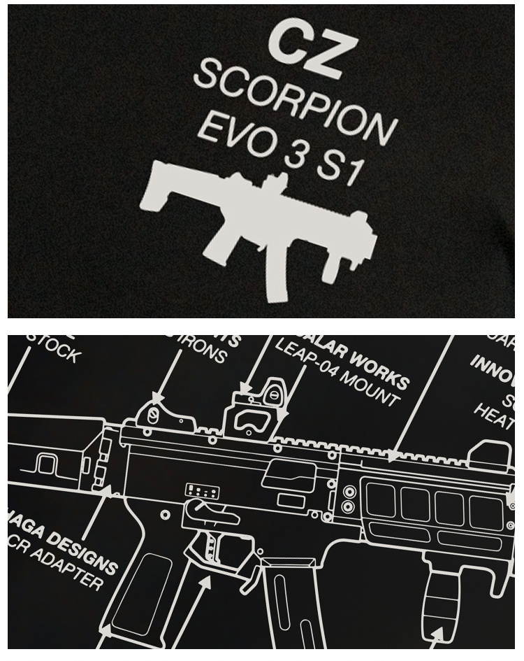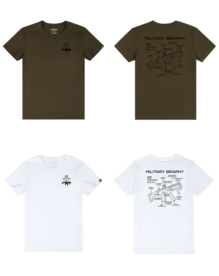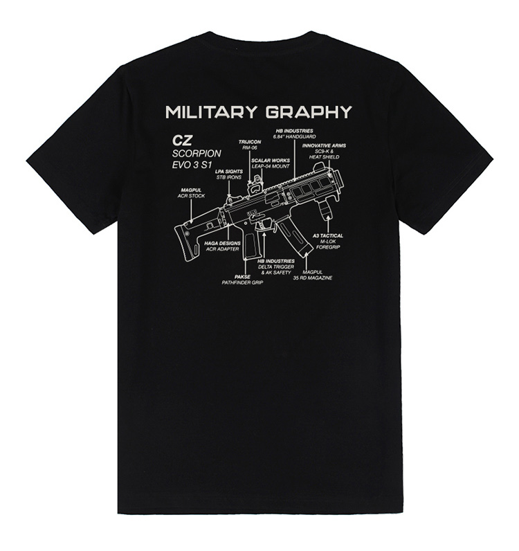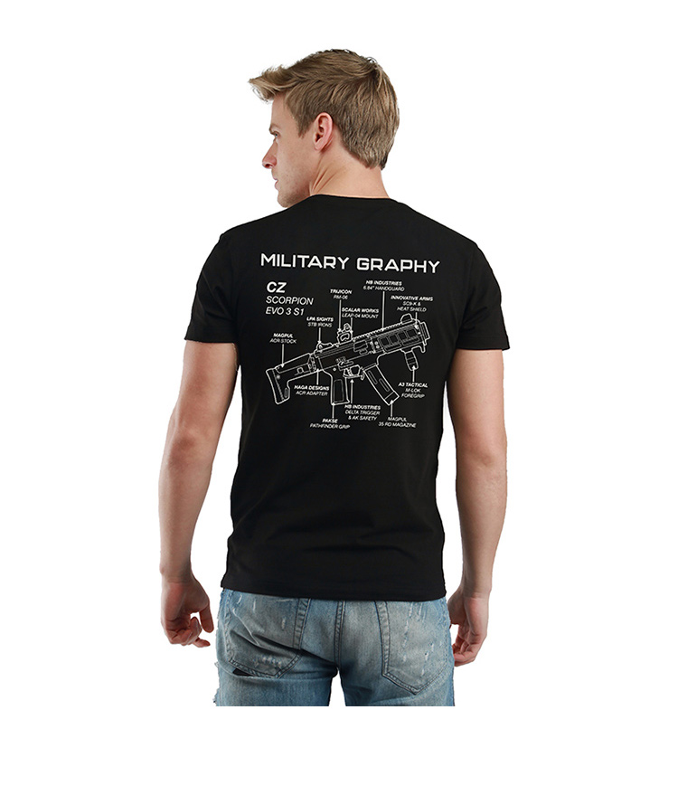 自由基地男青年机枪结构图案印花设计简约战术短袖T恤休闲合体衫 NMT-1799