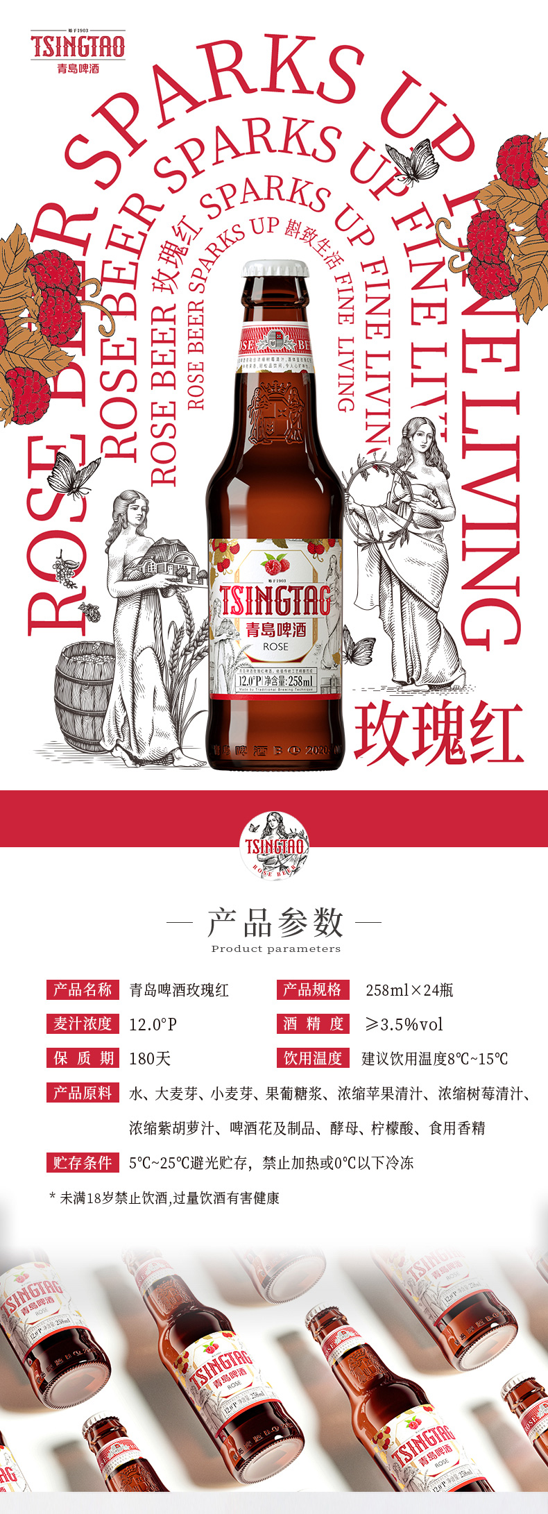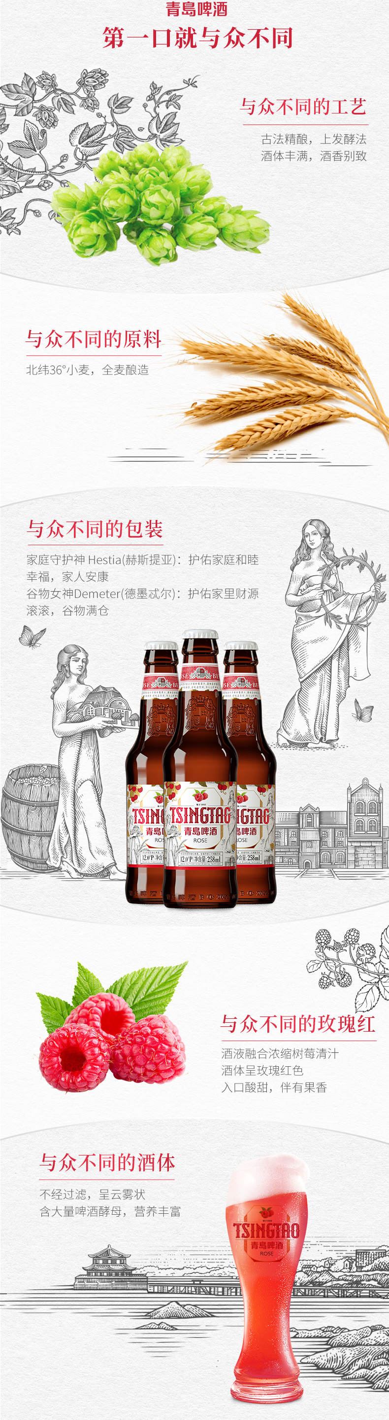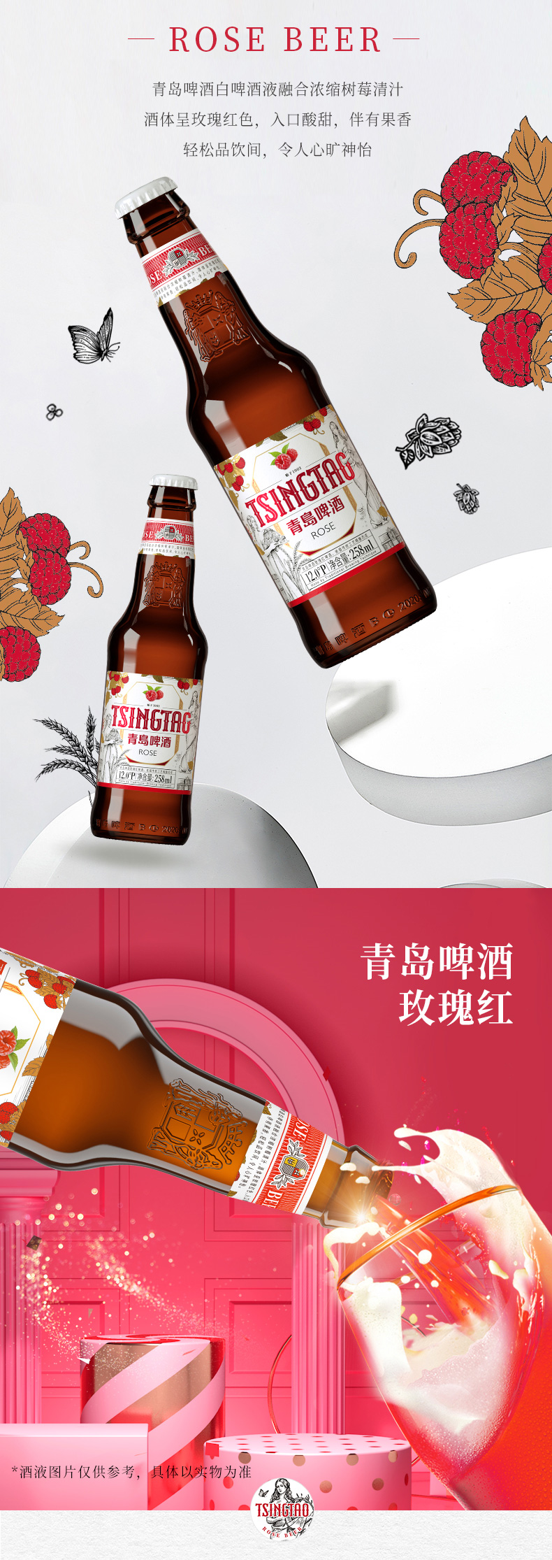【青岛啤酒】玫瑰红 白啤12度258ml*24瓶