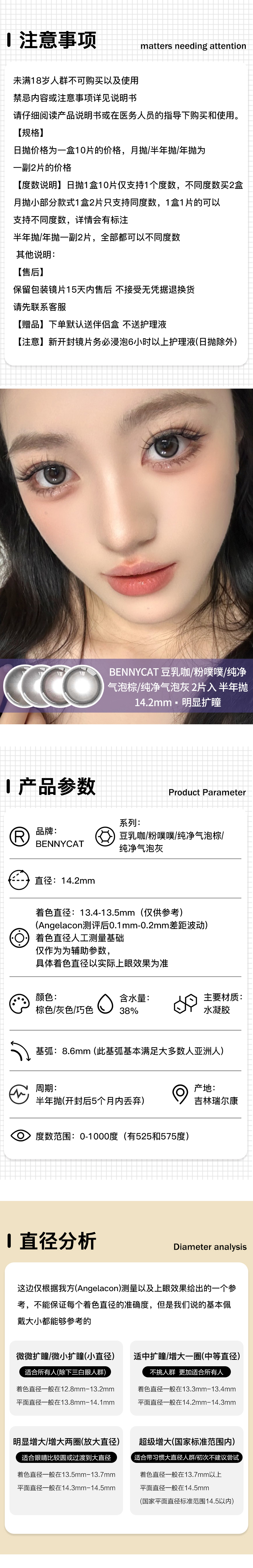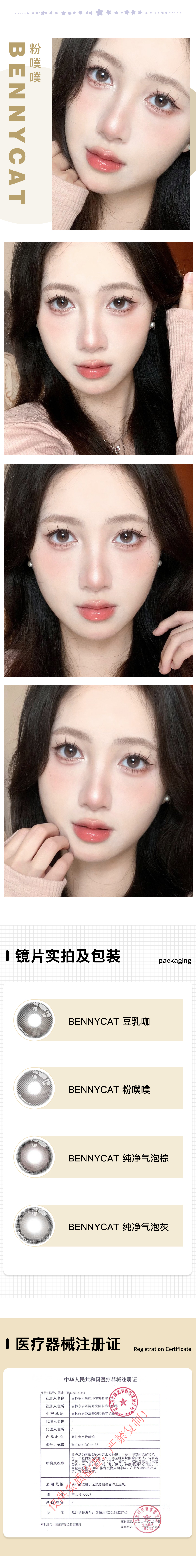 BENNYCAT / 豆乳咖/粉噗噗/纯净气泡棕/纯净气泡灰 / 半年抛美瞳 / 2片入 / 14.2mm / 明显扩瞳