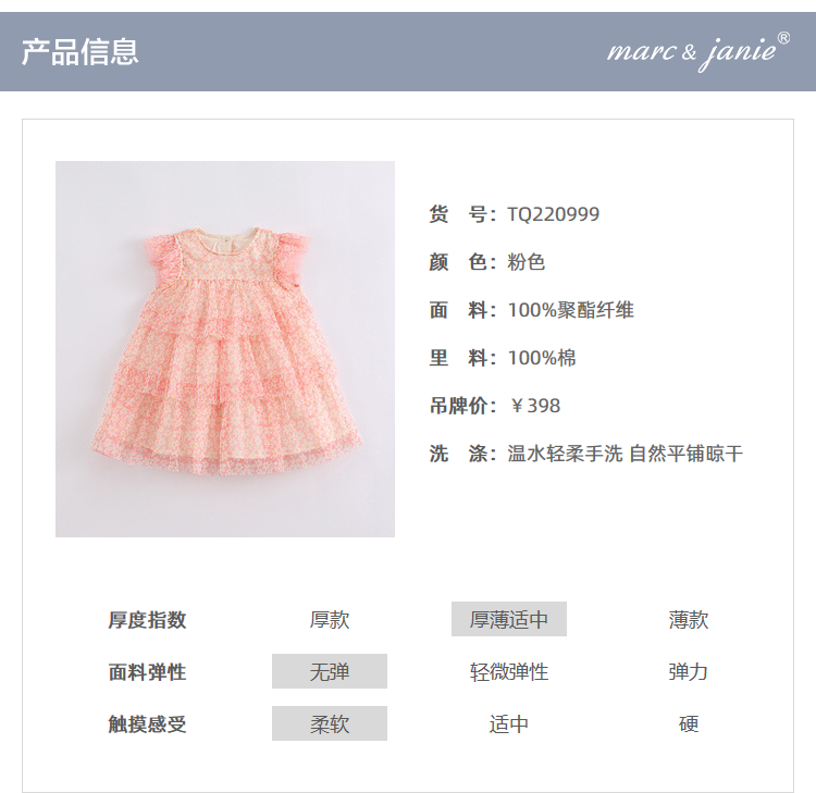马克珍妮2022年夏装新款 女童蝴蝶袖网纱背心裙 儿童裙子220999