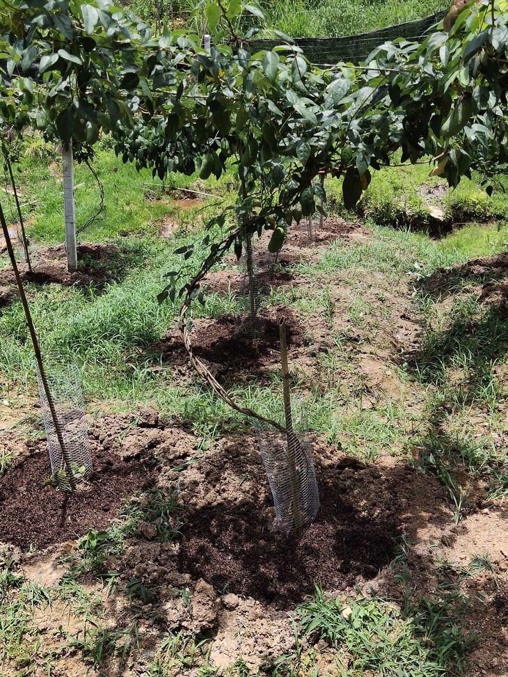 有了八月瓜生态种植经验,瞿大哥毅然决定改变整个农场的种植模式,采用六不用模式,即:不用除草剂、不用化肥、不用农药、不用激素、不用地膜、拒绝转基因。用羊粪、菌菇棒、环保酵素及土著菌等发酵制作堆肥50多吨,用糖蜜、废水果、废旧蔬菜及鱼肠鱼肚鱼头等制作农用酵素10多吨,并将发酵好的酵素全部用到果园,增加土壤有机质。