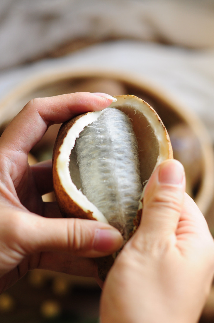 八月瓜的果肉呈乳白色,具有淡淡的甜味。它的口感很像香蕉,入口以后,香味会扩散到整个口腔。八月瓜的籽很多,较大,可吞食,不要咬破,会有非常苦涩。