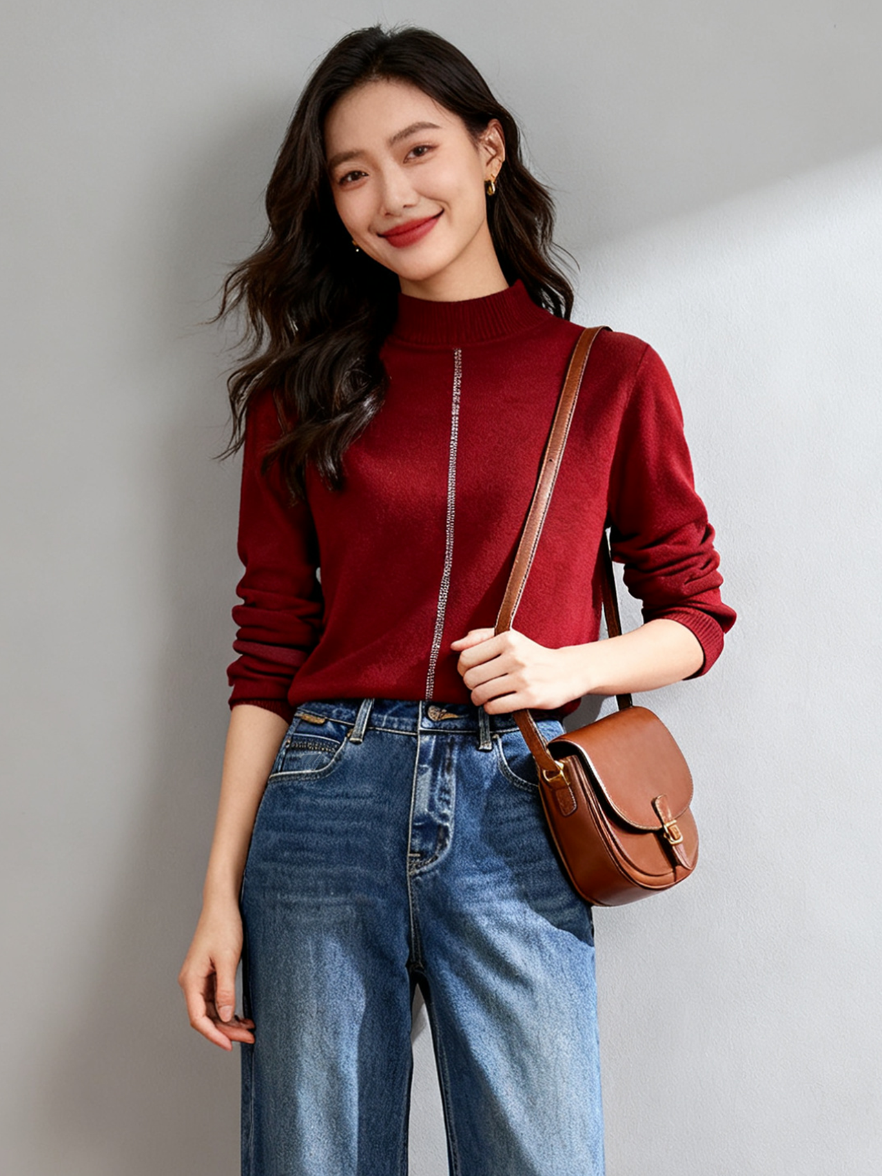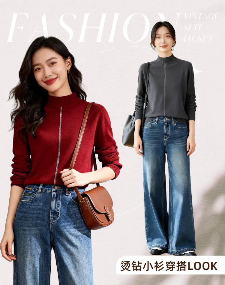 💫 烫钻小衫✨ 半高领,烫钻线条,小心机基础款✨ 合体略有余量显瘦不紧身🎯 春秋冬三季可穿,胖瘦皆宜,是不挑人的好看