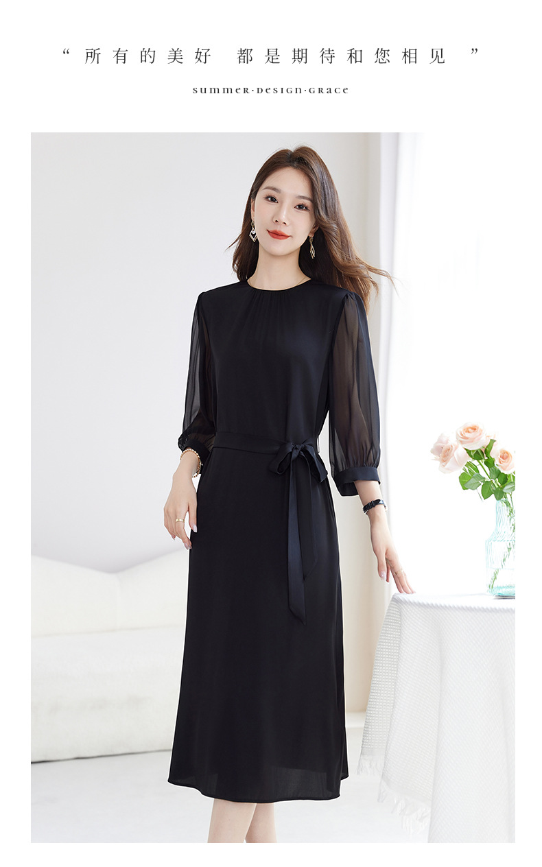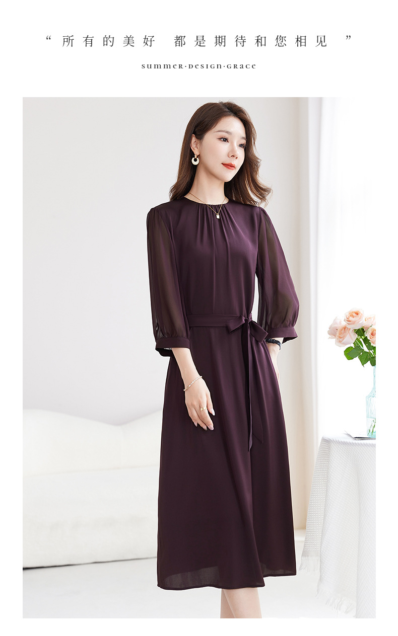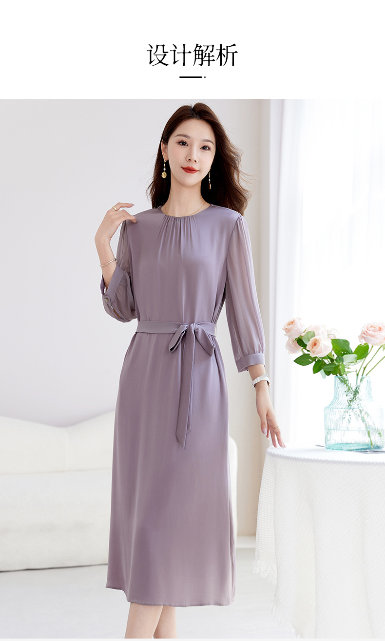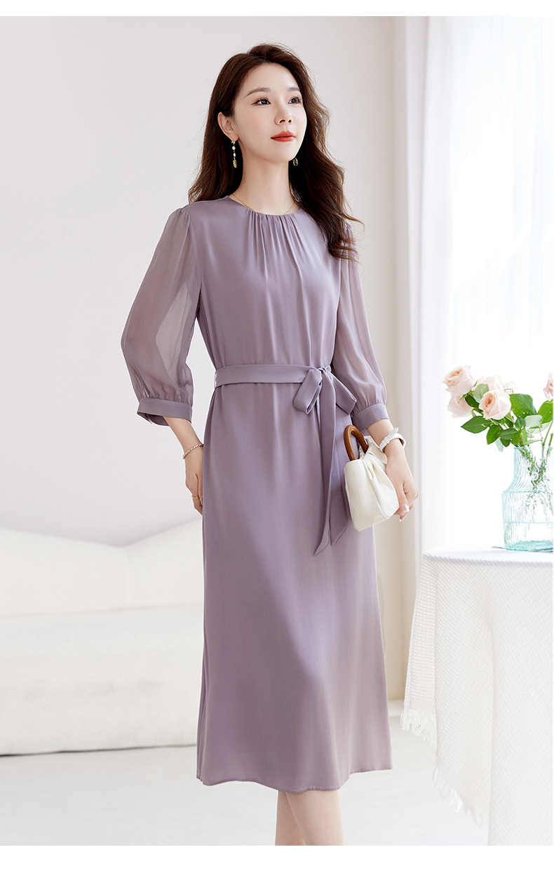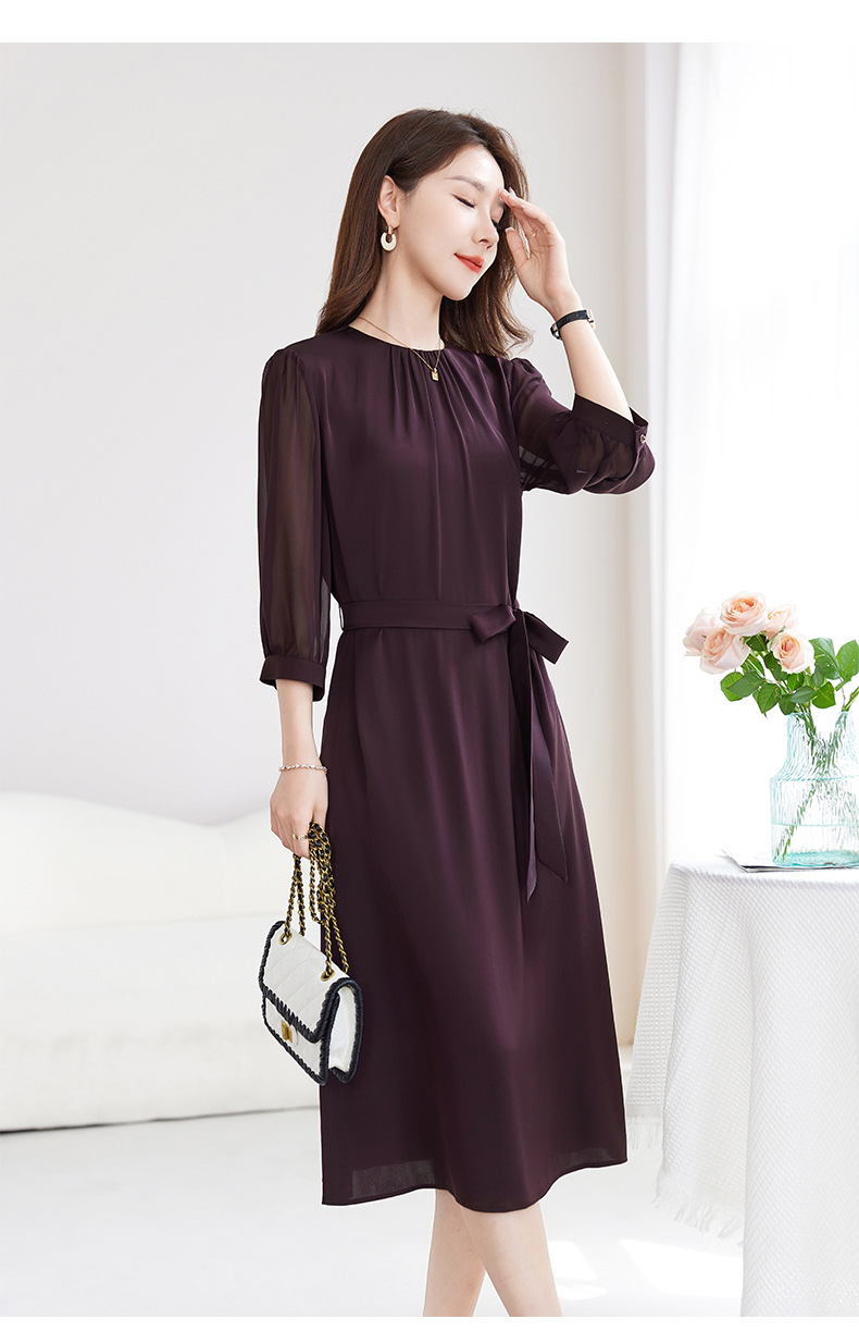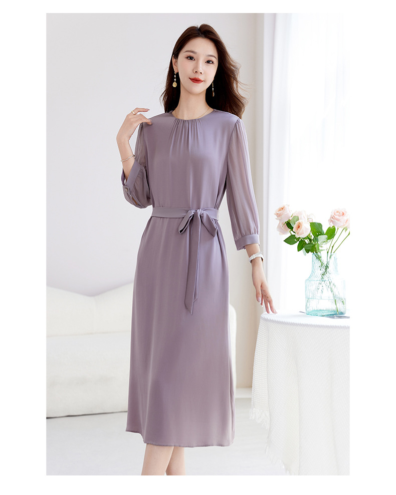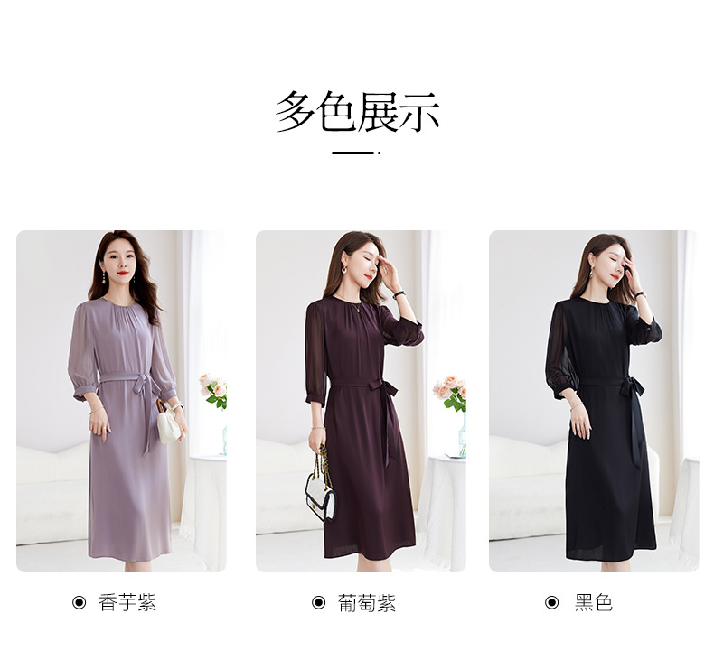 QS-82599200【桑蚕丝】素雅纯色真丝弹力双乔中长裙收腰夏桑蚕丝连衣裙女9200