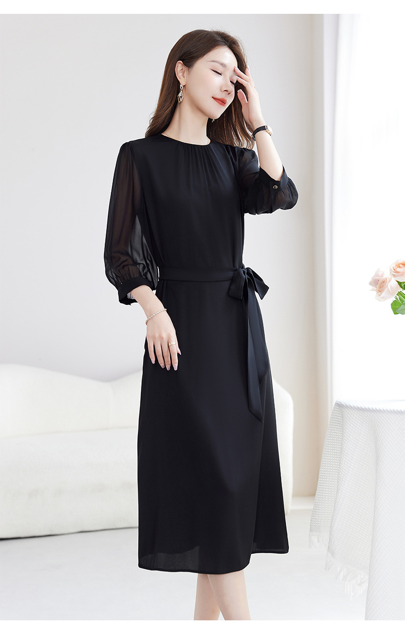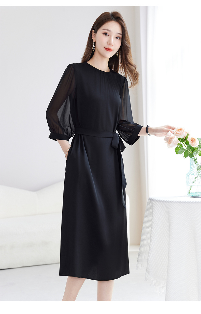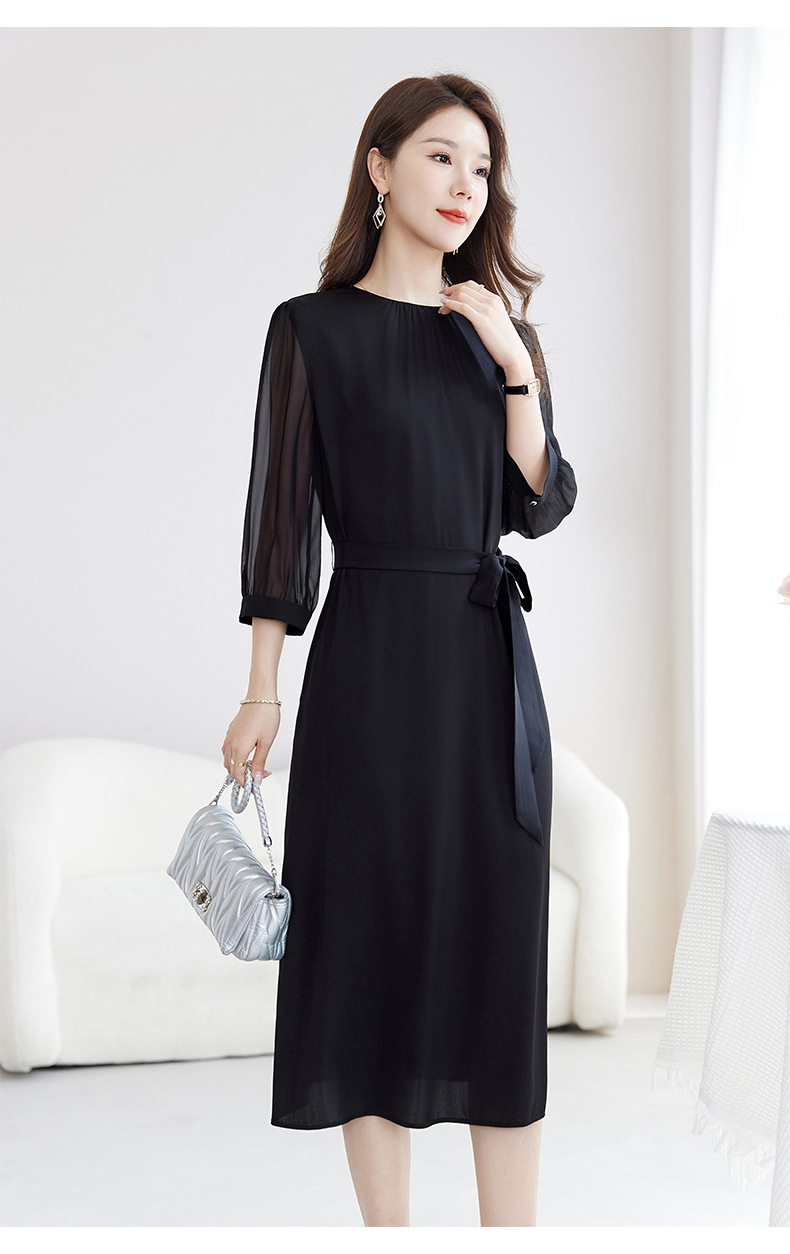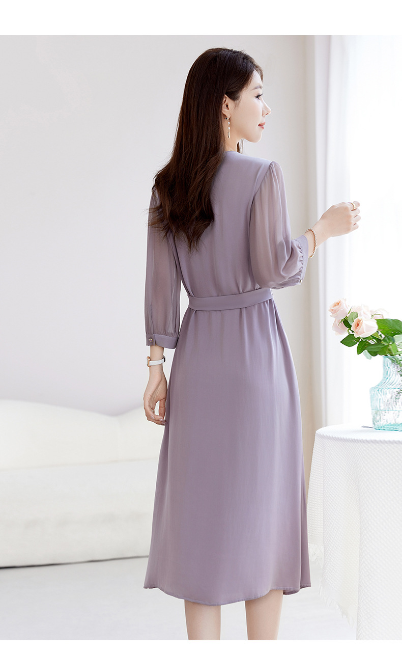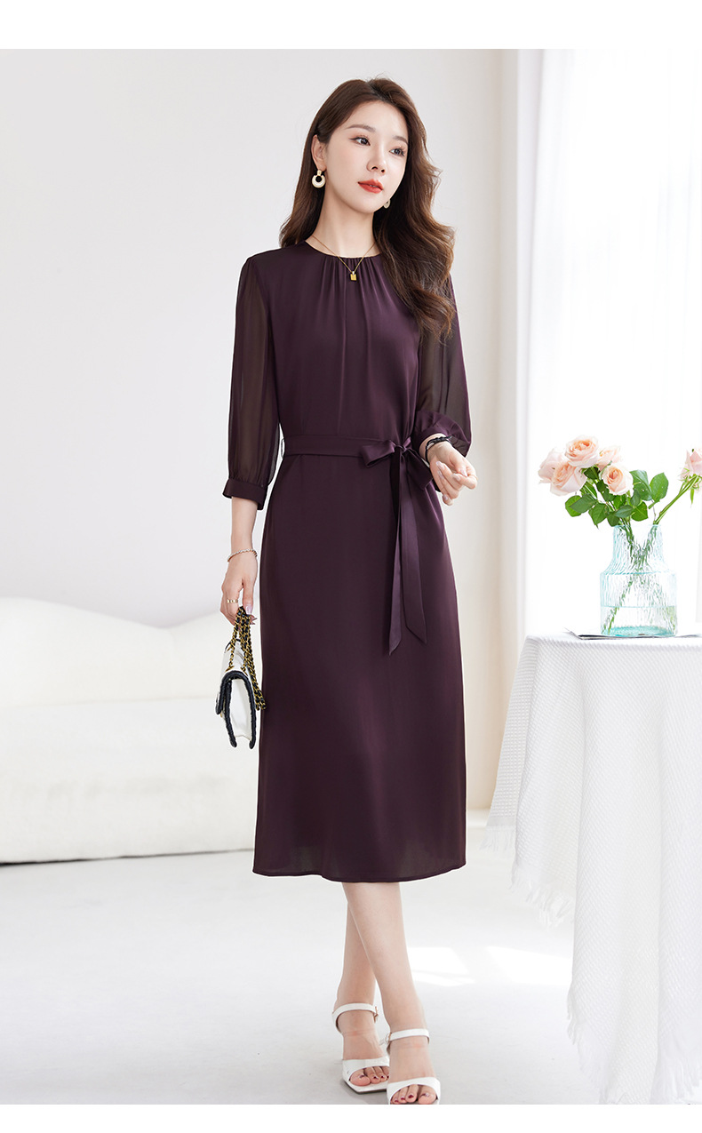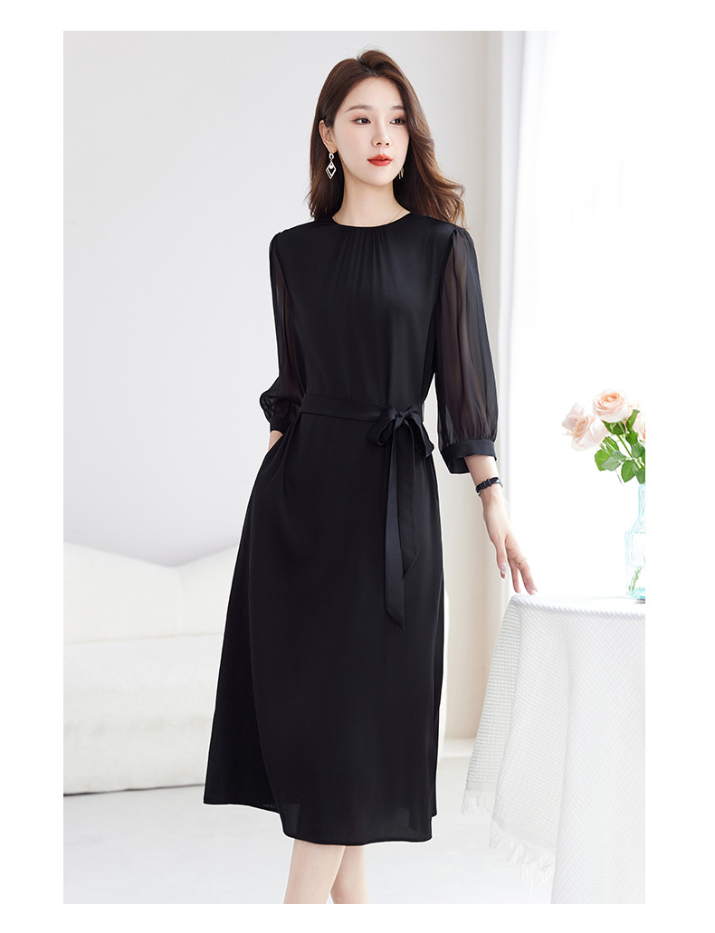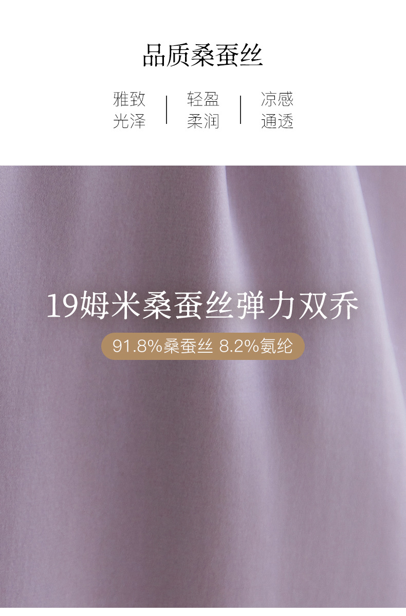 QS-82599200【桑蚕丝】素雅纯色真丝弹力双乔中长裙收腰夏桑蚕丝连衣裙女9200