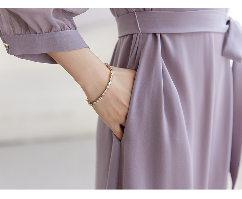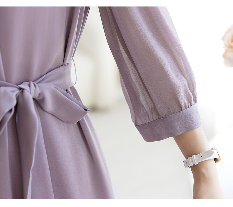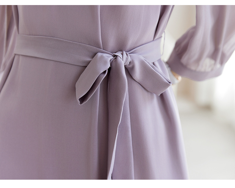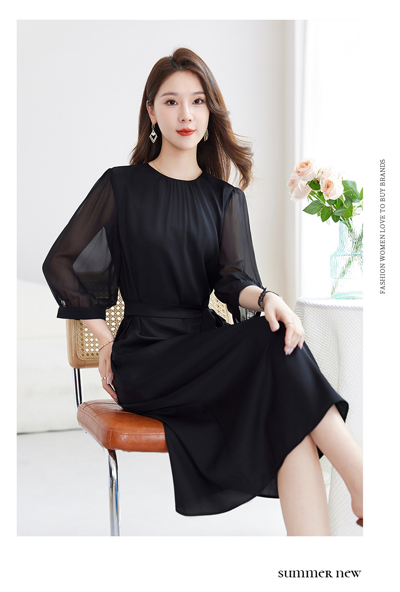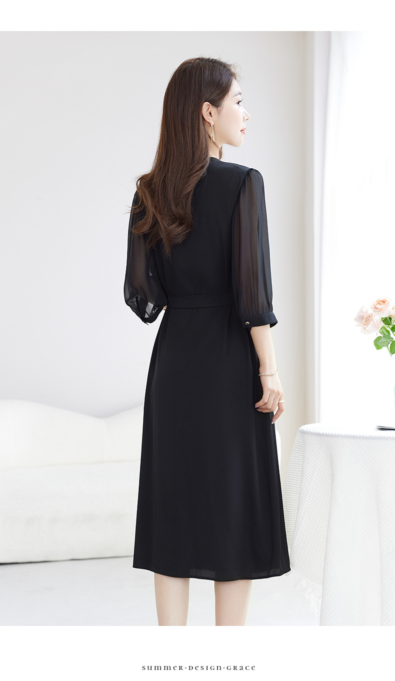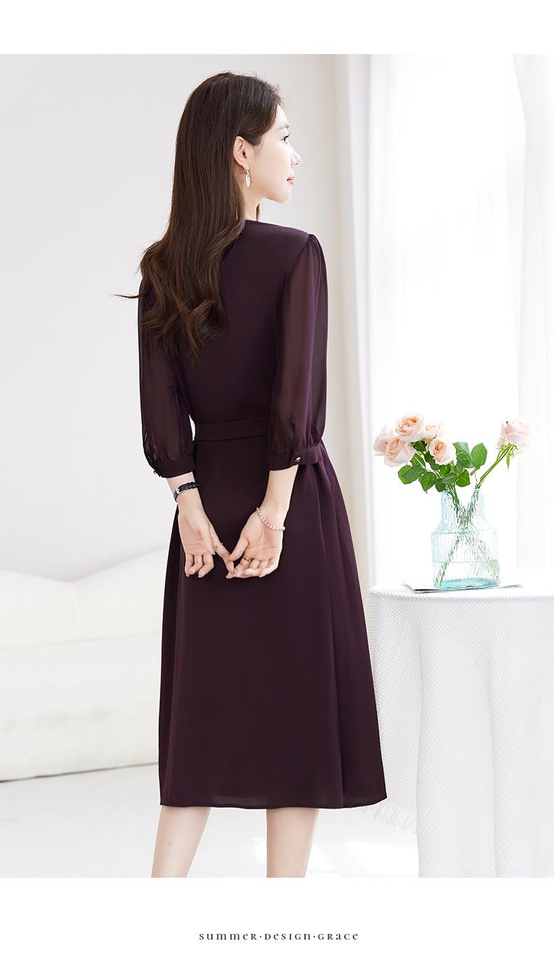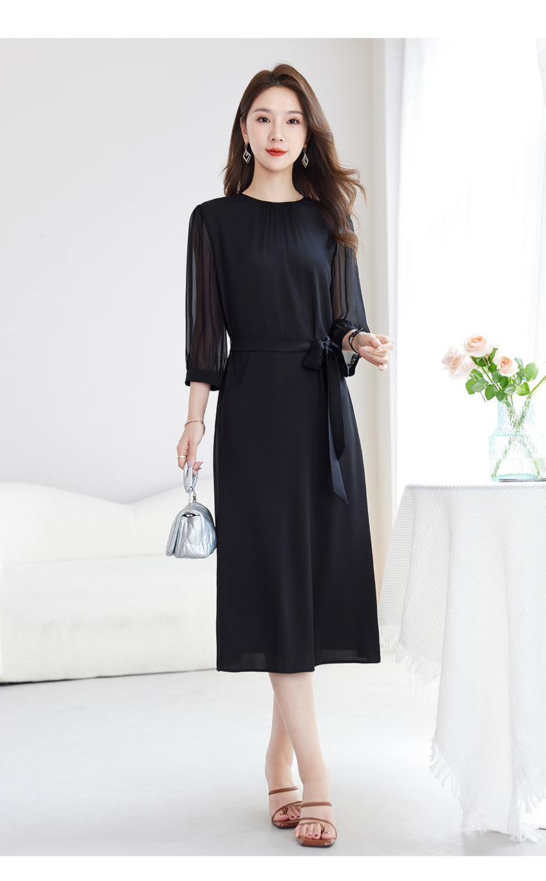QS-82599200【桑蚕丝】素雅纯色真丝弹力双乔中长裙收腰夏桑蚕丝连衣裙女9200