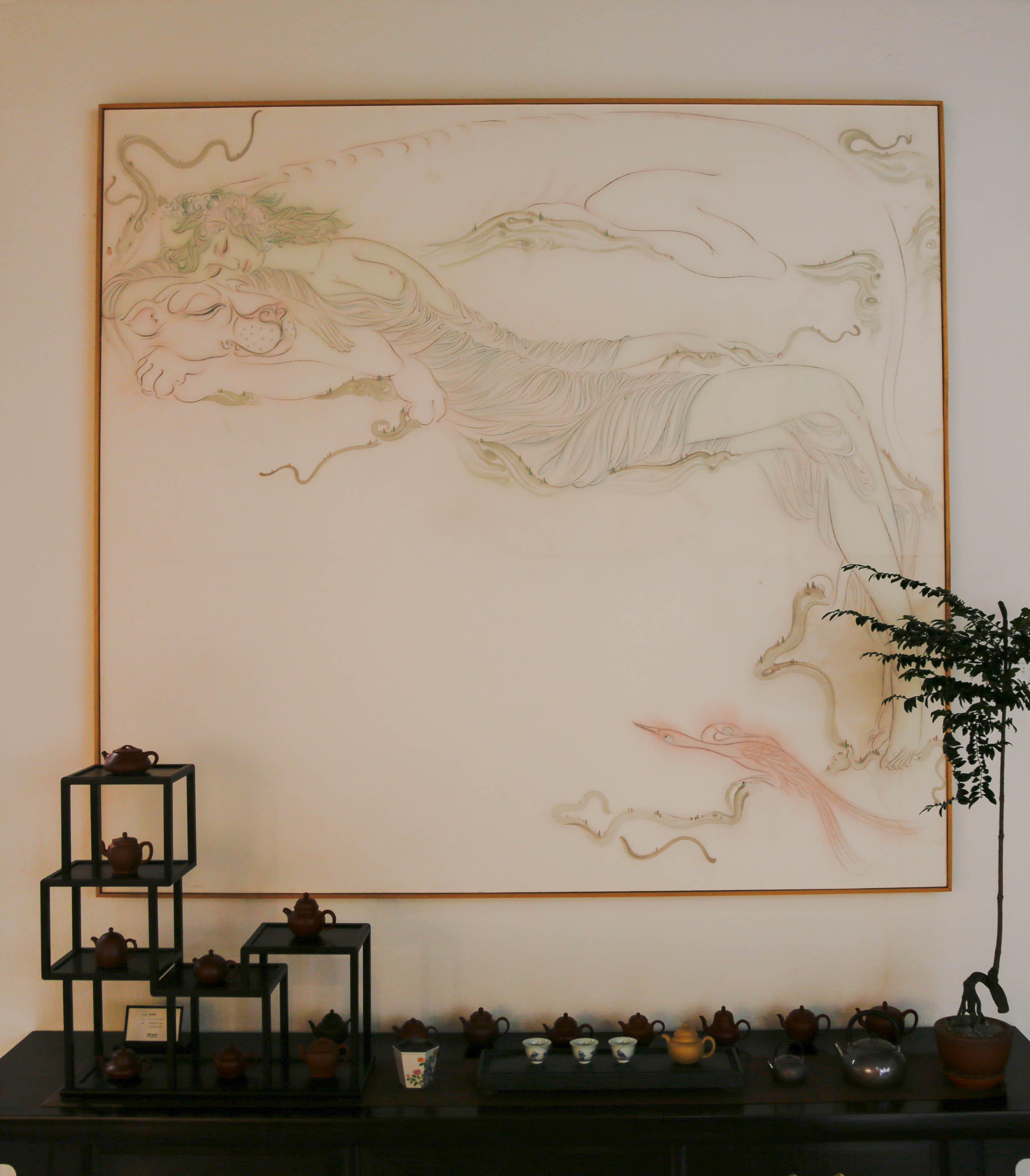 白苓飞画作,清逸洒脱,笔触细腻动人,墨色温润清雅。看白苓飞的作品,大多数都会惊叹那气韵生动的线条,这线条或许就是她理解世界的通道,千变万化的线条和变幻莫测的大千世界,可构筑成古树,可包裹成莲花,可变幻成理想的任何事物,有媒体说白苓飞“纤尘不染,宛如新生”,这素白的味道就是她看待人生的味道。