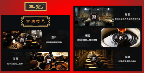 醋是酸的,心是甜的,用好心酿好醋,选用高粱,大曲(大麦、豌豆)麸皮等优质原材料,按照独家配方经过过蒸、酵、熏、淋、陈五道古法传承手工工艺酿制,如下实拍展示: