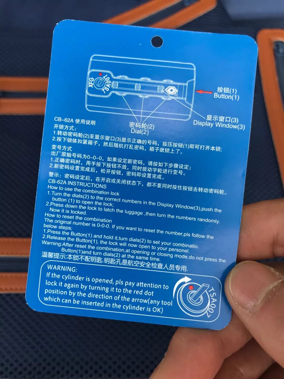 温馨提示:本锁不配钥匙,钥匙孔是航空安全检查人员专用!