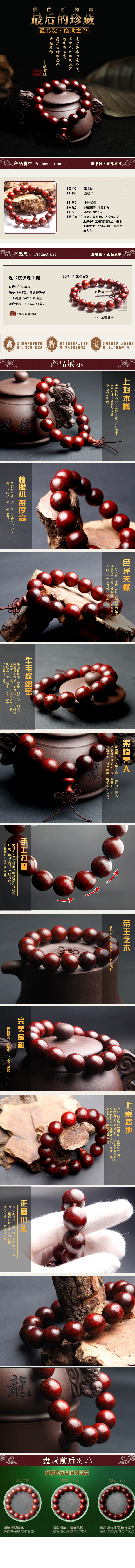 温书院 印度小叶紫檀【带金星】油性珠子盘玩男女手链15mm·手链*1条