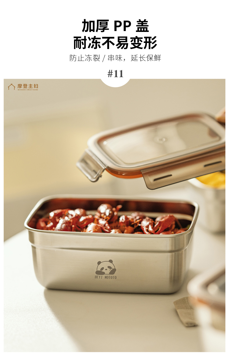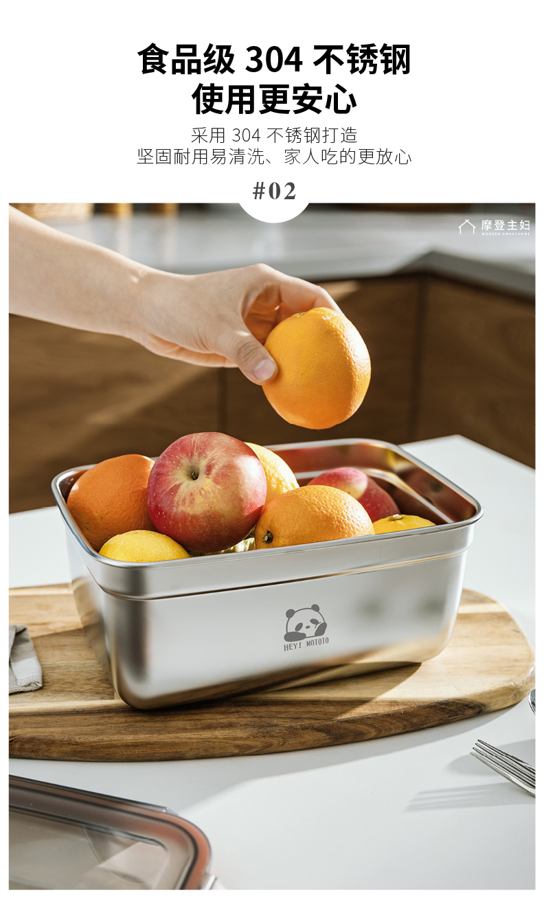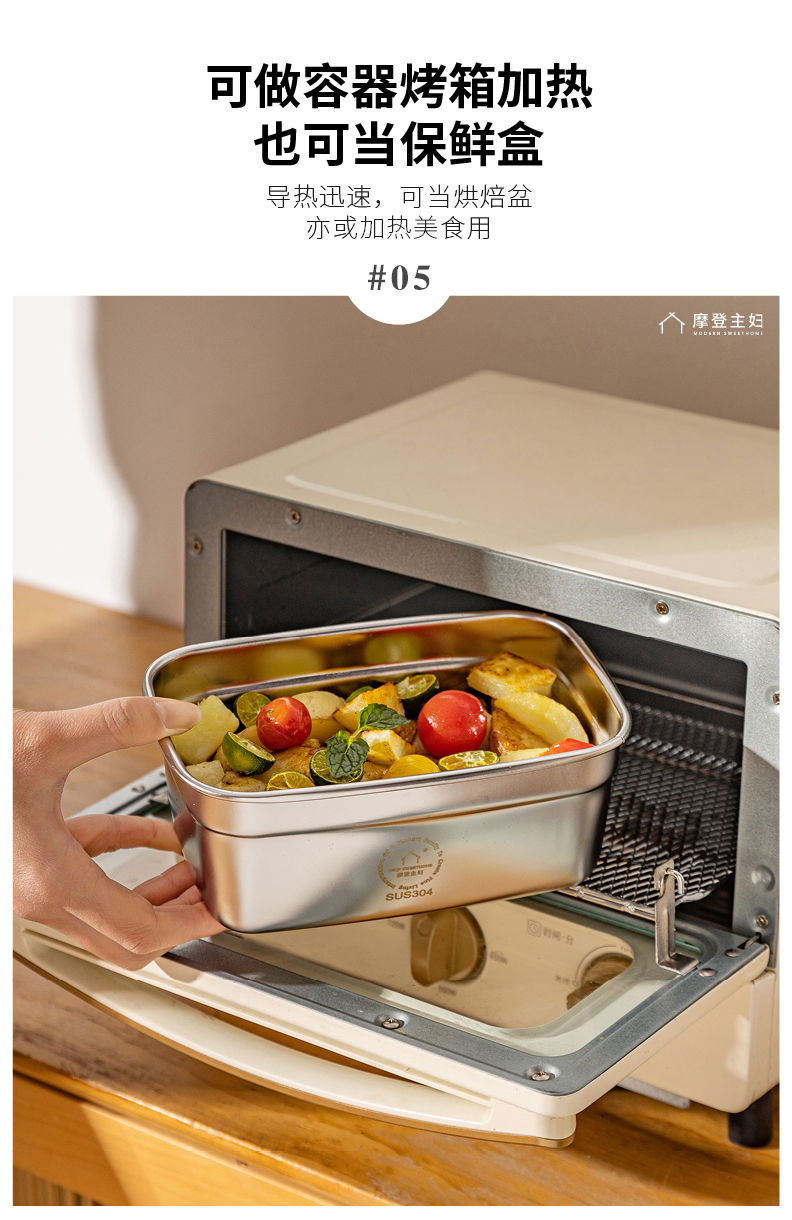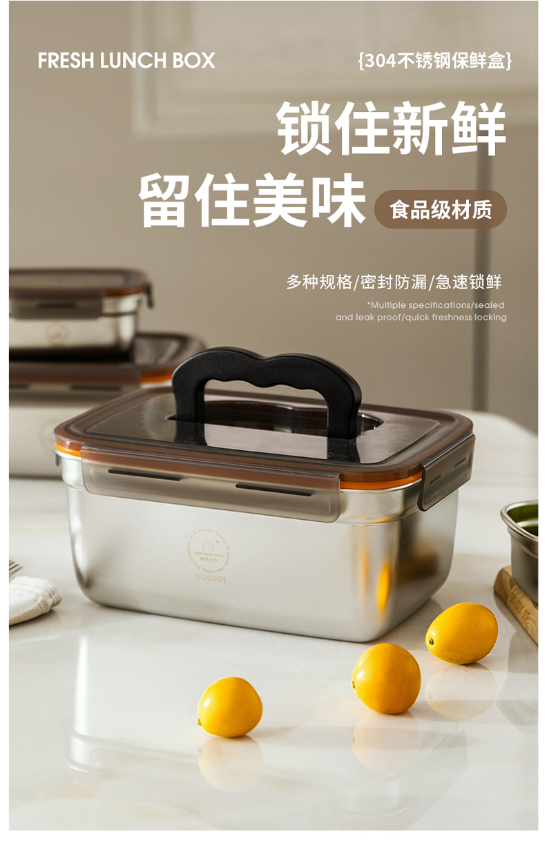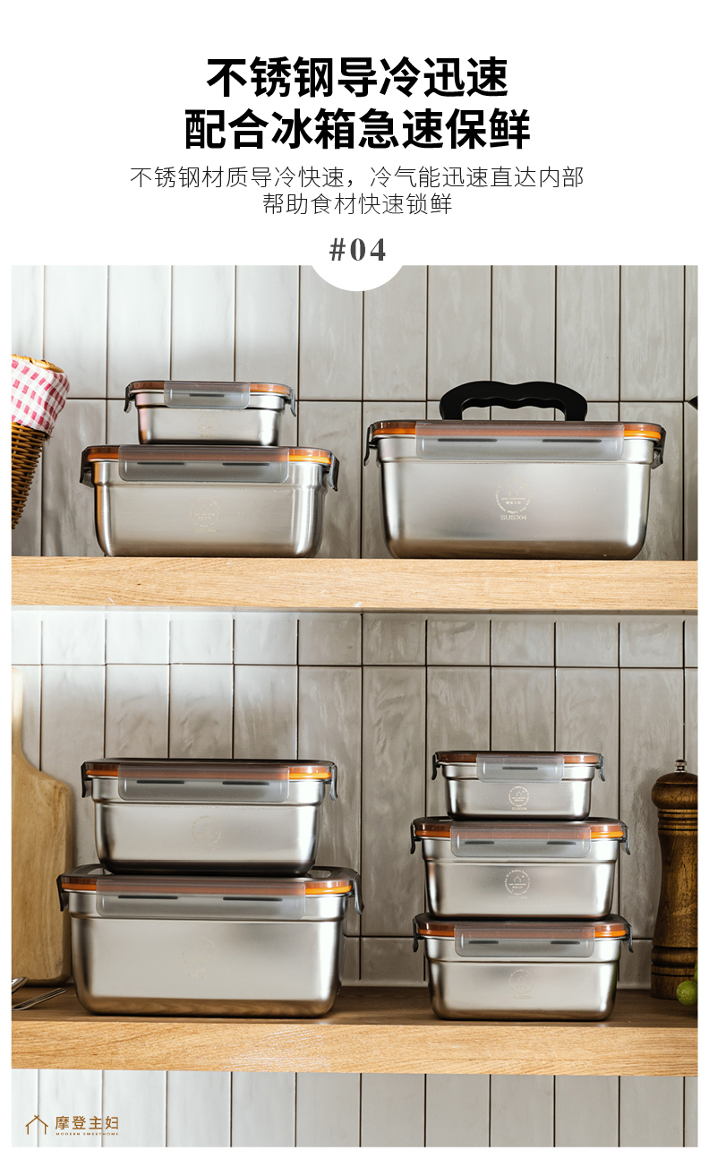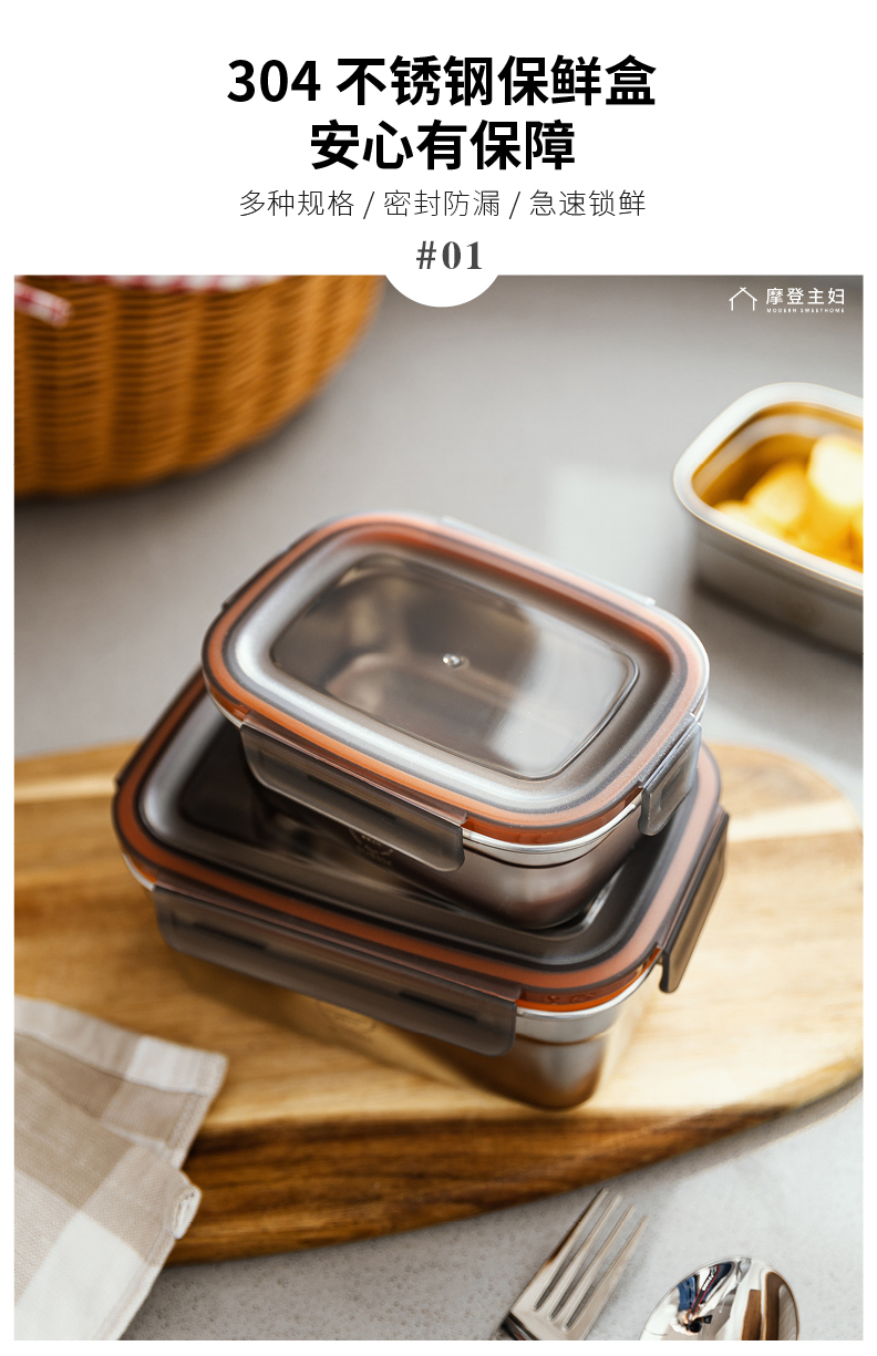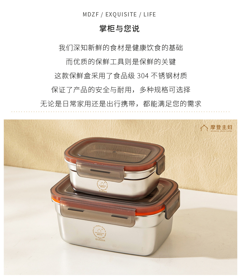 摩登主妇不锈钢保鲜盒食品级收纳盒冰箱专用密封盒水果便当外带盒