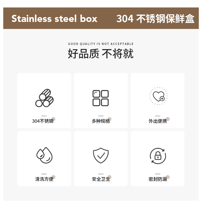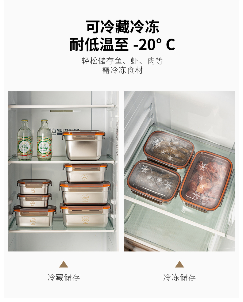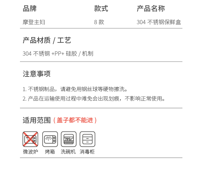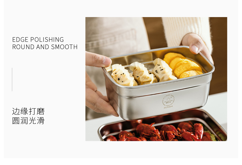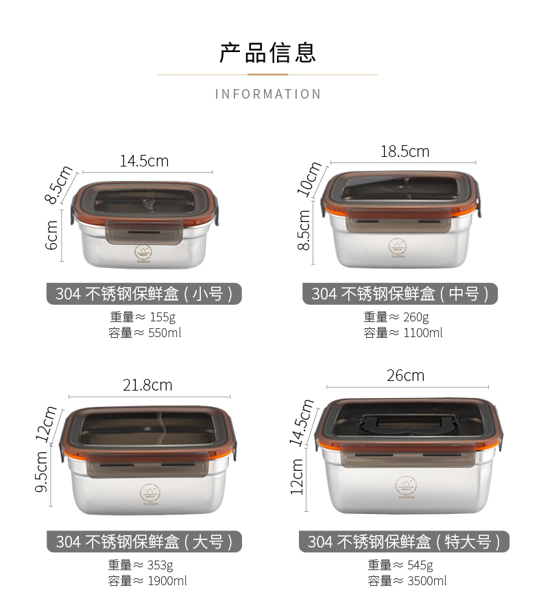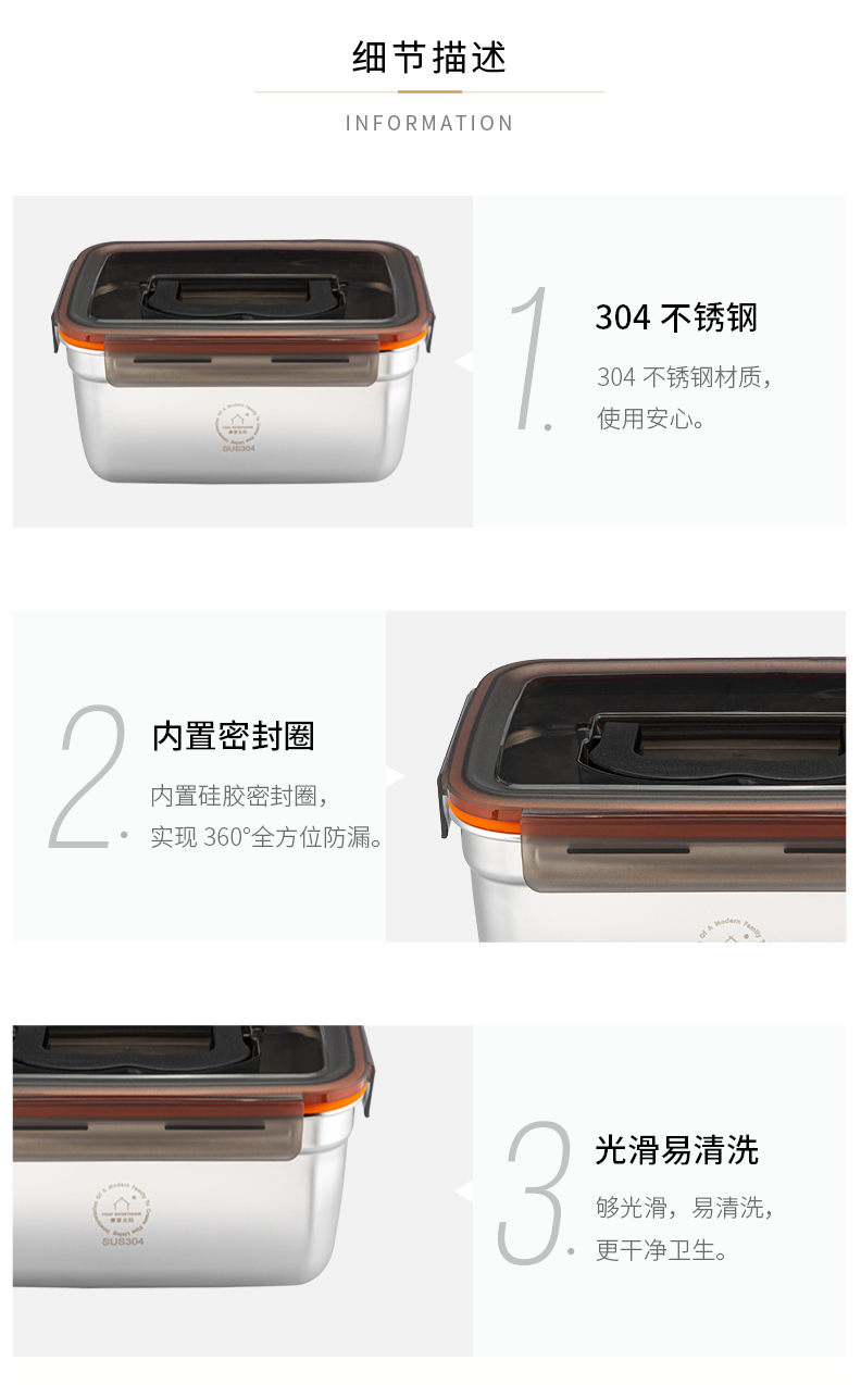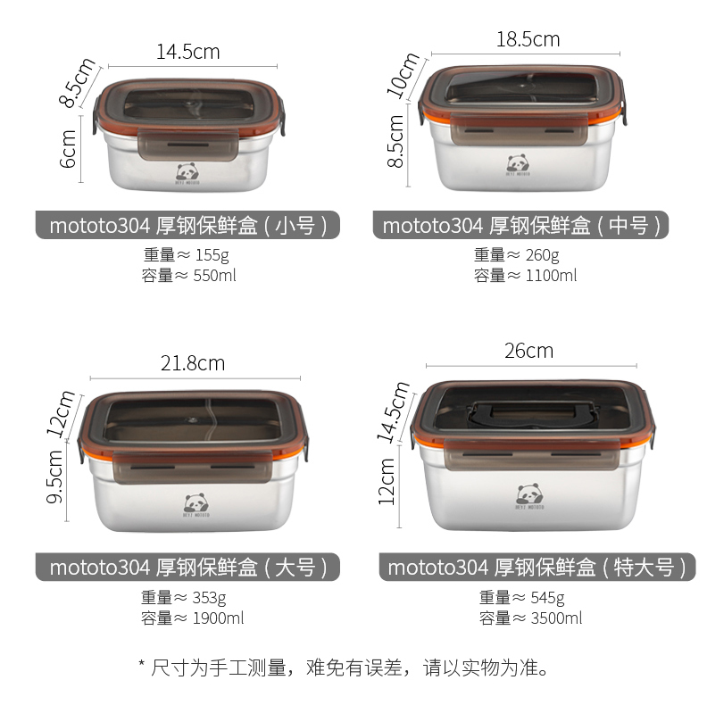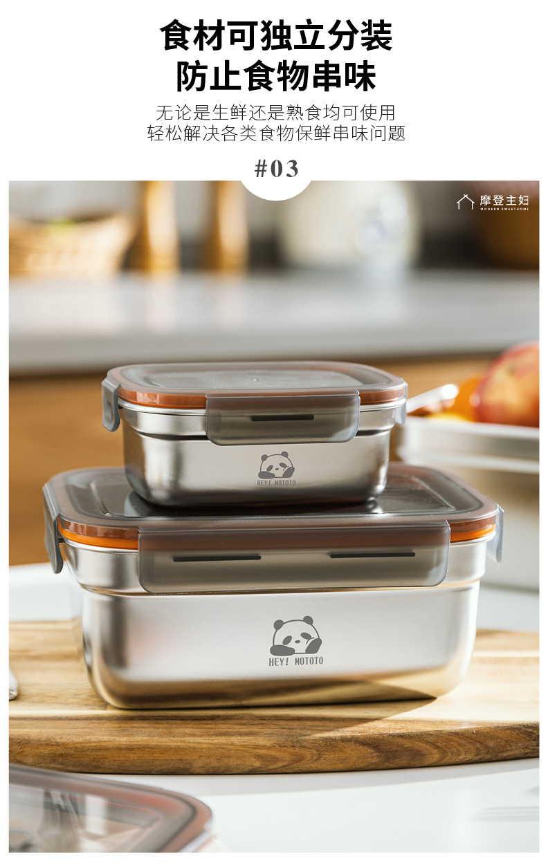 摩登主妇不锈钢保鲜盒食品级收纳盒冰箱专用密封盒水果便当外带盒