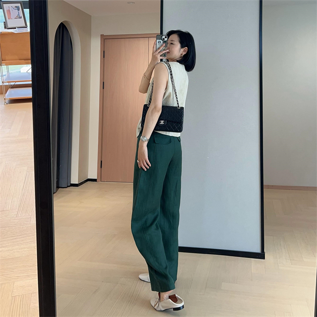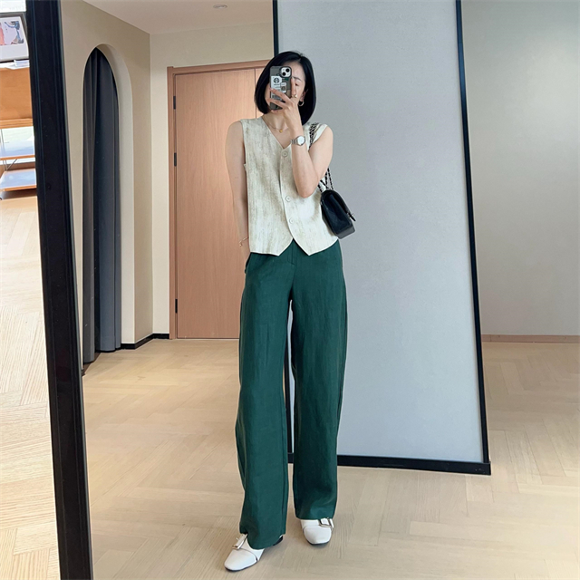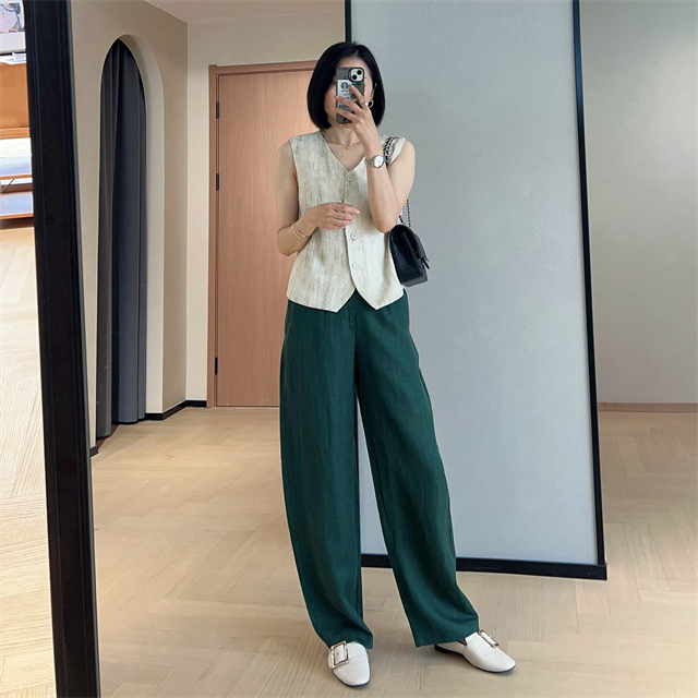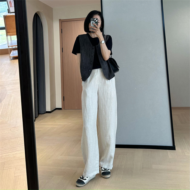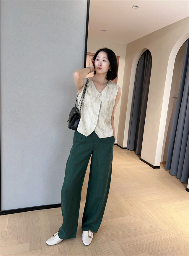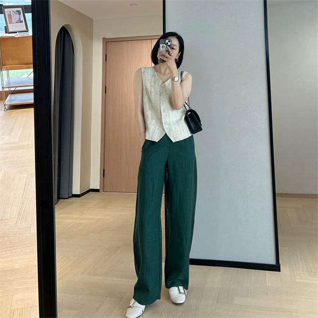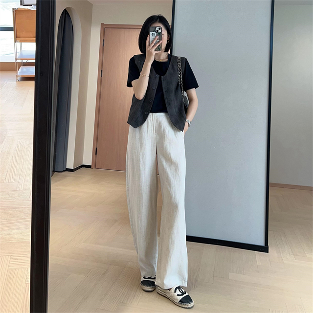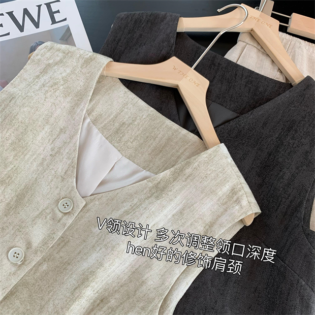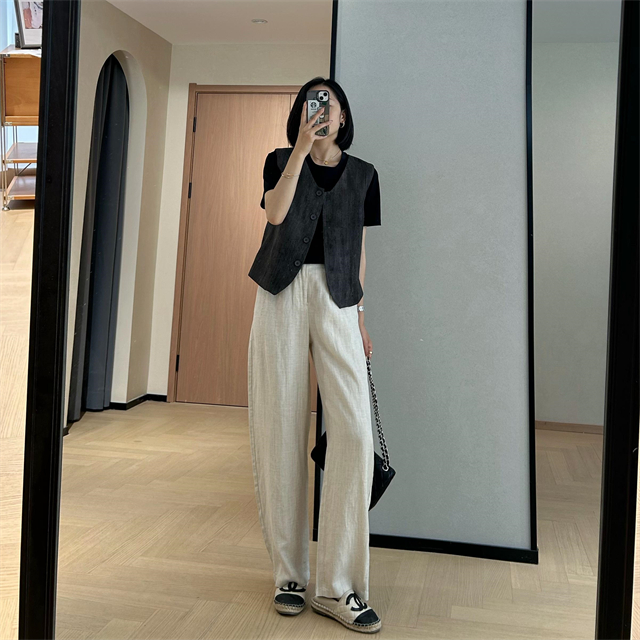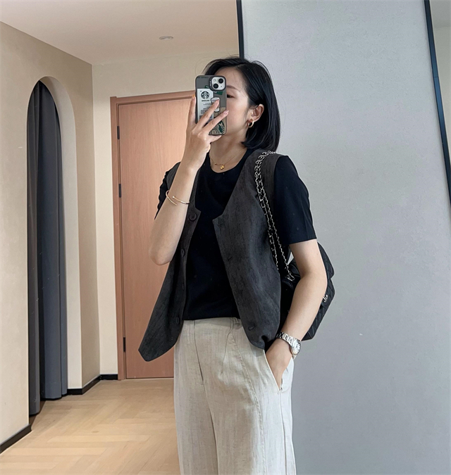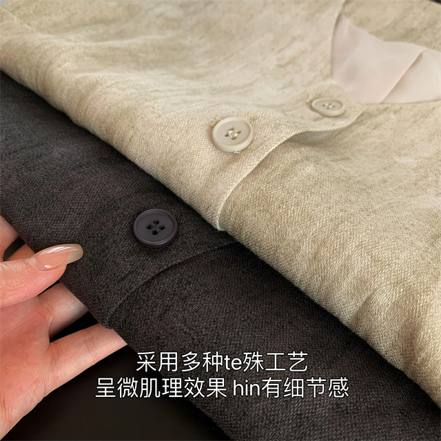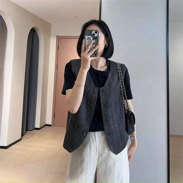 百媚生 高级老钱风马甲显瘦气质百搭短款V领亚麻背心CBW8194