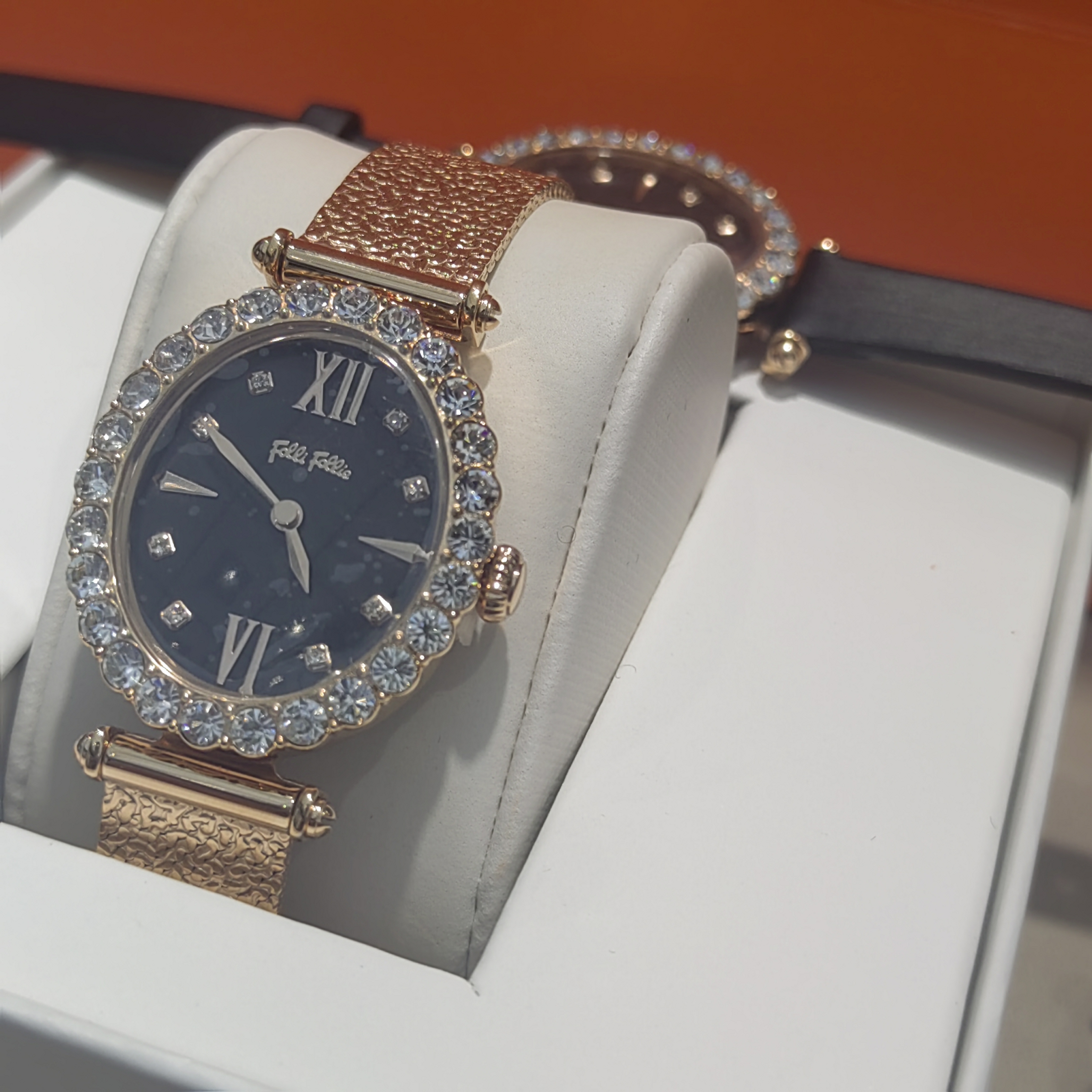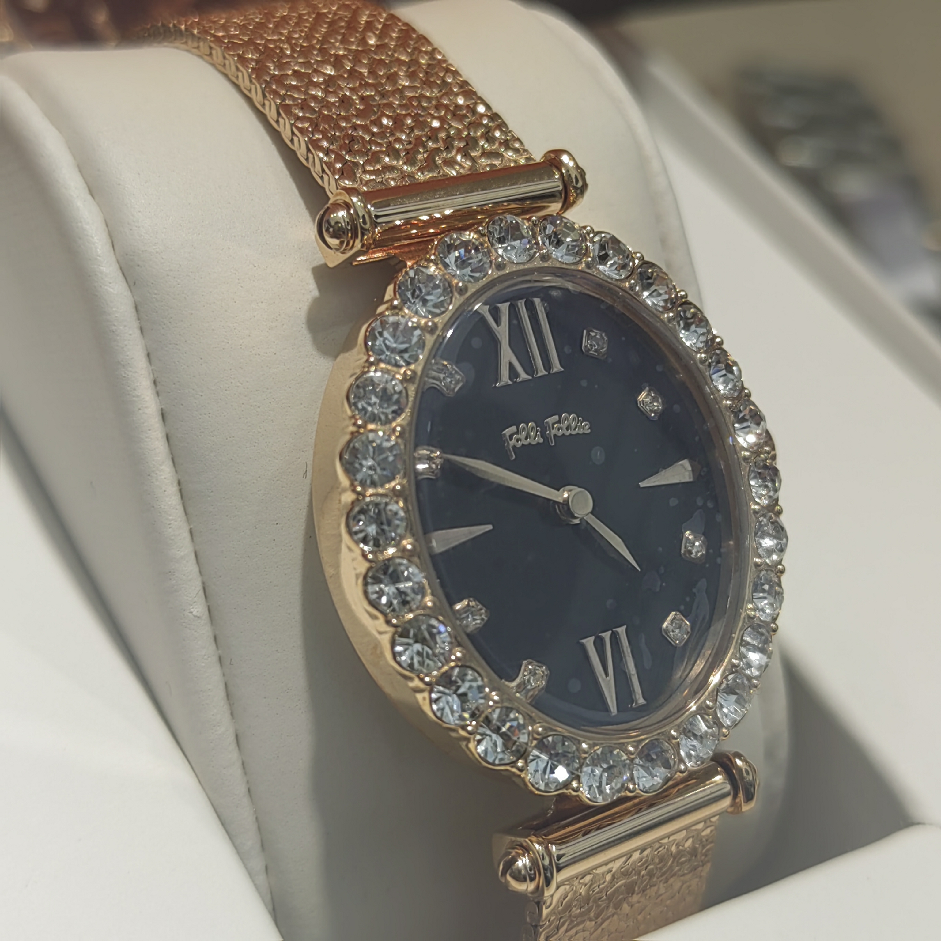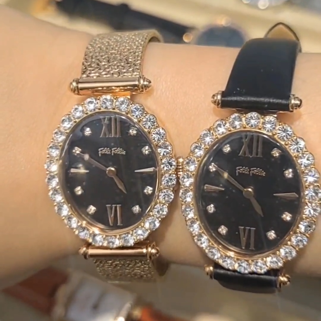 follifollie椭圆水晶镶嵌表盘女士优雅质感表盘尺寸23mm