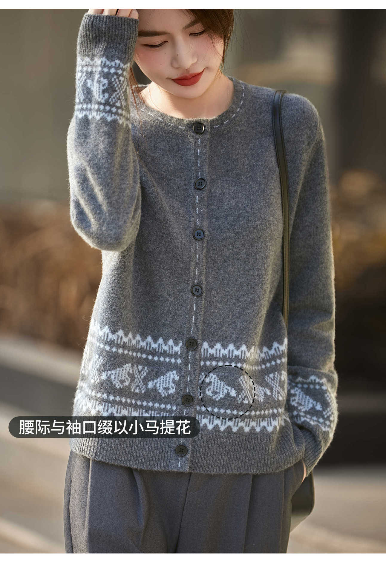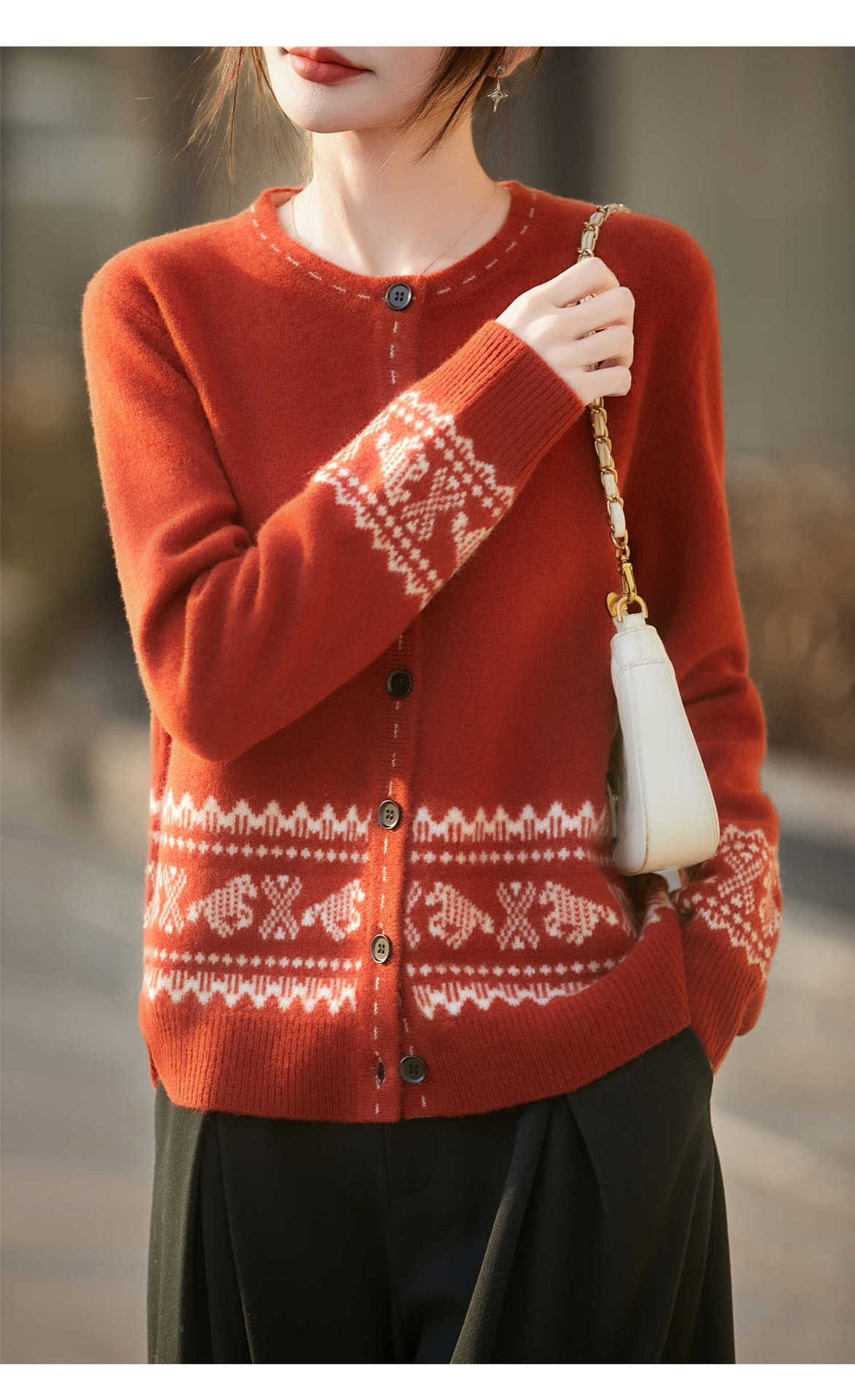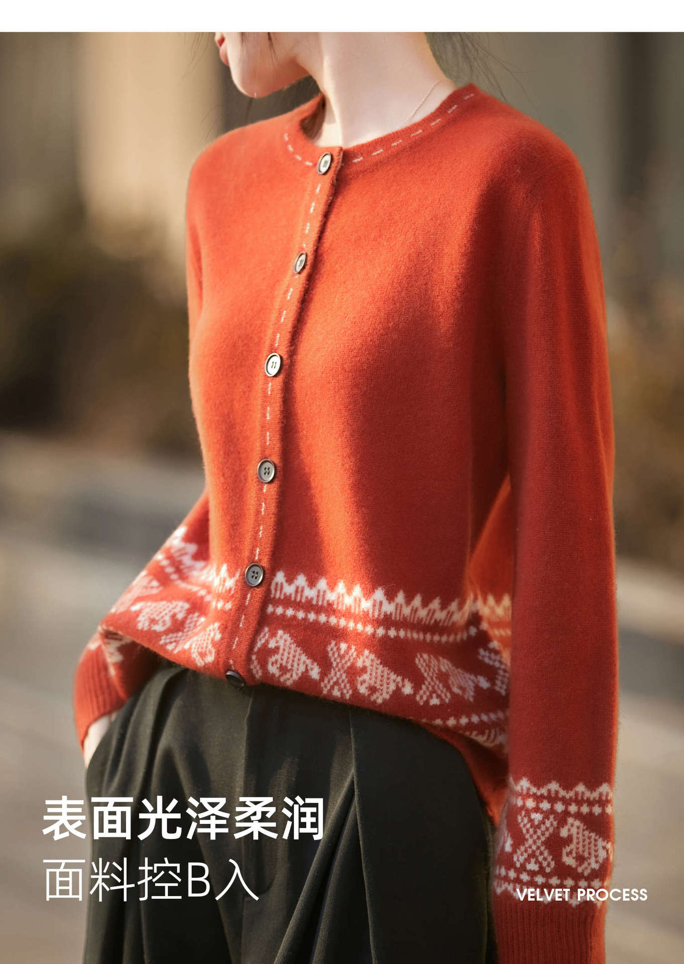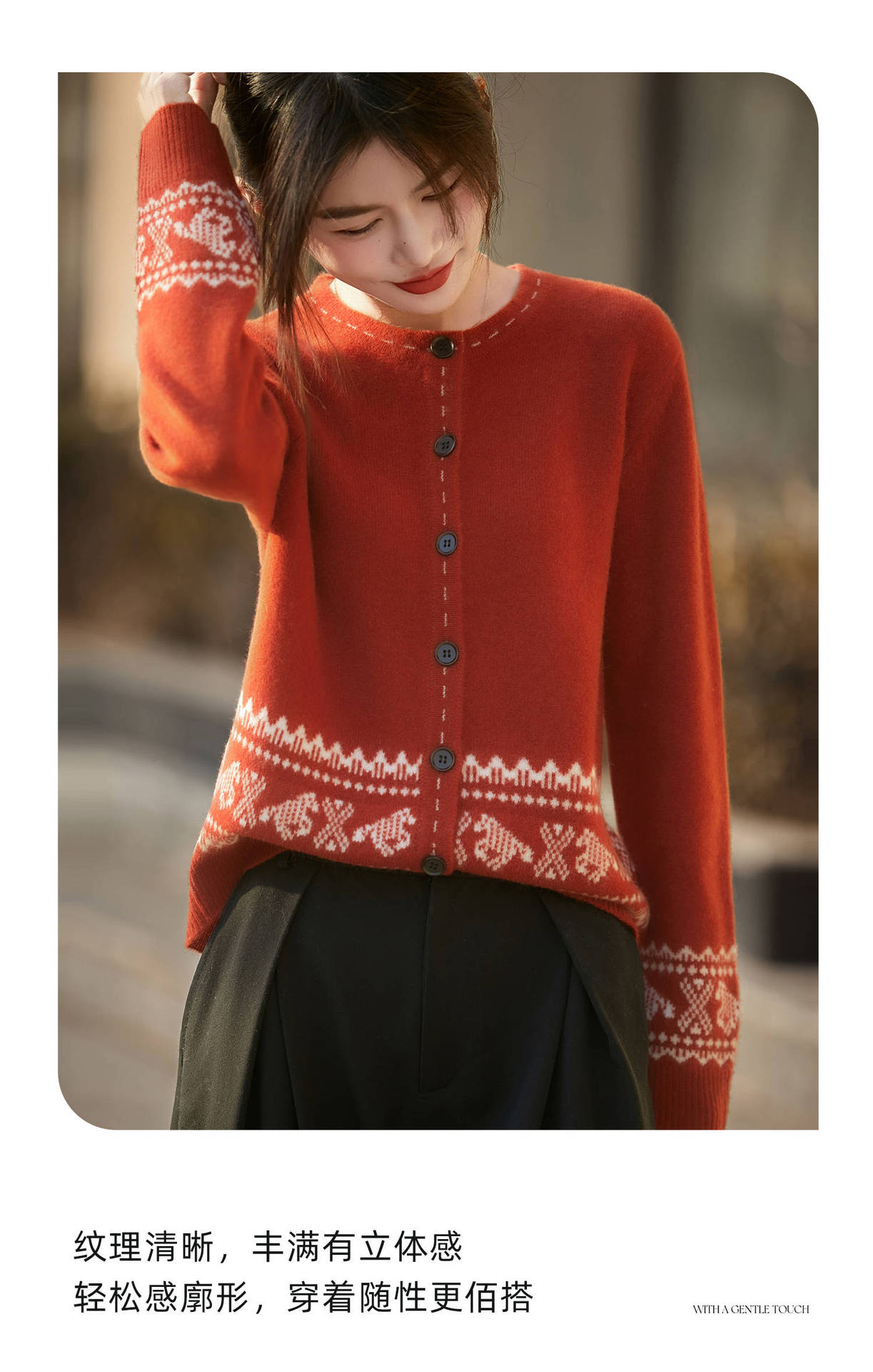 丁摩 羊绒羊毛新年红色小马复古费尔岛风针织开衫NS-5278-115