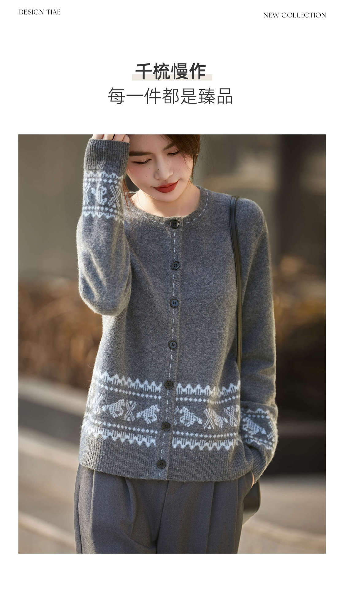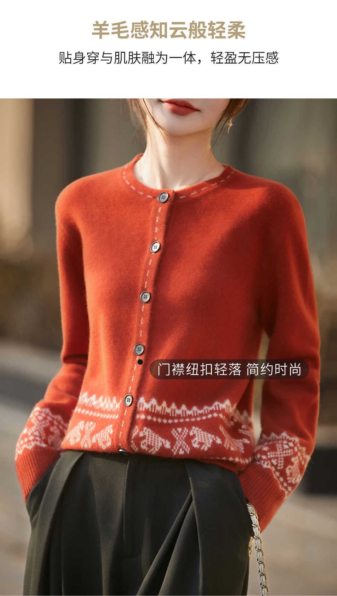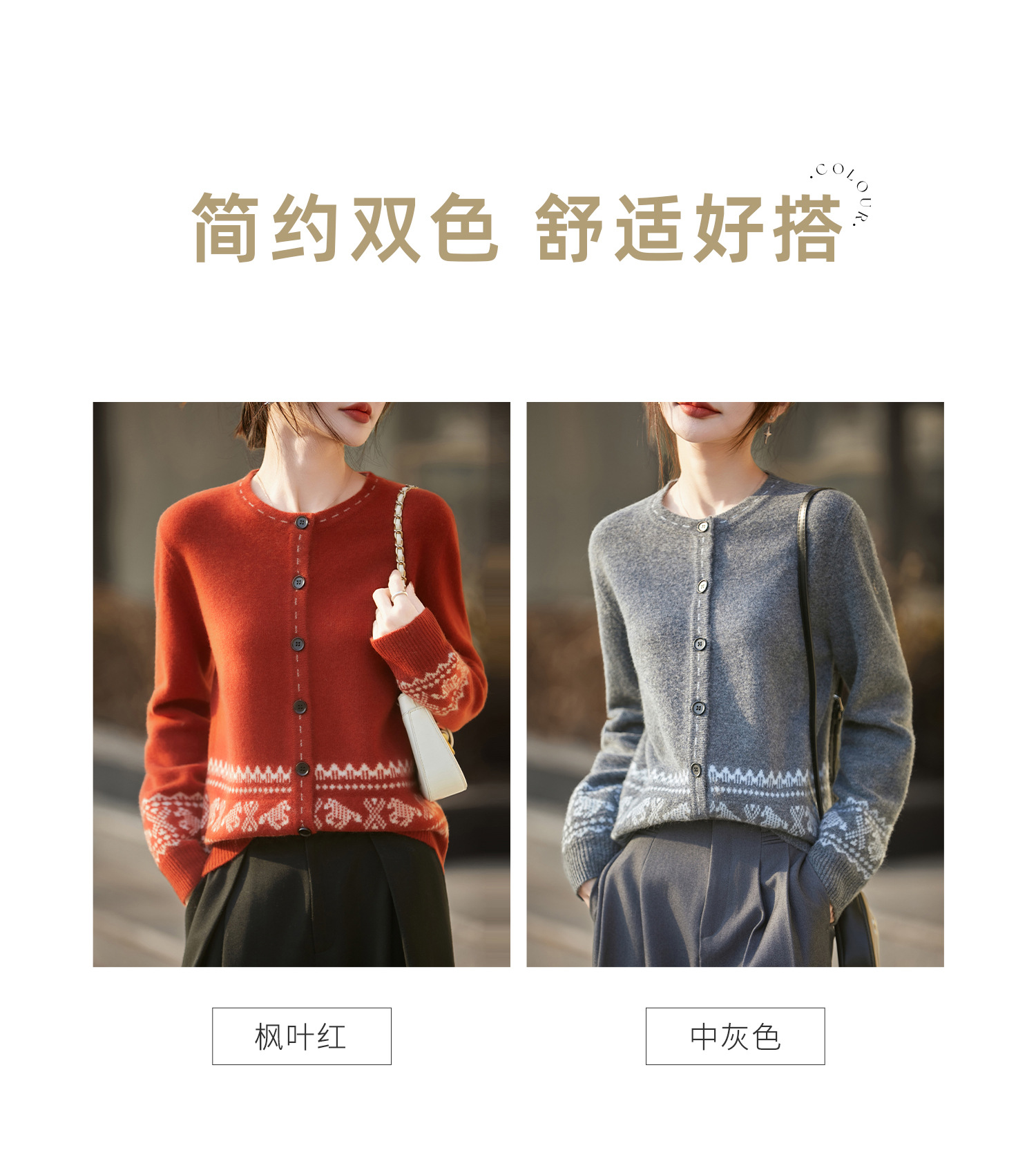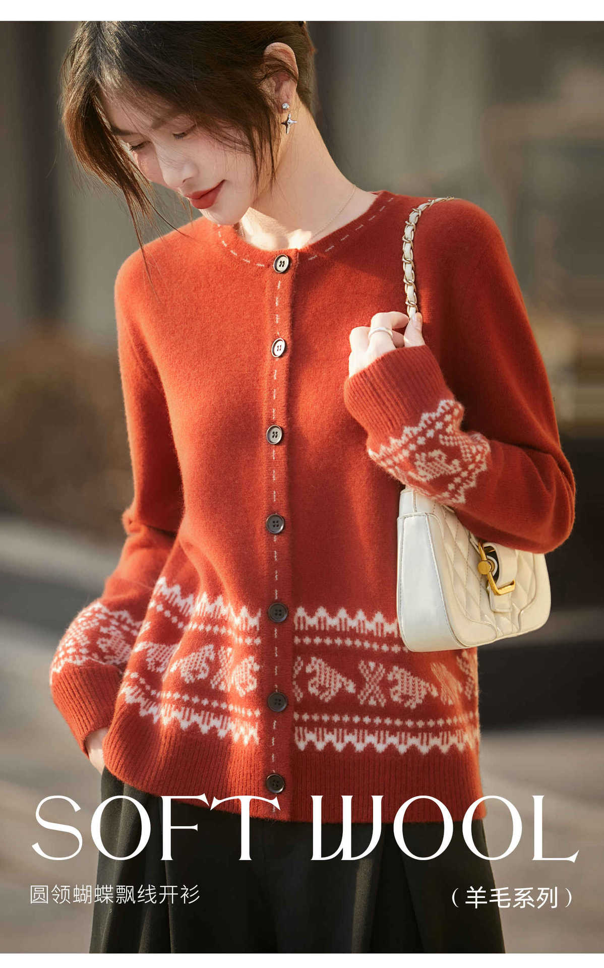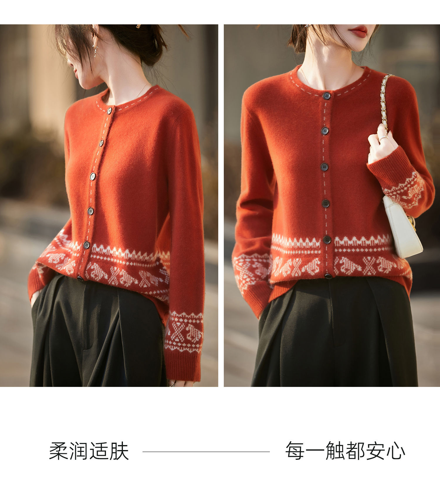 丁摩 羊绒羊毛新年红色小马复古费尔岛风针织开衫NS-5278-115