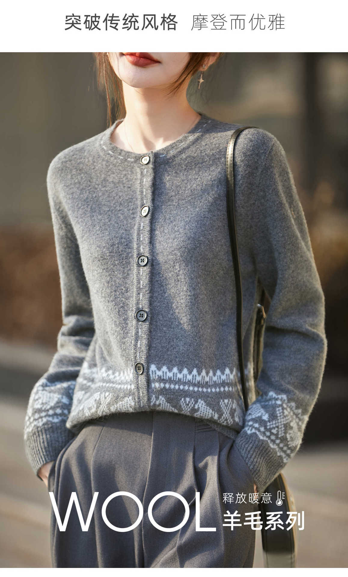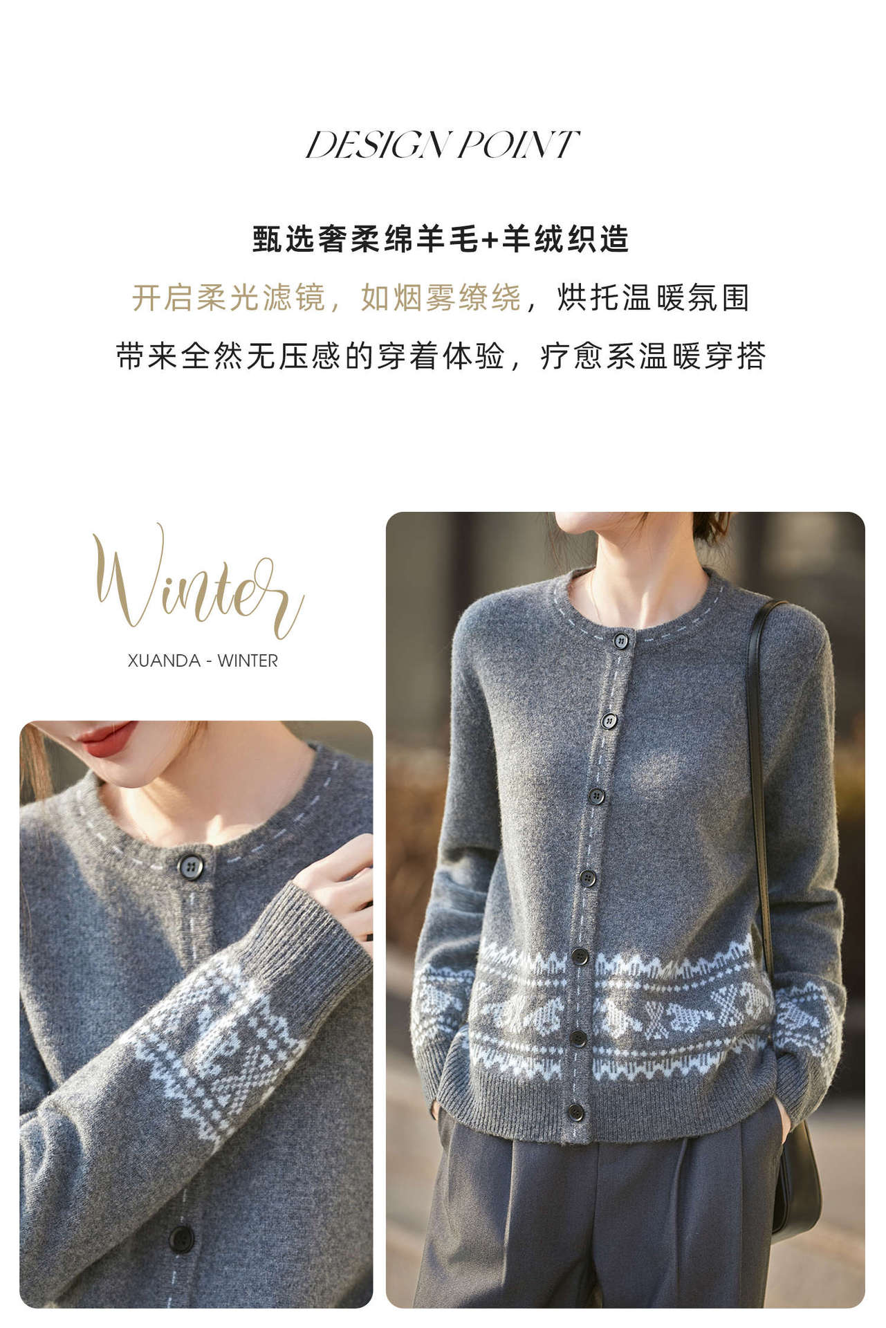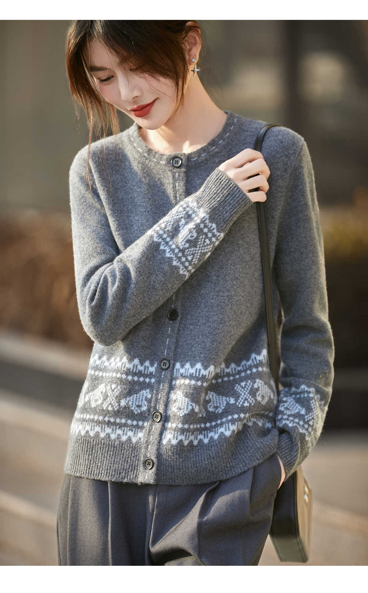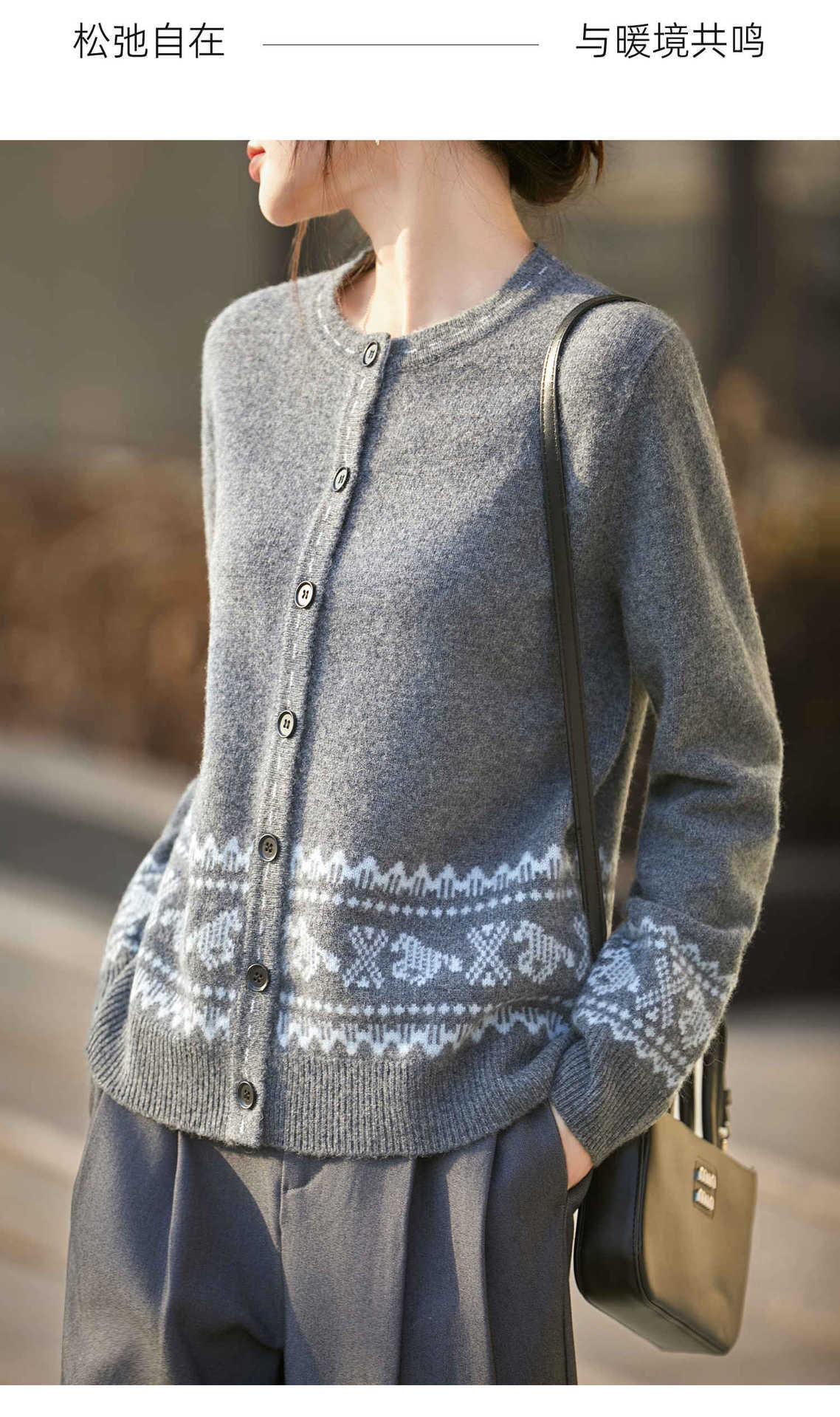 丁摩 羊绒羊毛新年红色小马复古费尔岛风针织开衫NS-5278-115