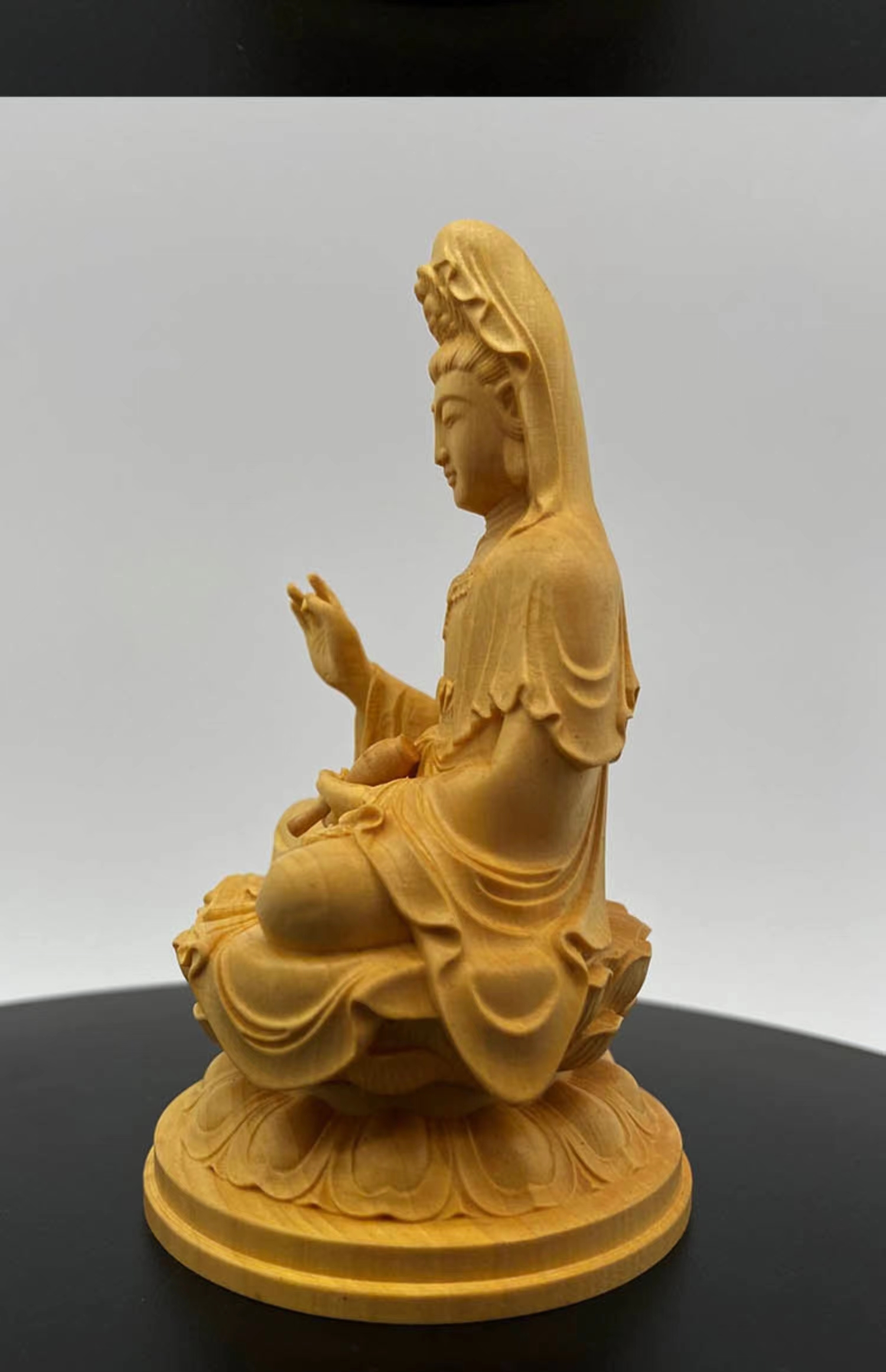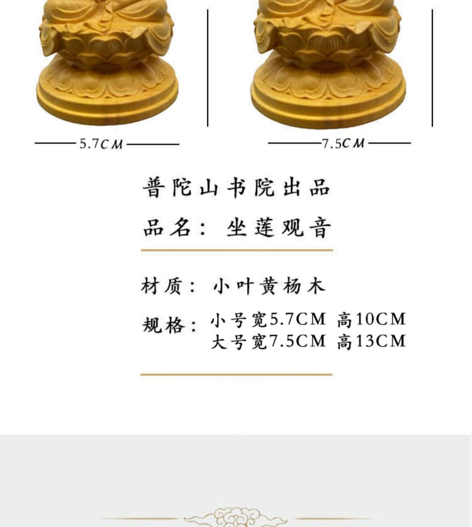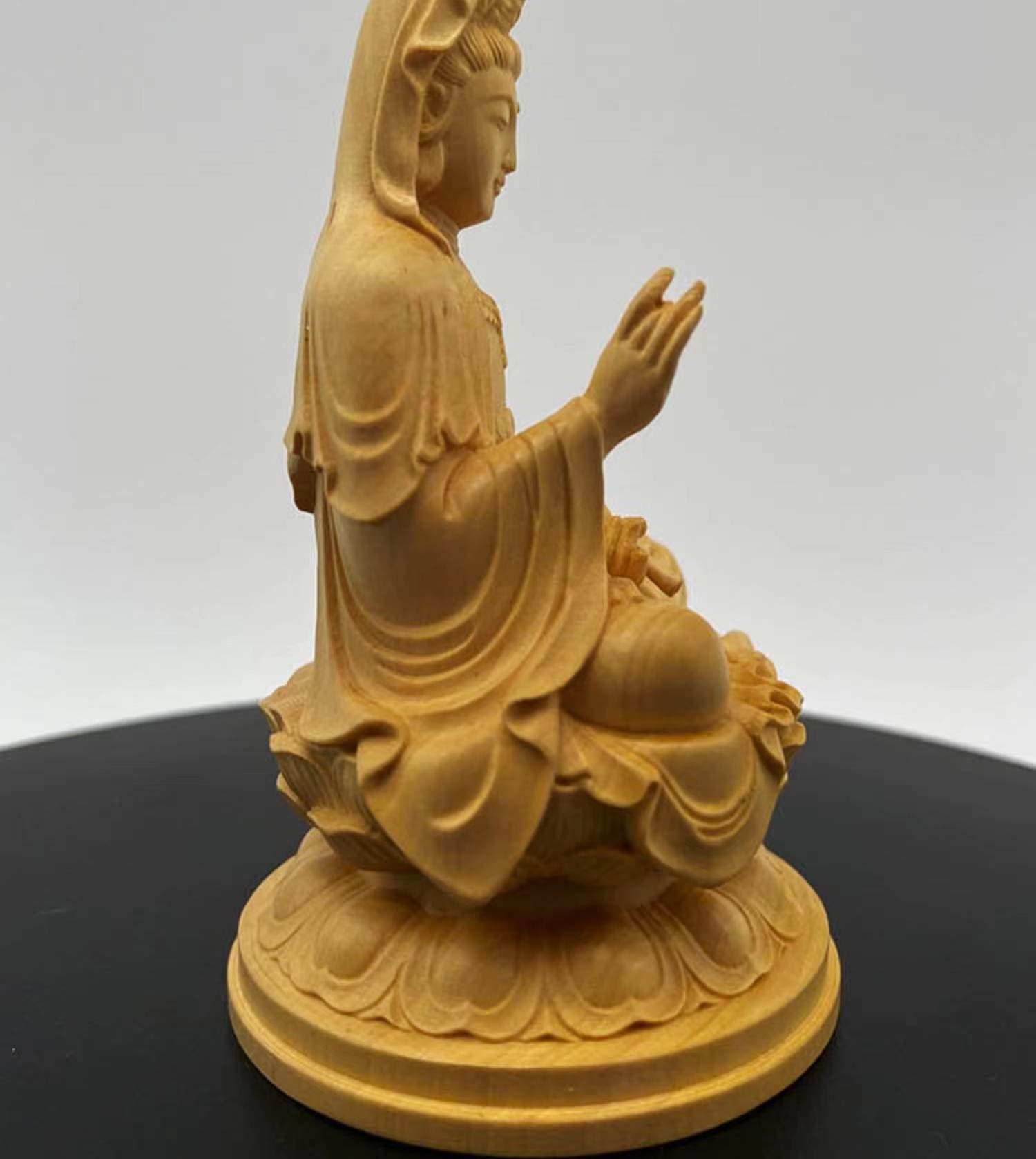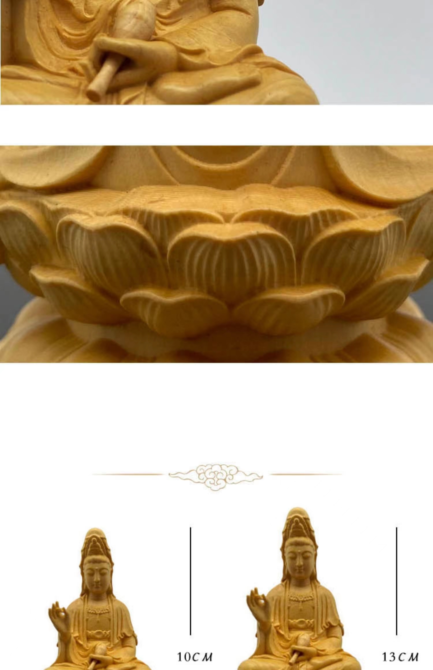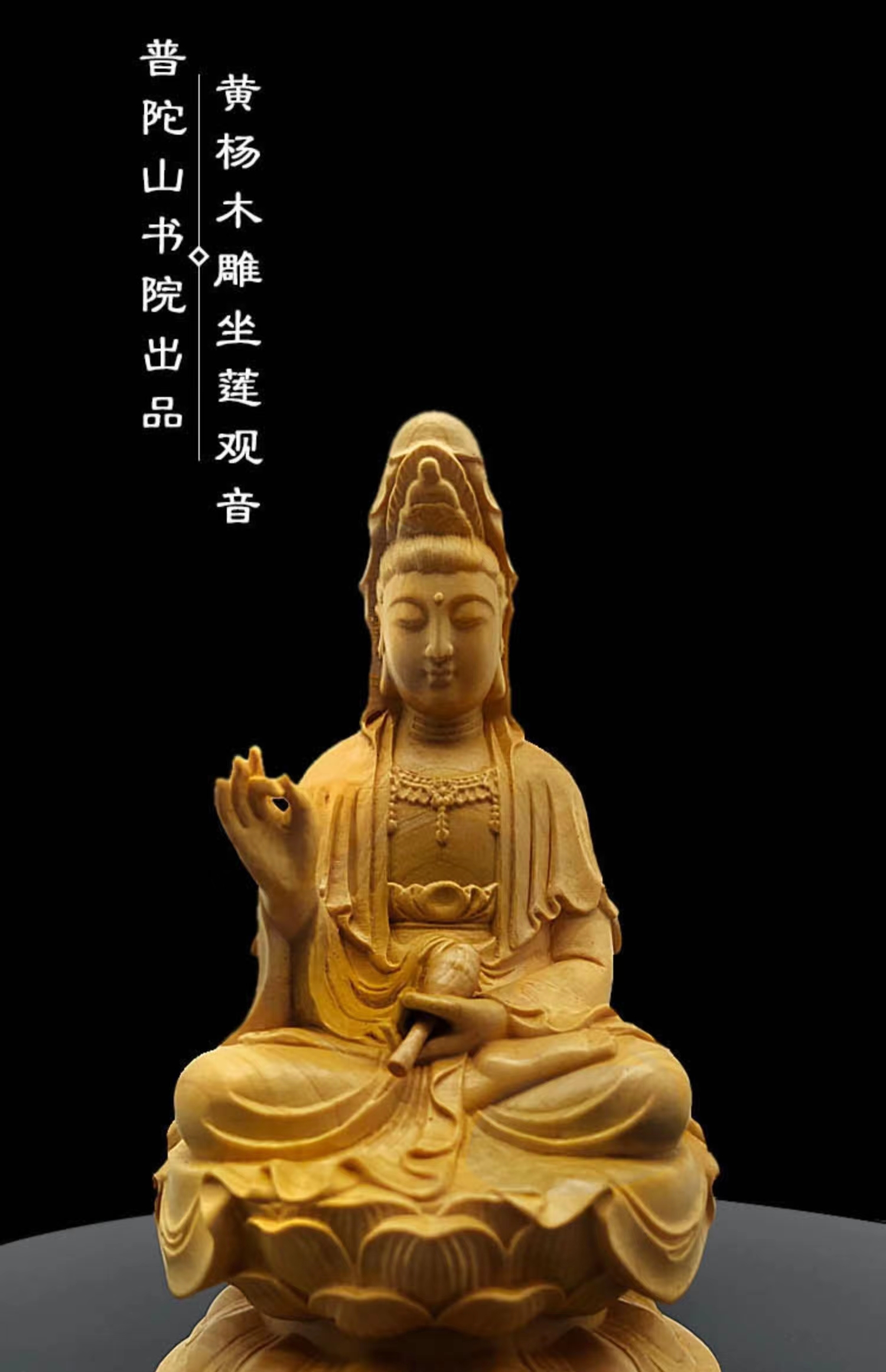 普陀山正品南海观音菩萨佛像摆件小叶黄杨木浮雕家用佛堂汽车摆件
