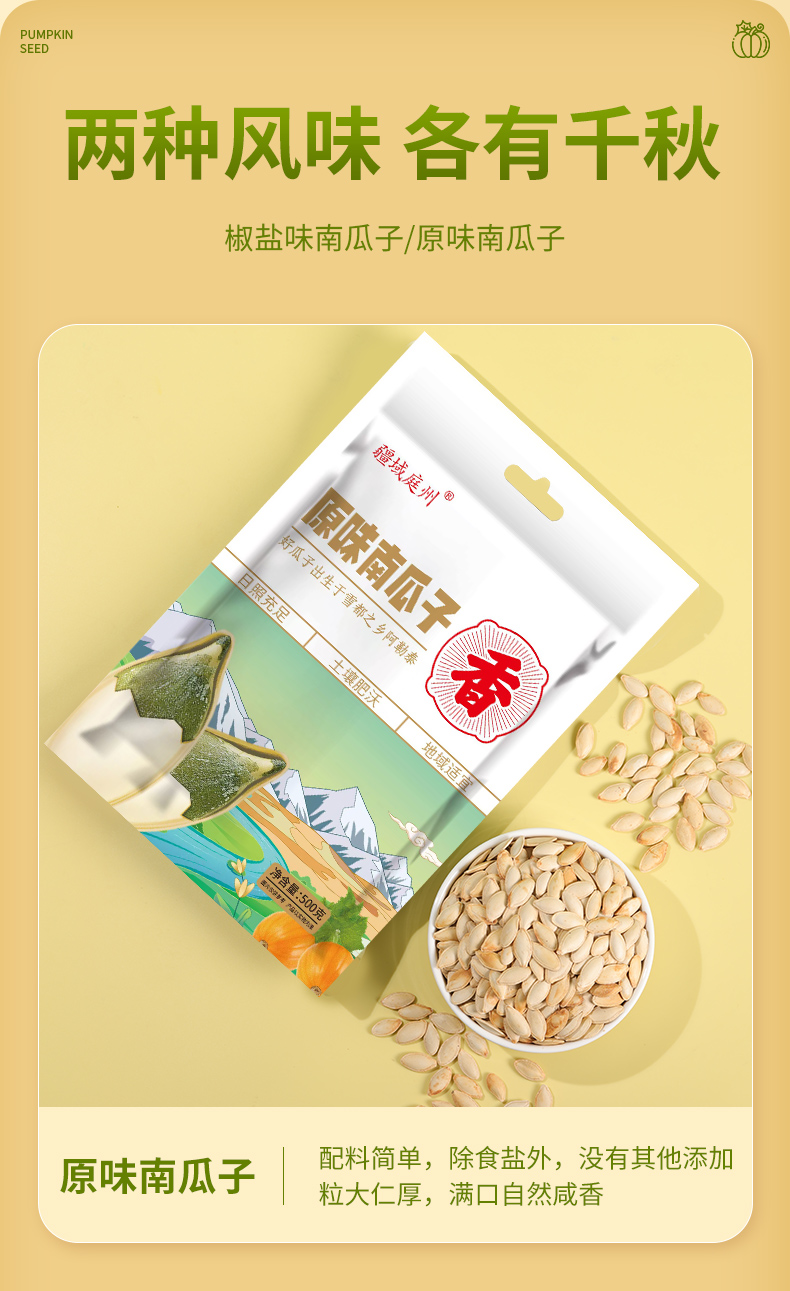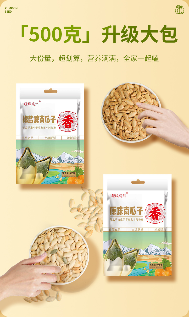疆域庭州·美人甲南瓜子500g(原味)*2 売薄仁香 越嗑越香