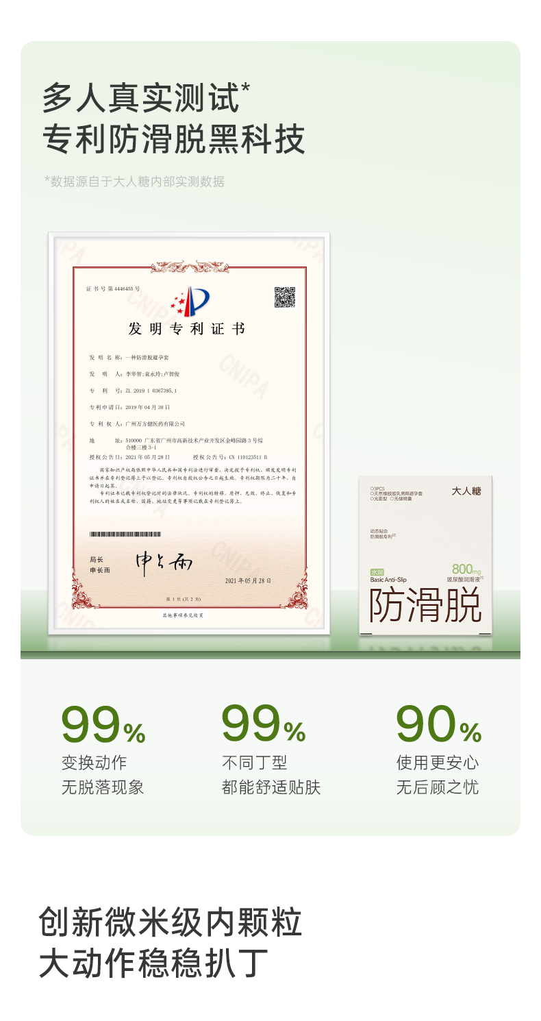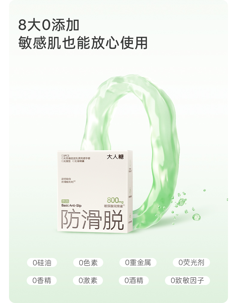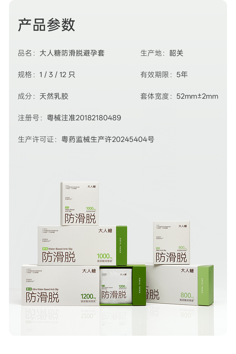 【超润防脱】大人糖-防滑脱避孕套玻尿酸情趣安全套水润超薄12只