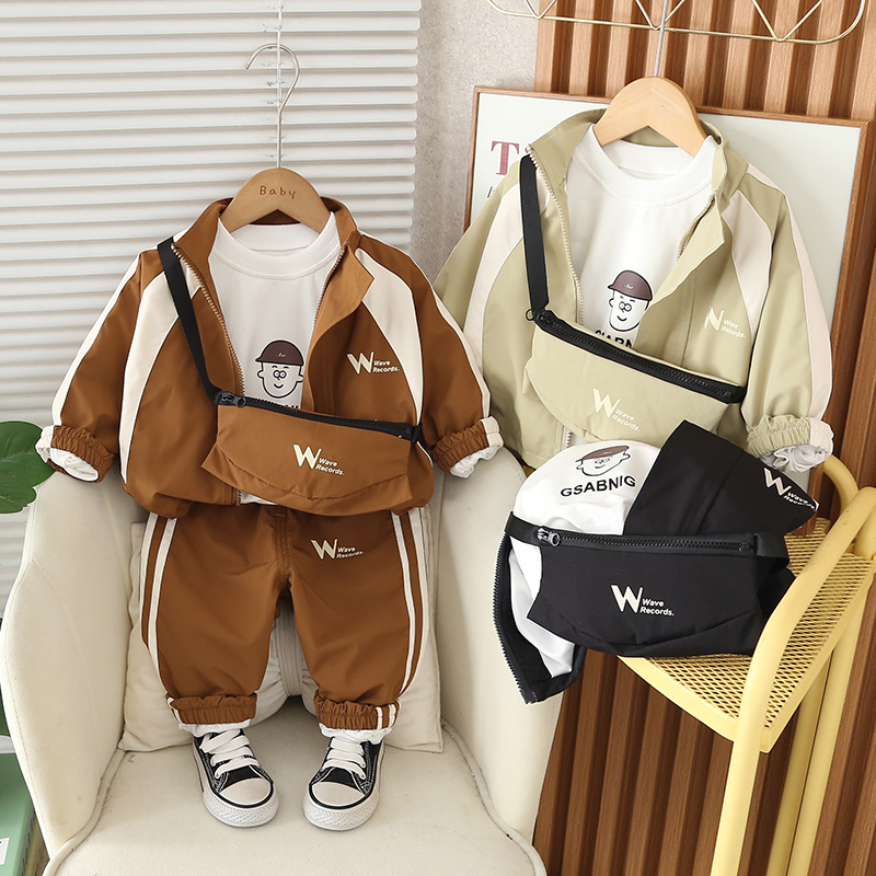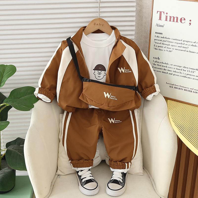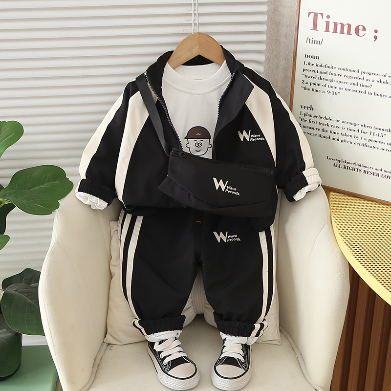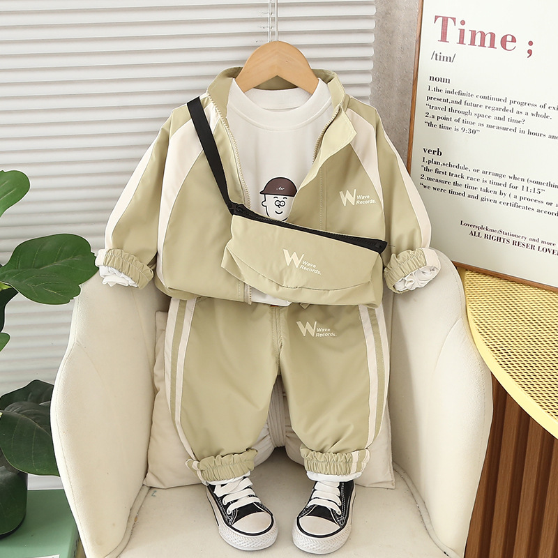 【新品抢先看!春款套装!】男童春秋套装 2025新款 儿童运动长袖 休闲开衫冲锋衣 中小童三件套潮-QQ
