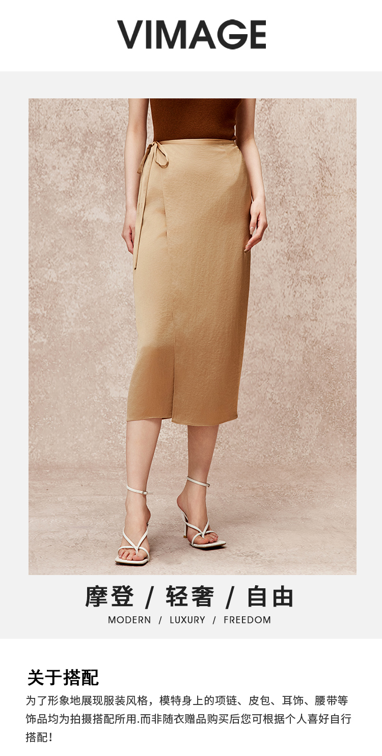 VIMAGE纬漫纪气质高腰垂坠显瘦半身裙秋季新款V2206802