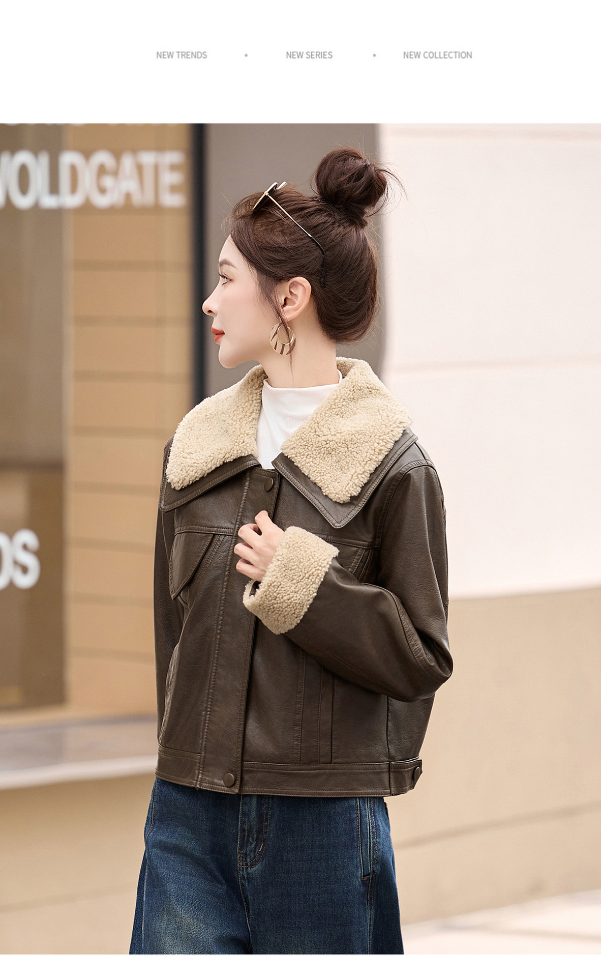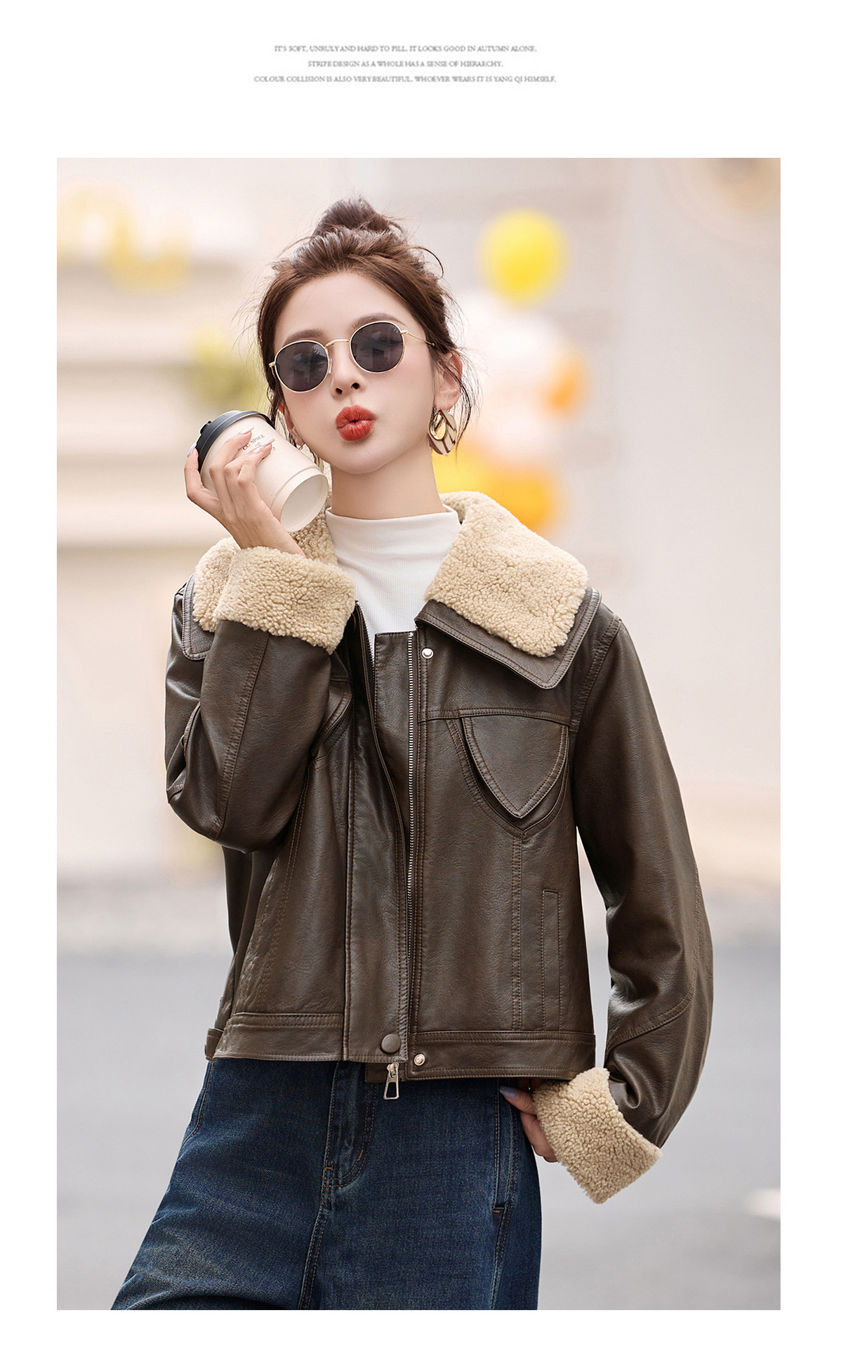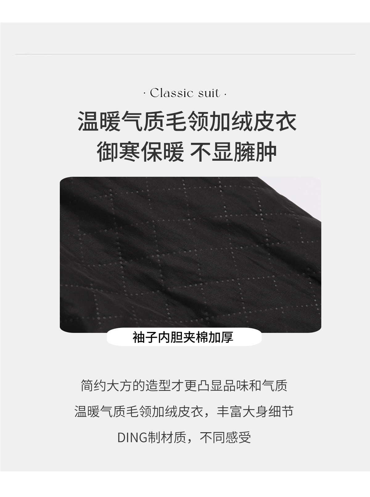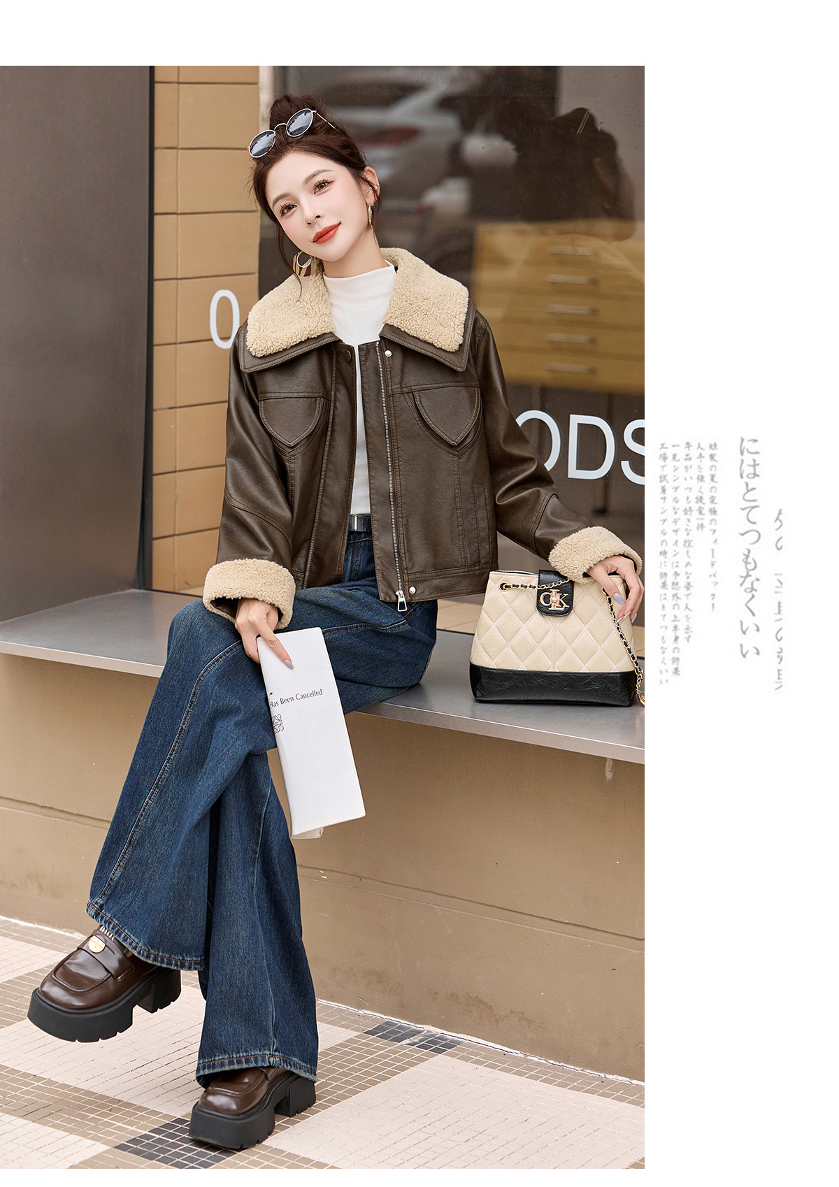 羊羔毛拼接加绒黑色皮衣,加厚保暖小个子皮夹克外套HR-9802
