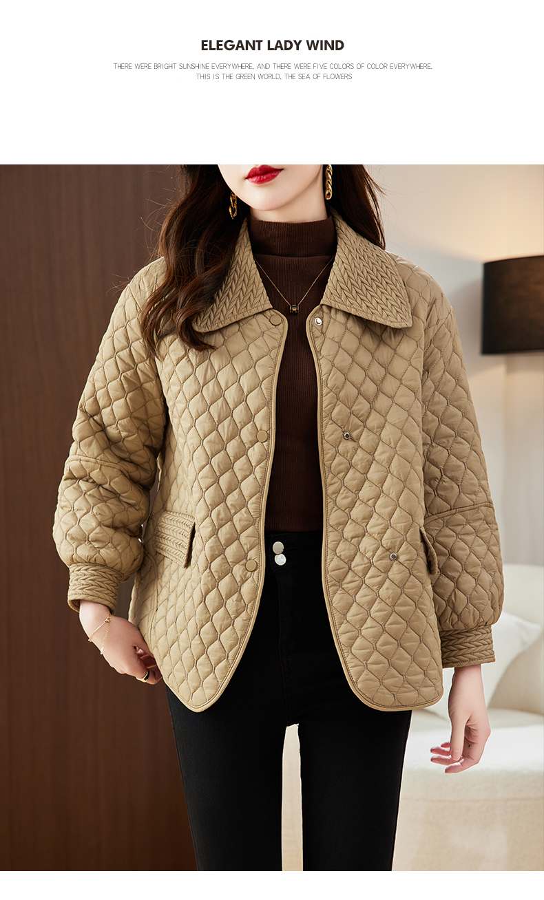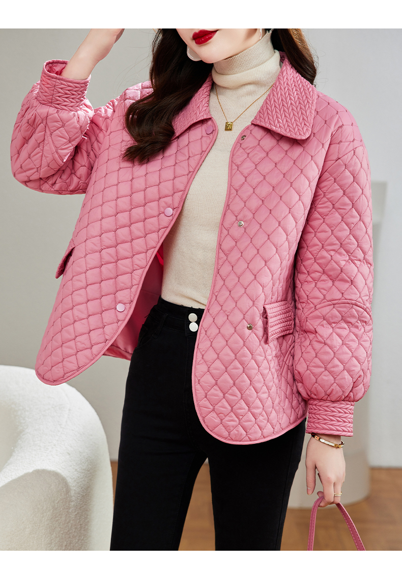 新款韩版宽松显瘦,小个子短款翻领羽绒服菱格外套HR-A71-969