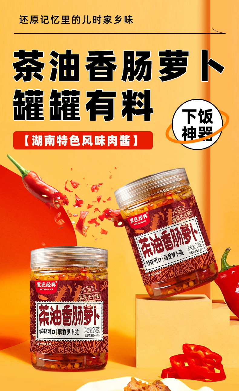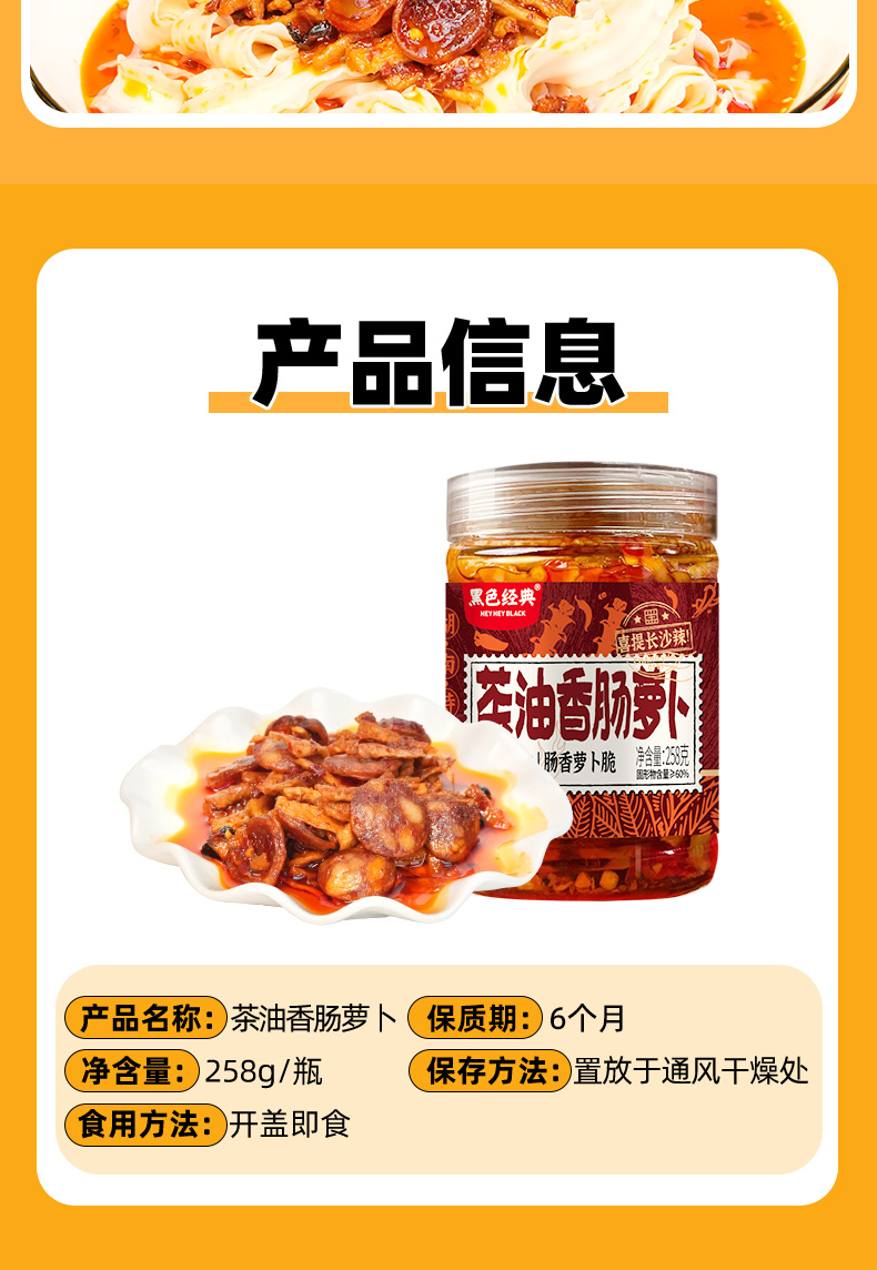 【57.6元任选3件】黑色经典茶油香肠萝卜258g/瓶