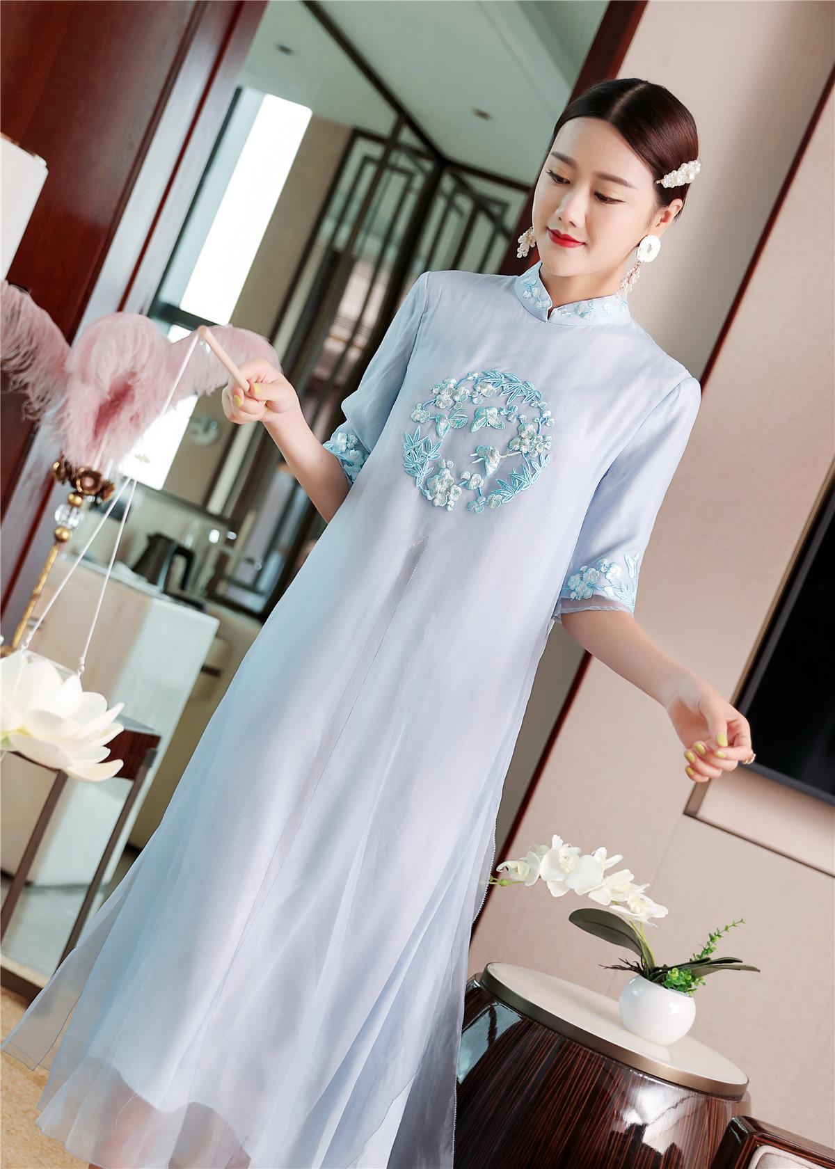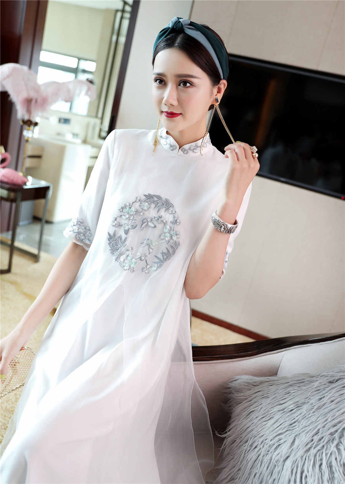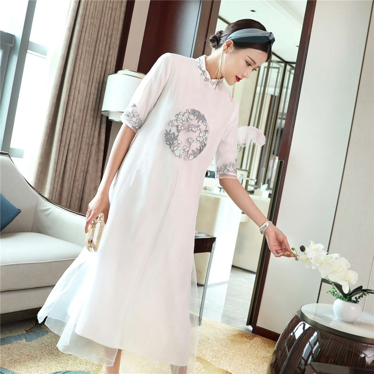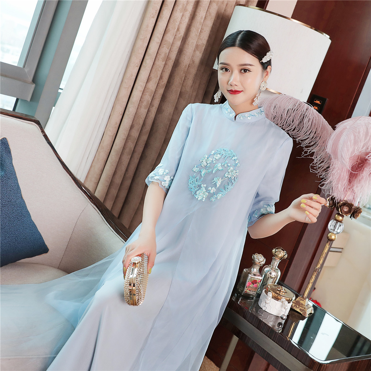 QZ-19110新款民族风刺绣改良汉服气质连衣裙