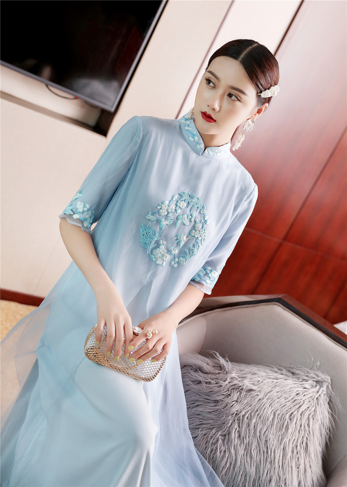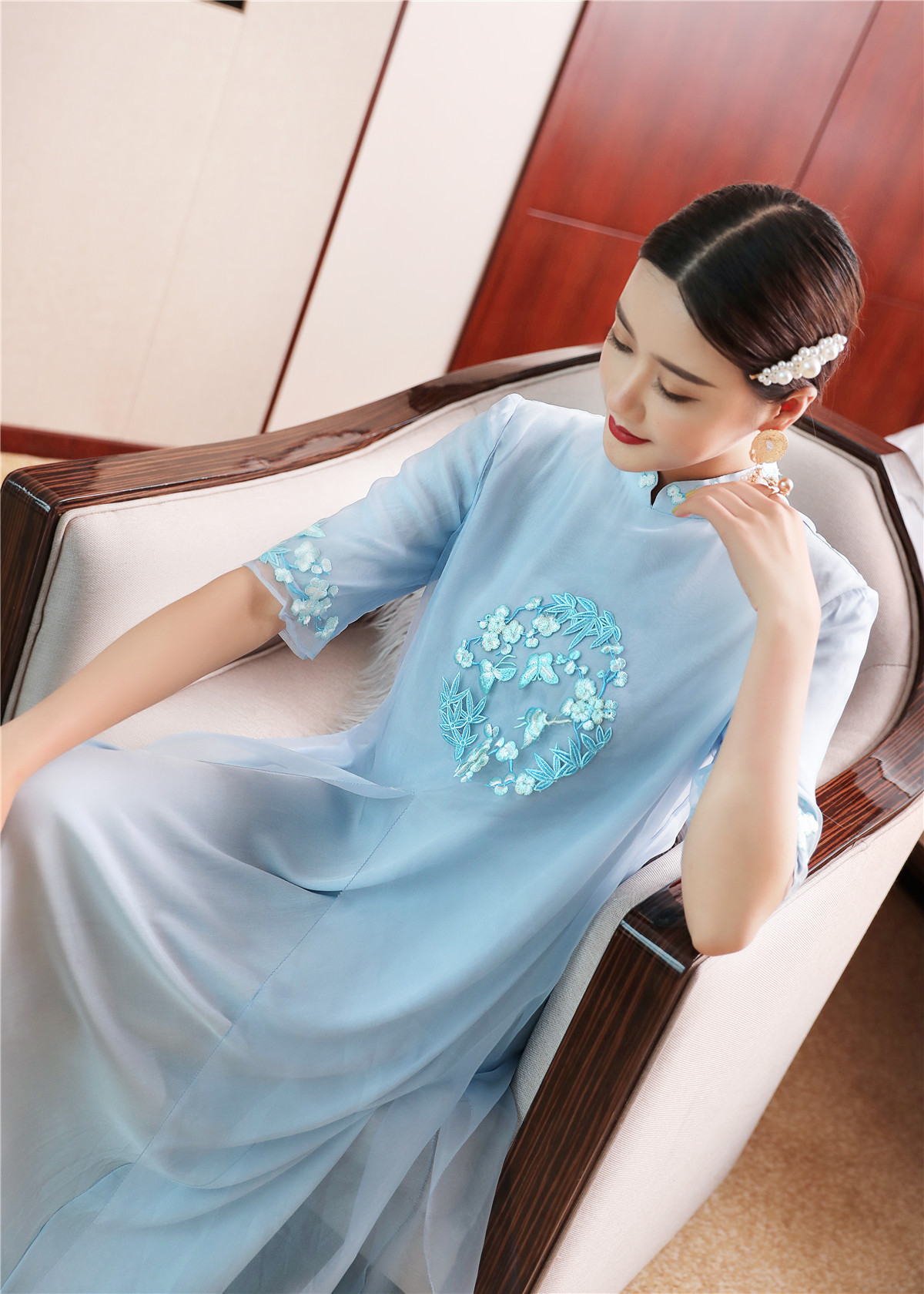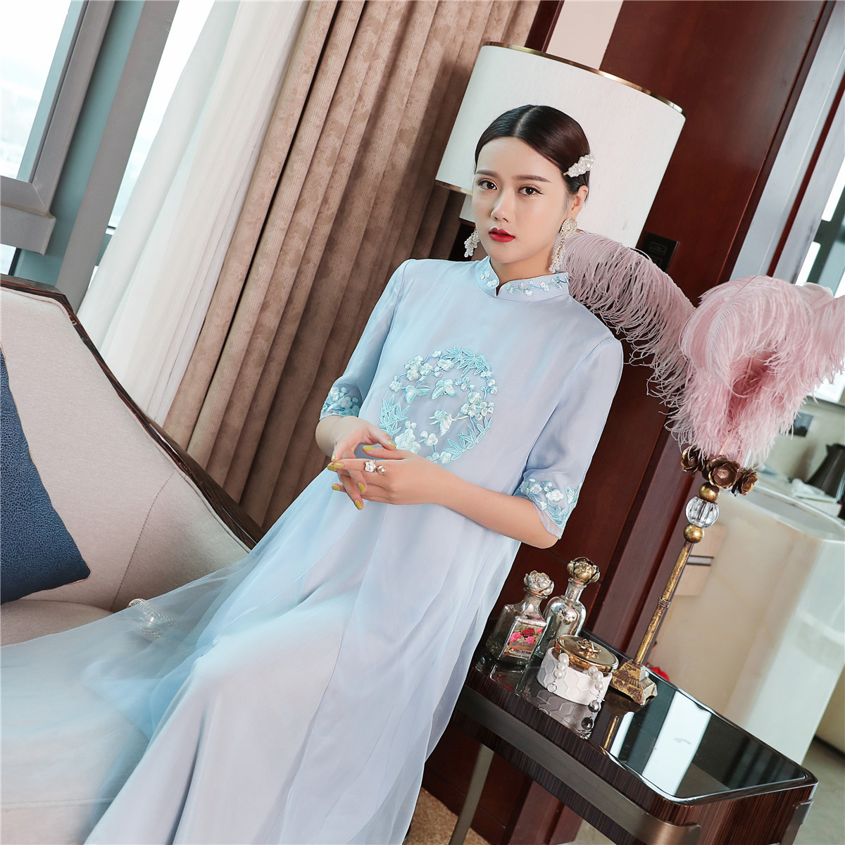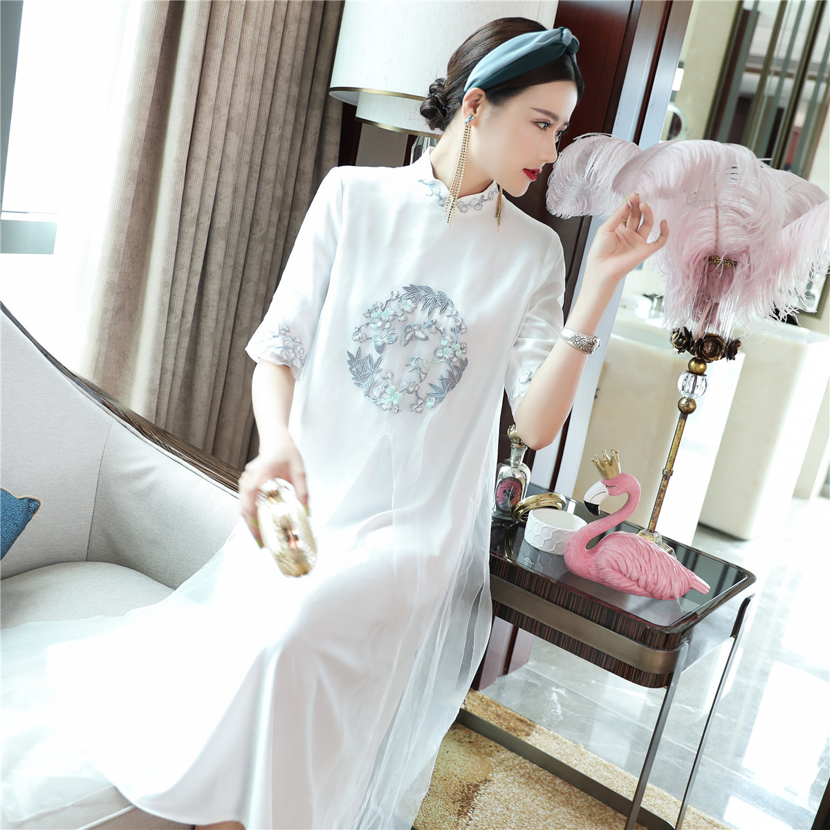 QZ-19110新款民族风刺绣改良汉服气质连衣裙