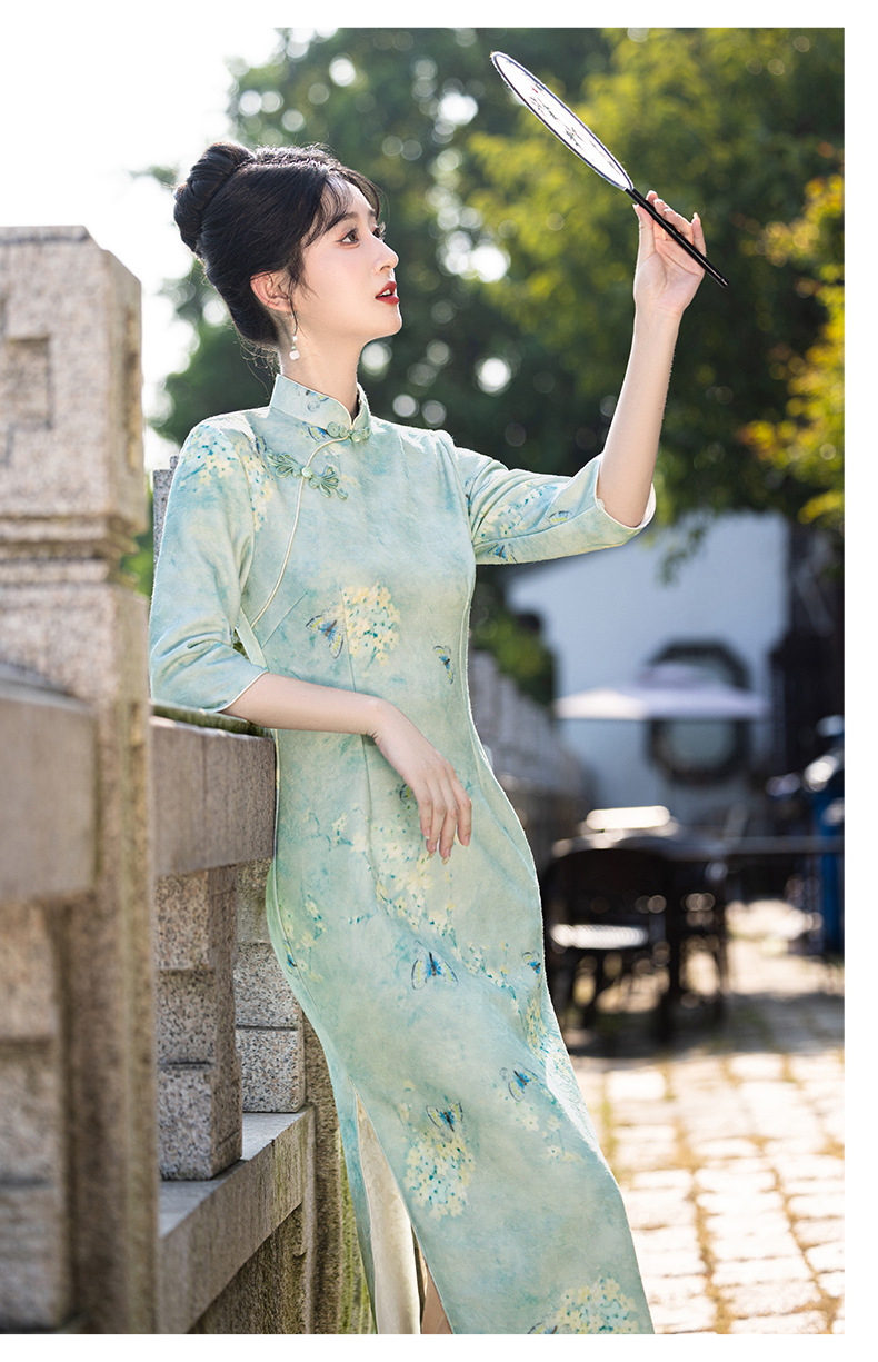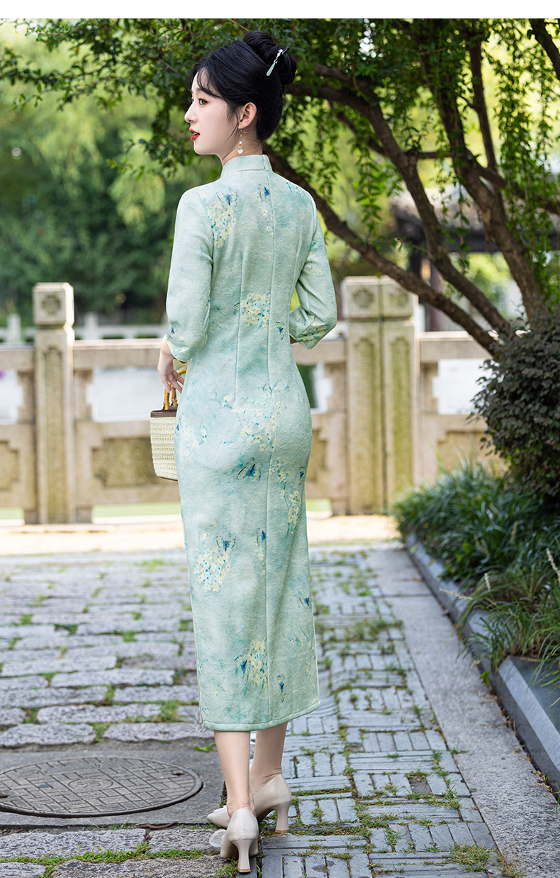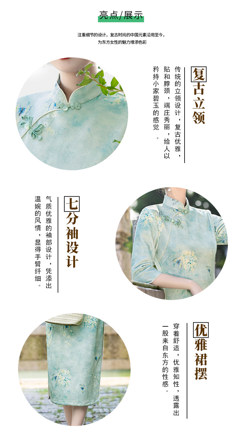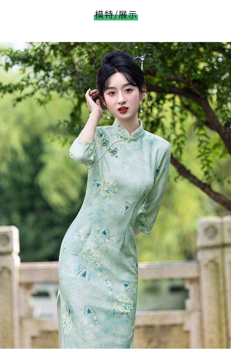 新中式国风改良日常,气质显白长款旗袍裙MLS7027