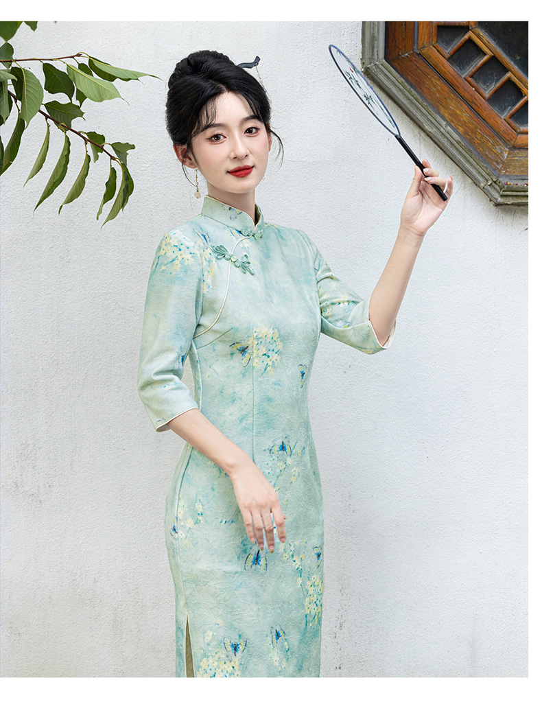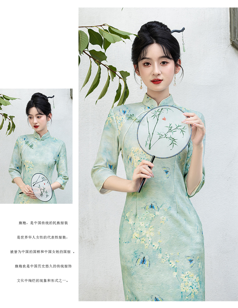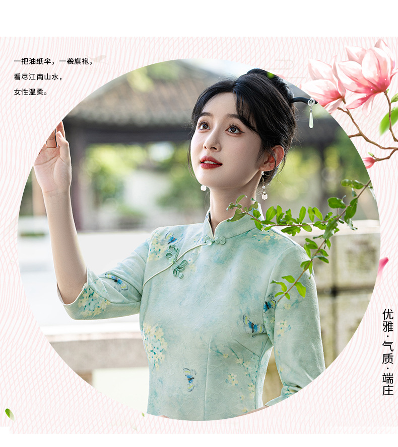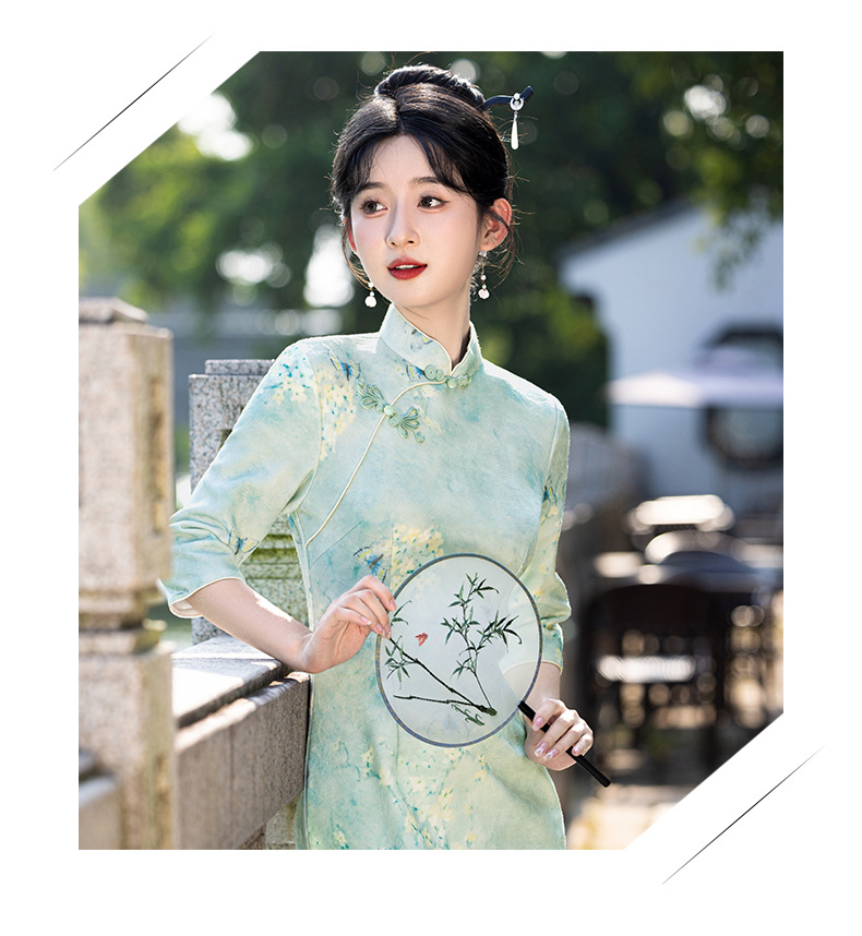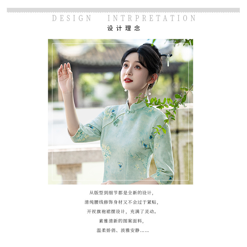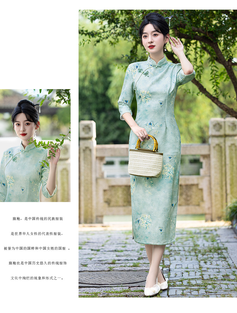 新中式国风改良日常,气质显白长款旗袍裙MLS7027