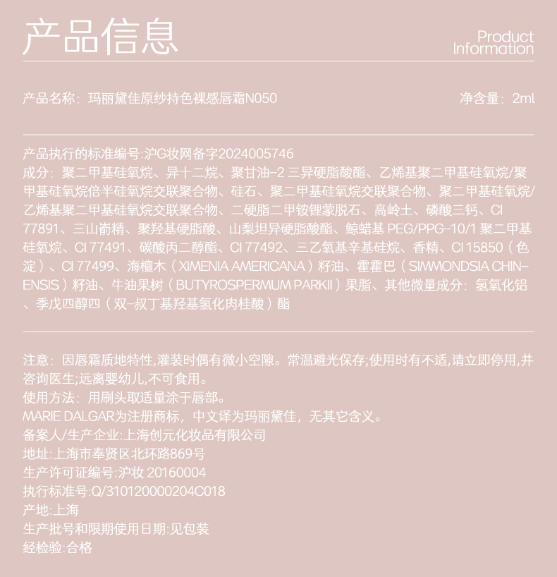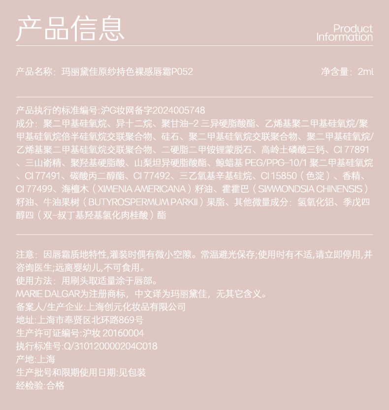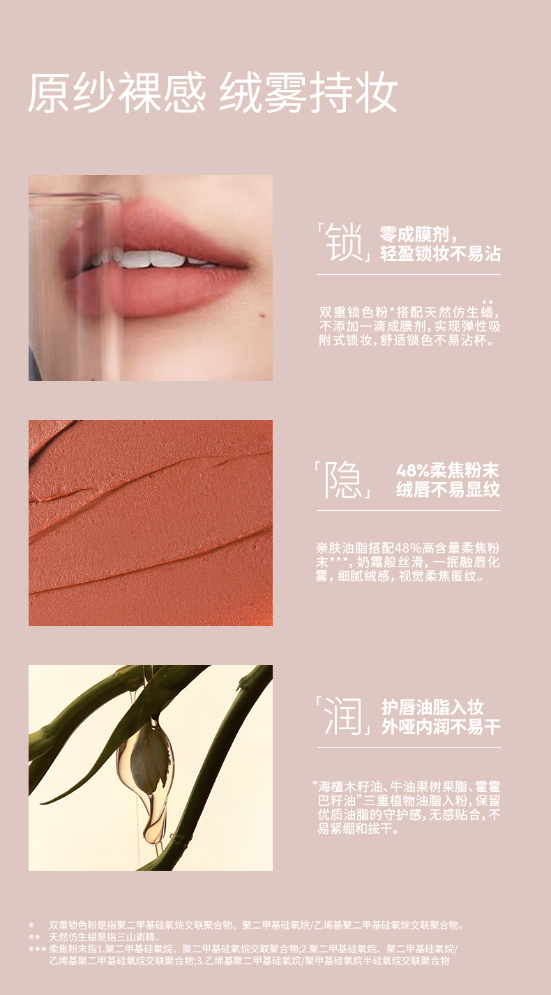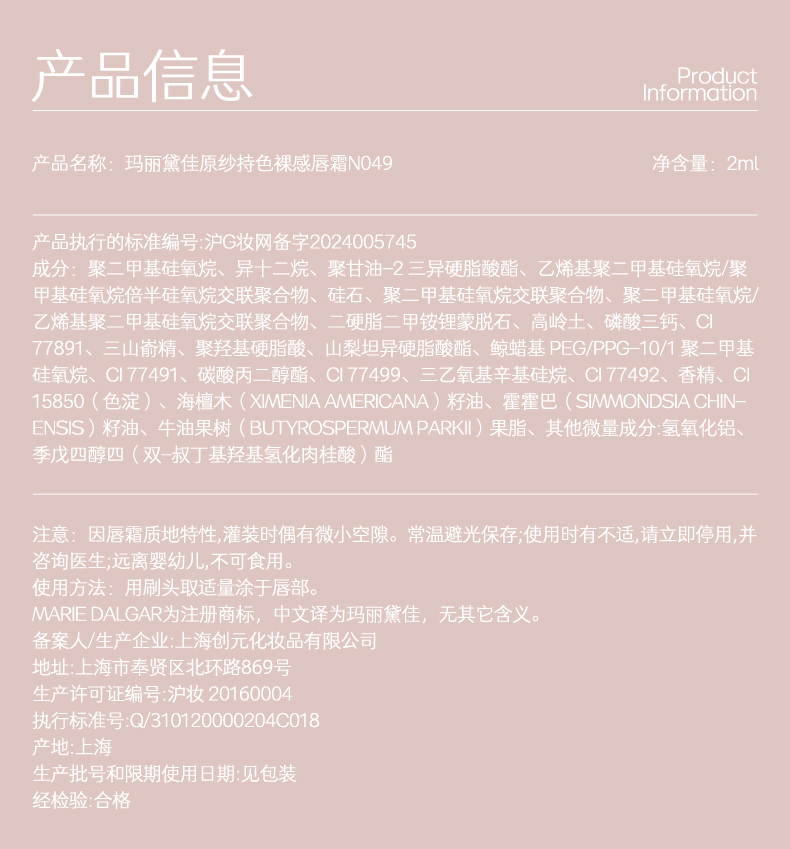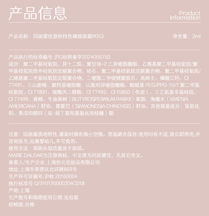 MARIE DALGAR 玛丽黛佳原纱持色裸感唇霜持妆不易粘杯显白绒雾唇釉