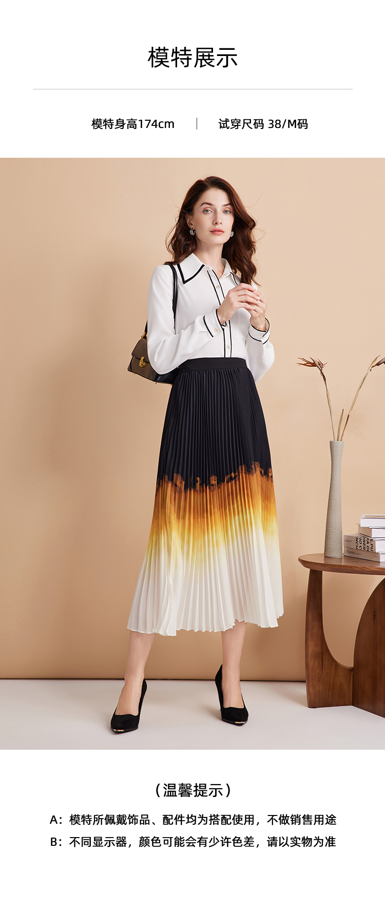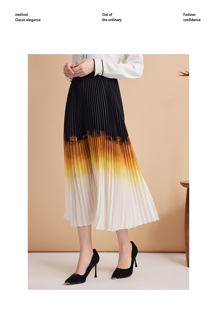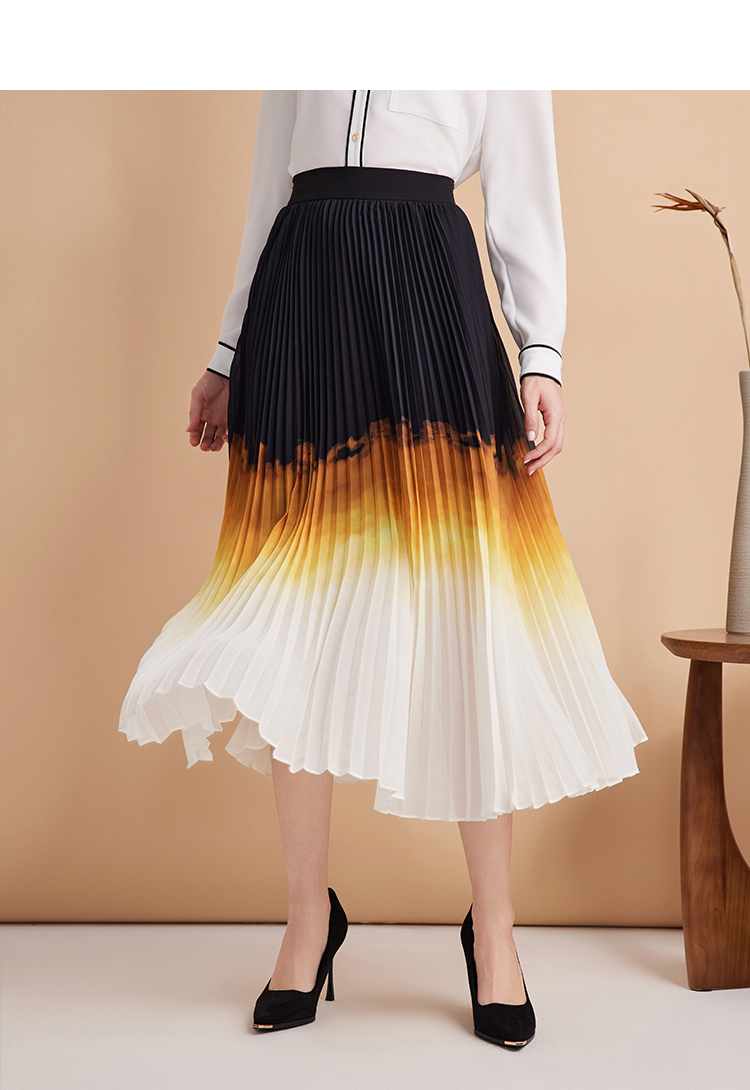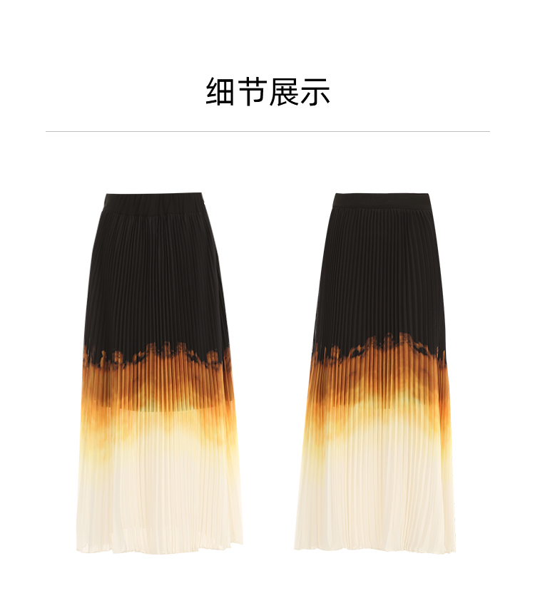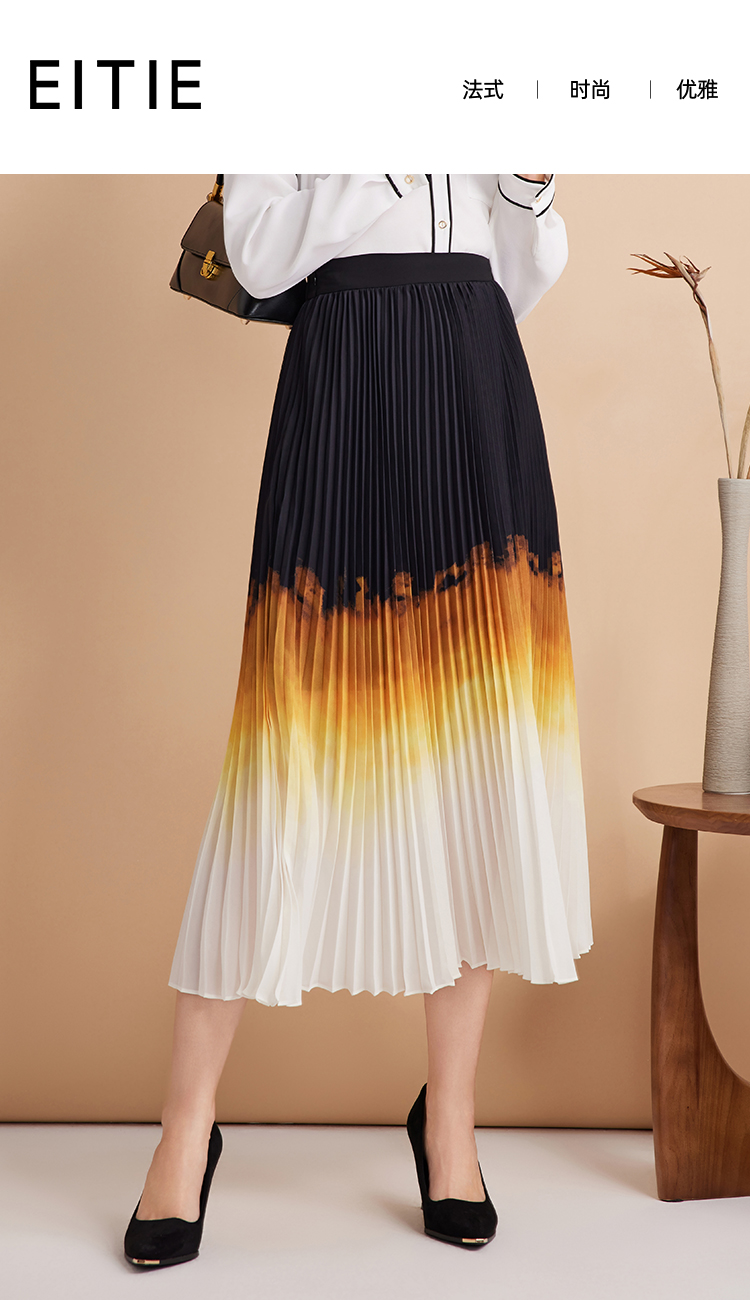 EITIE爱特爱时尚通勤渐变松紧腰显瘦a字百褶半身裙秋季新款7506208