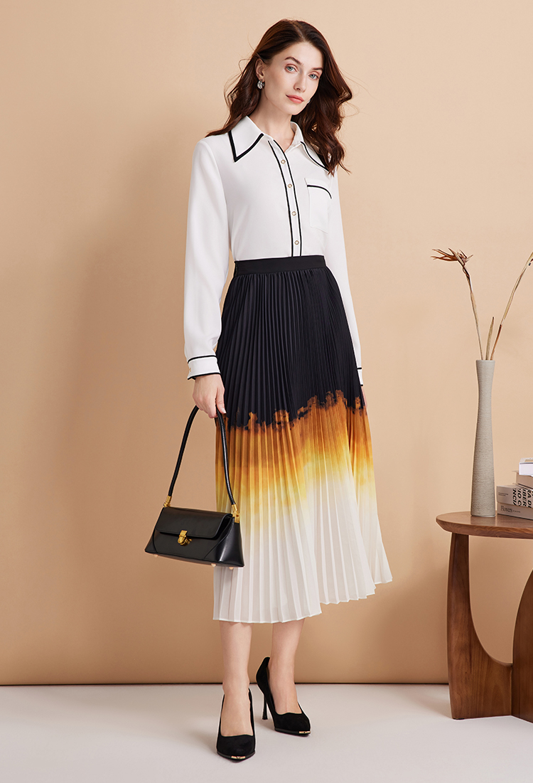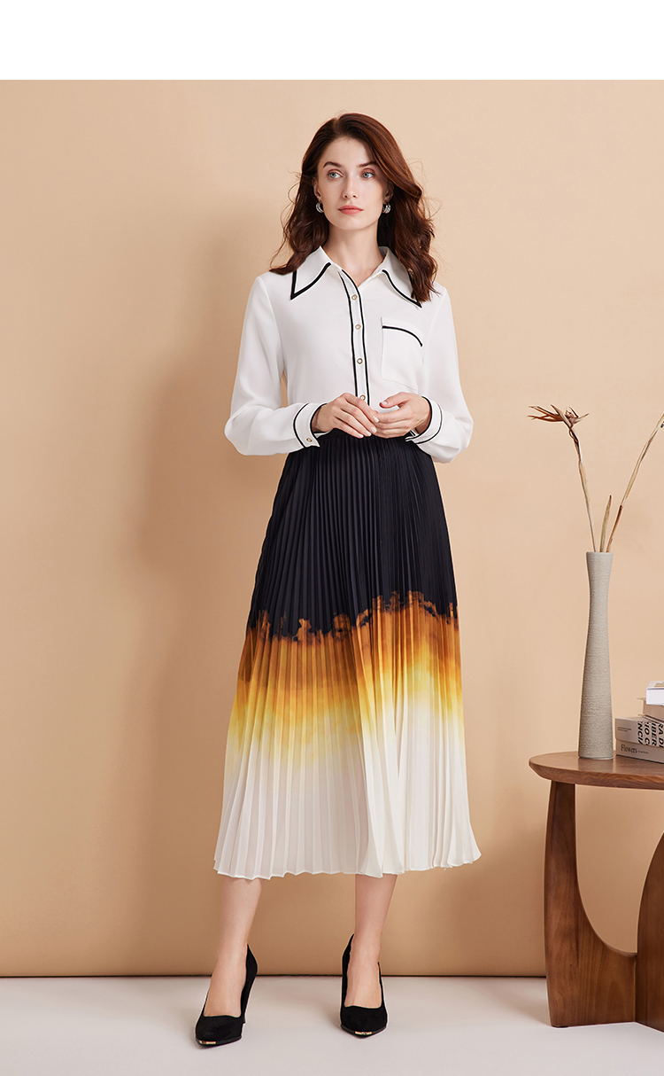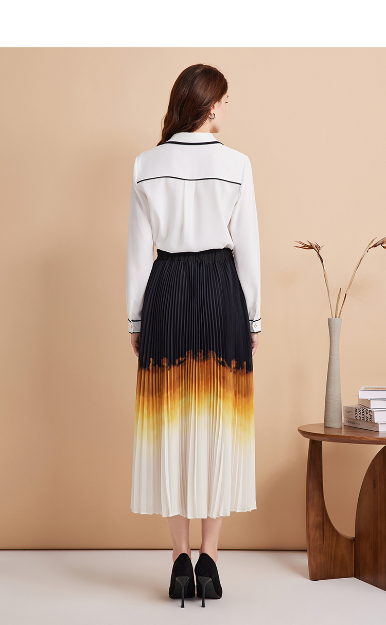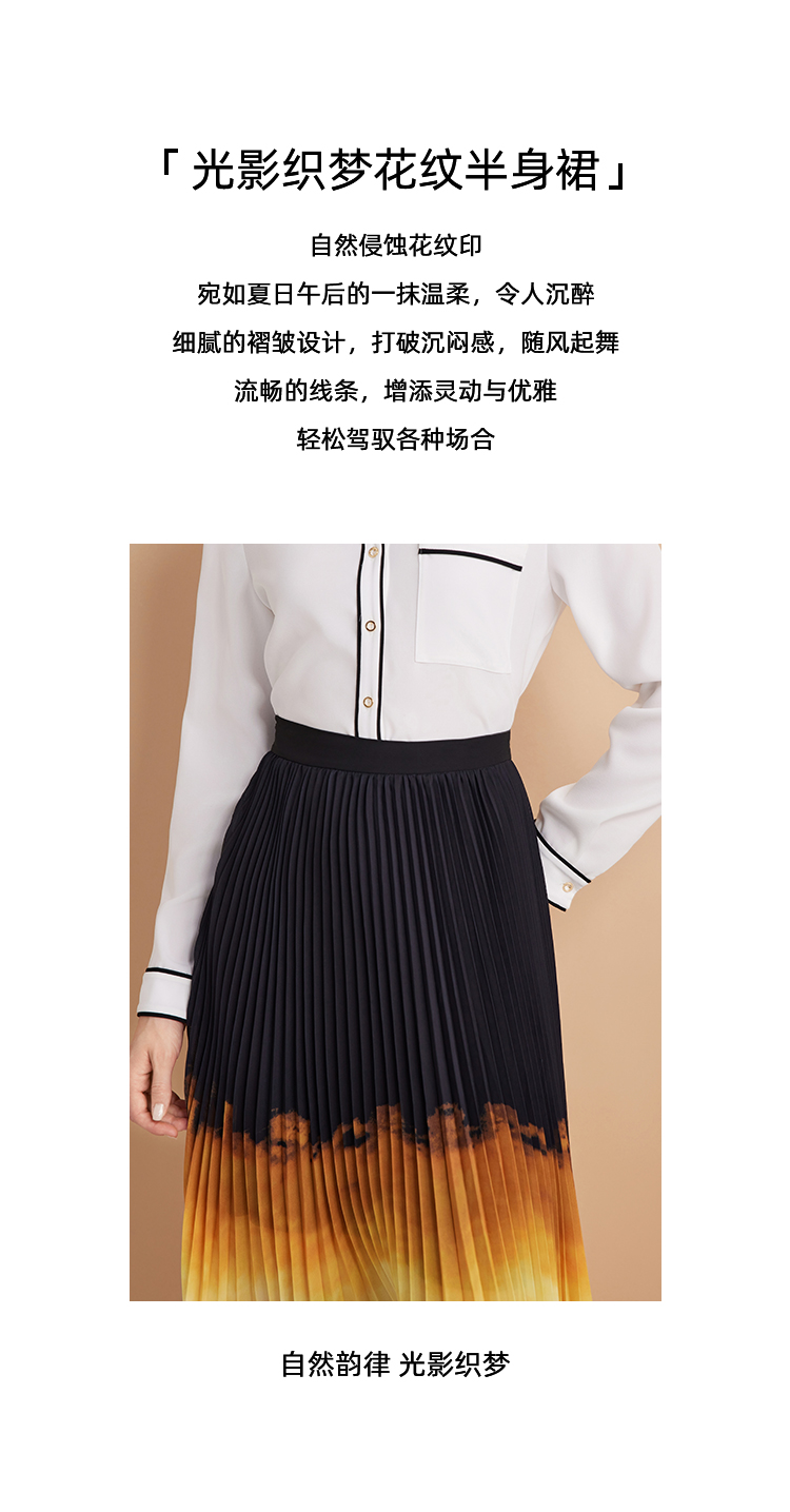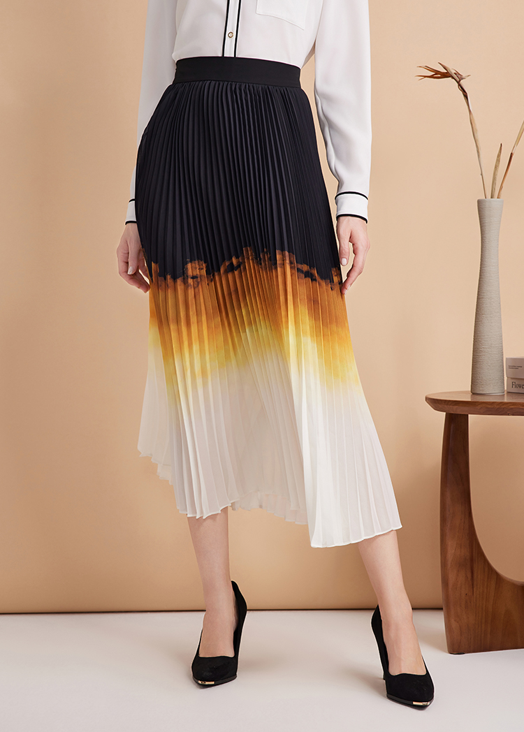 EITIE爱特爱时尚通勤渐变松紧腰显瘦a字百褶半身裙秋季新款7506208