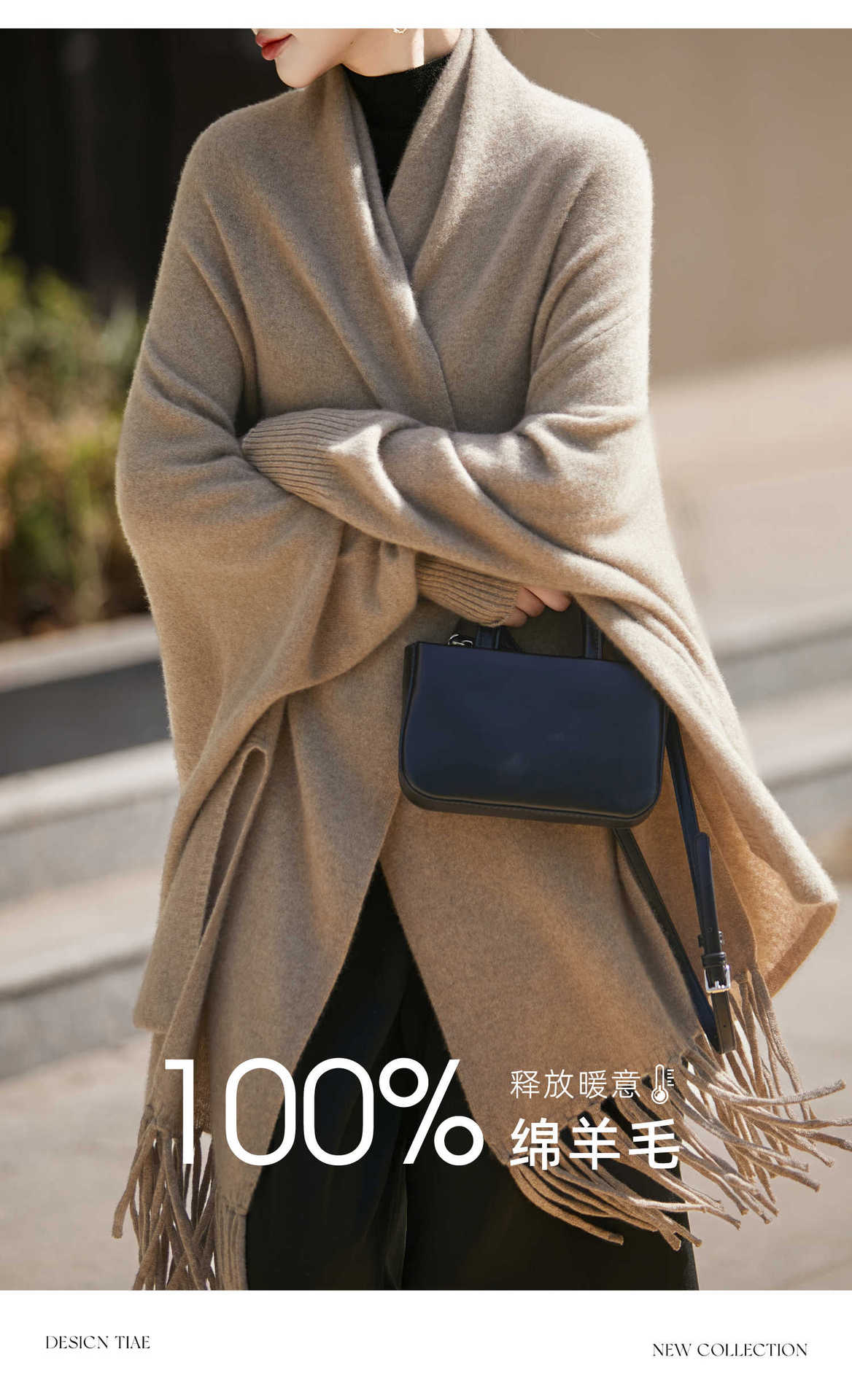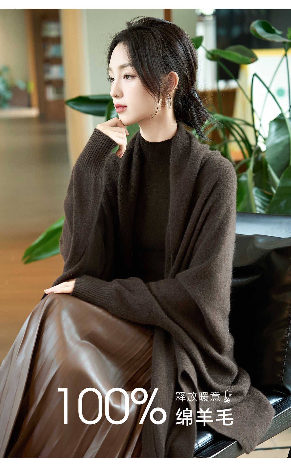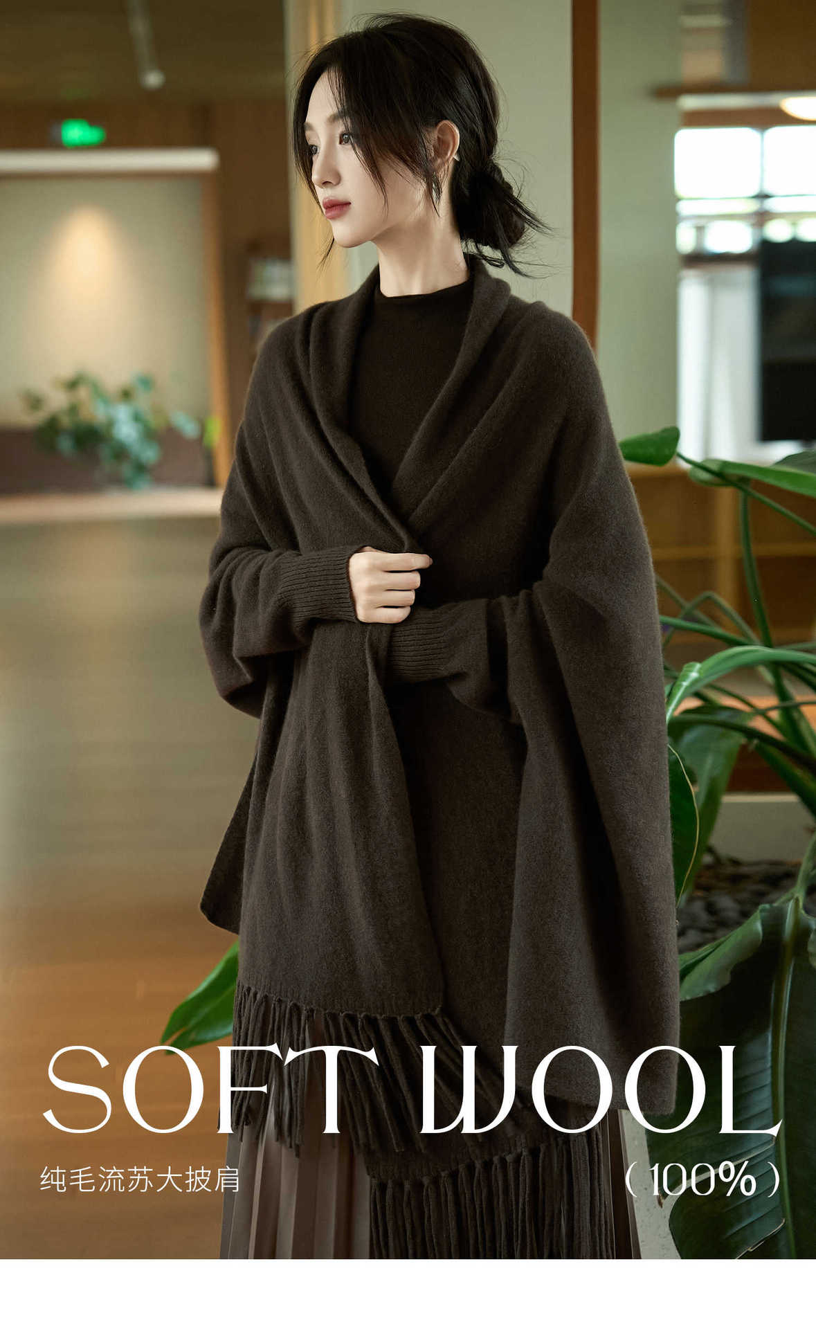 丁摩 法式高级感100纯羊毛针织披肩 NS-5192
