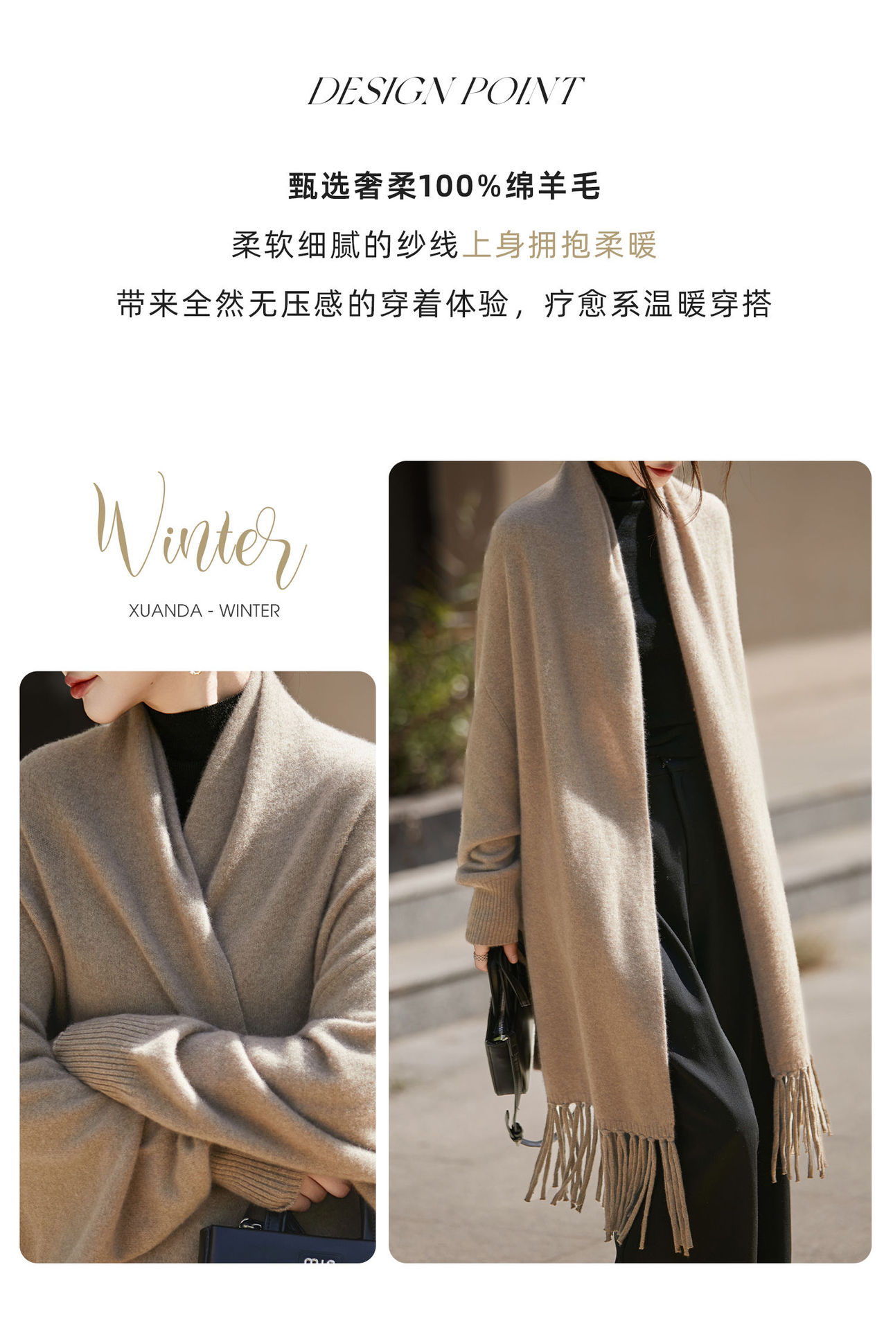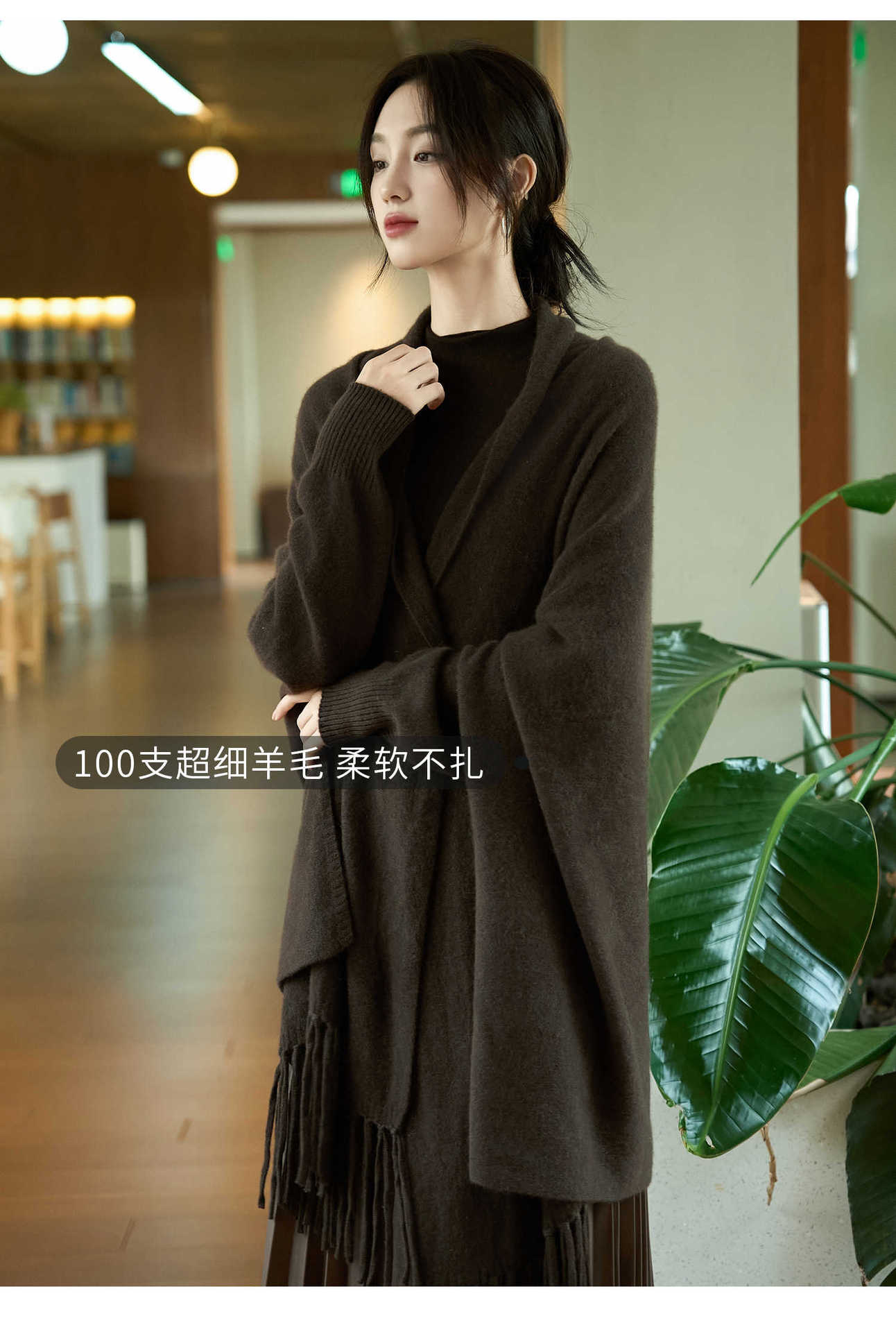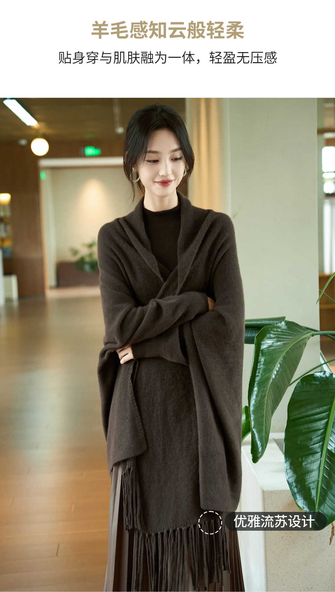 丁摩 法式高级感100纯羊毛针织披肩 NS-5192