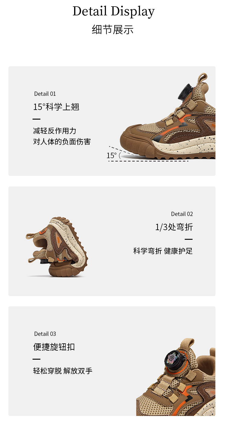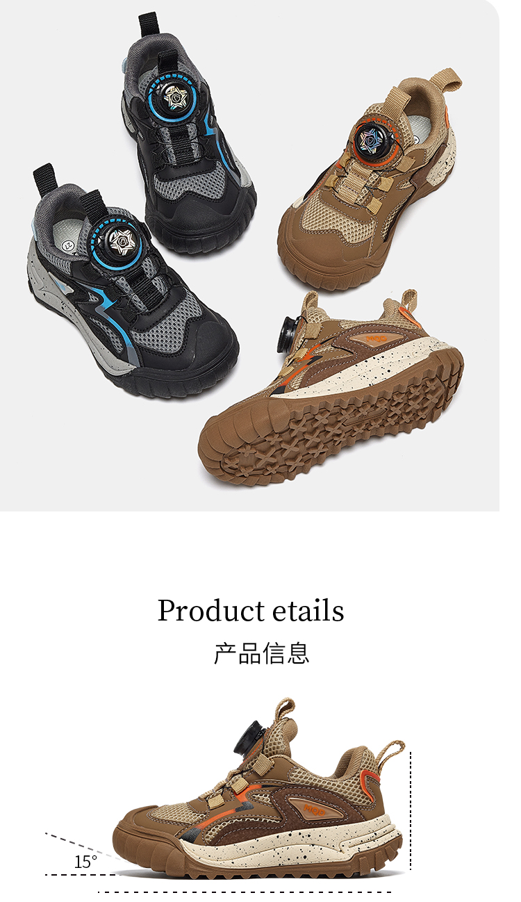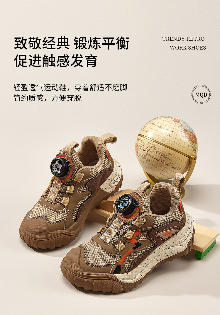 【ZY马骑顿】男童鞋子男孩运动鞋网面透气旋转纽扣儿童户外休闲鞋