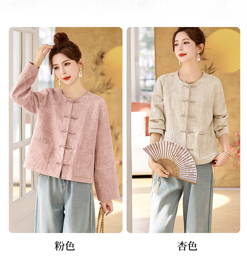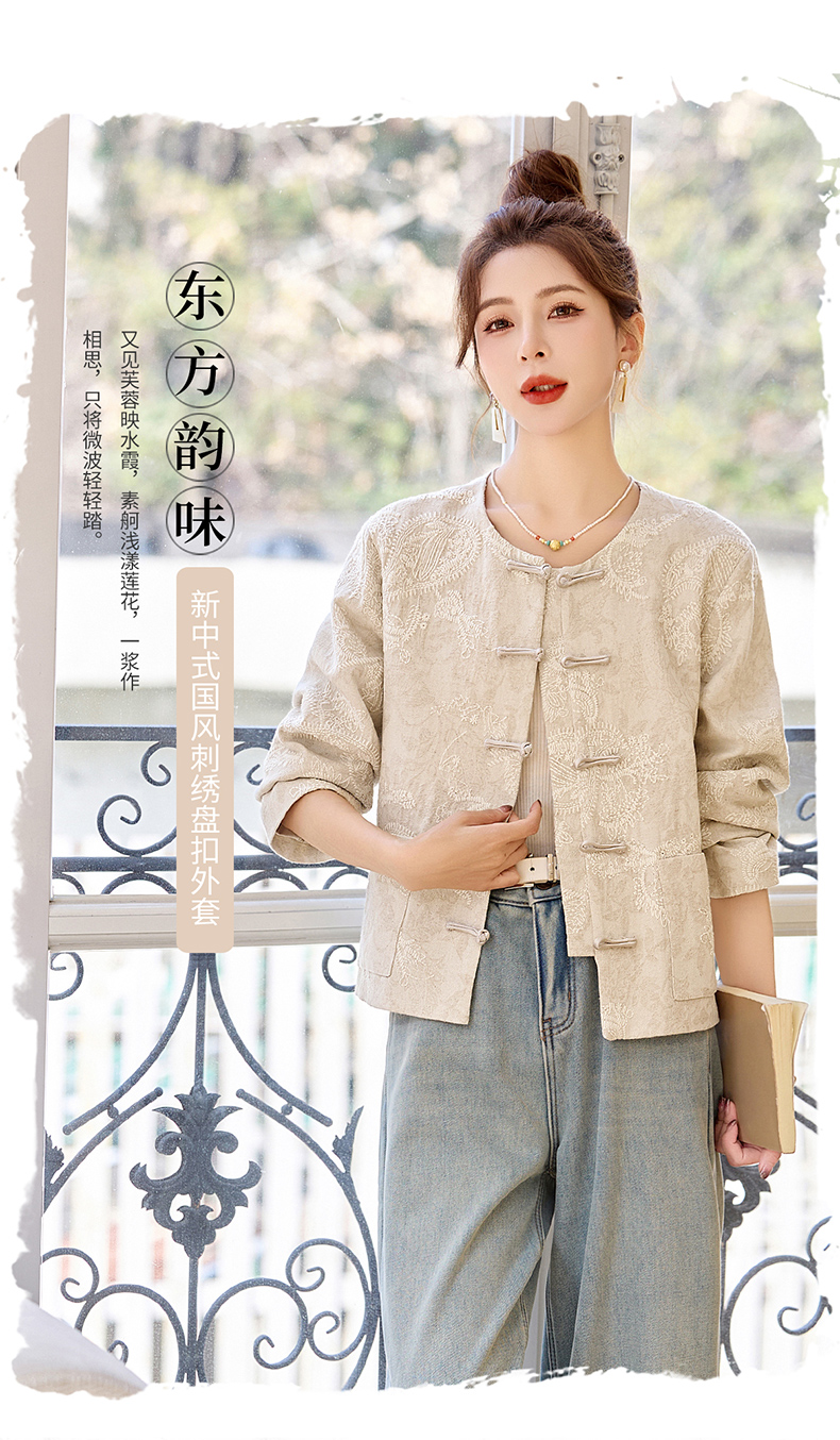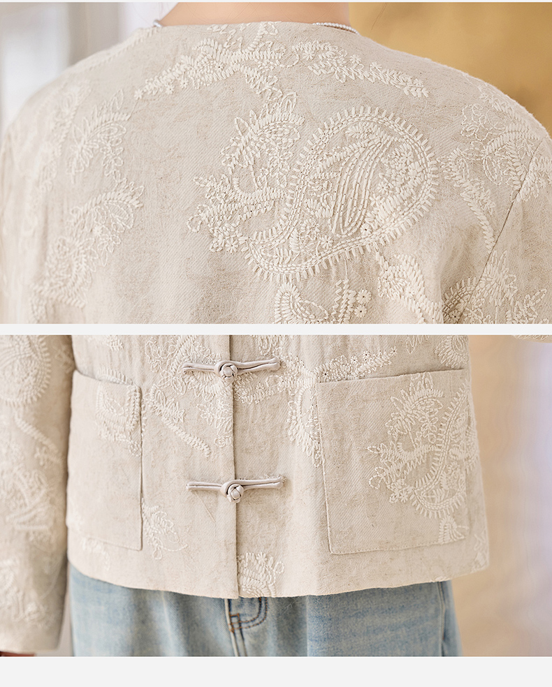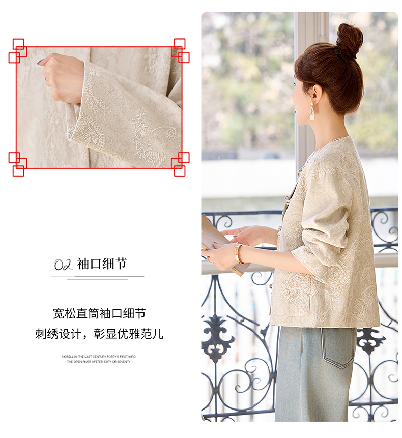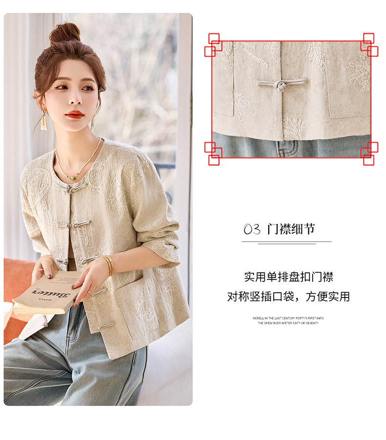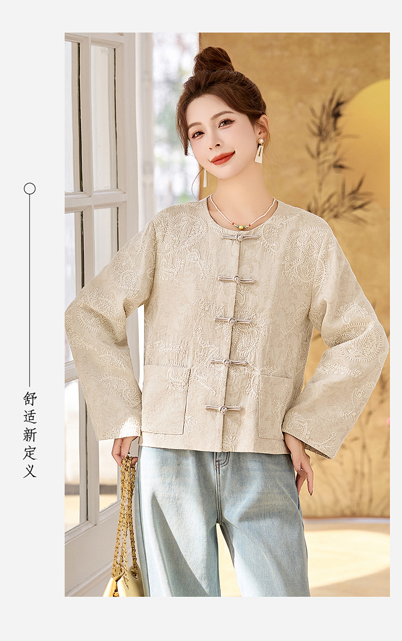 新中式国风外套,时尚复古腰果花亚麻棉刺绣圆领上衣HR-GJC2519