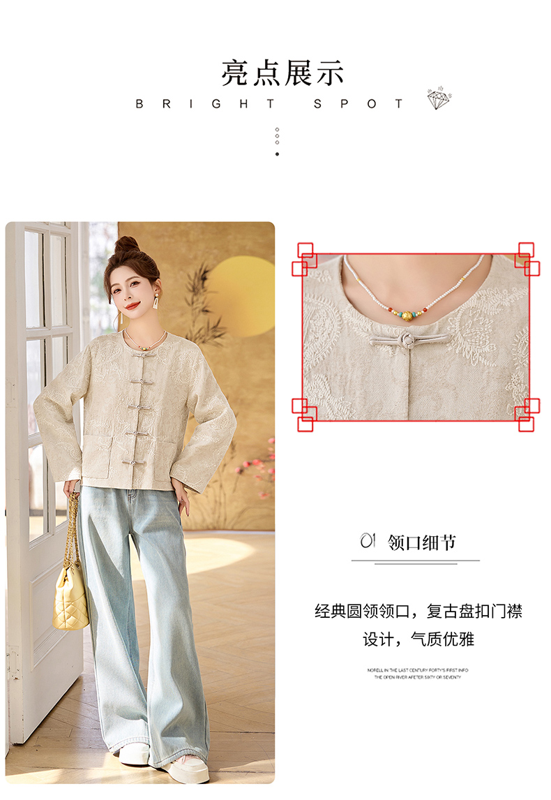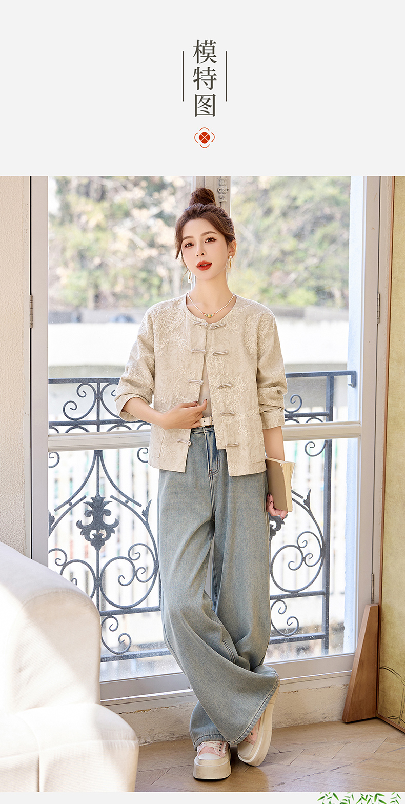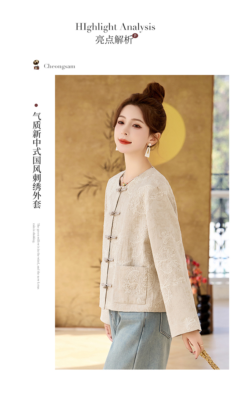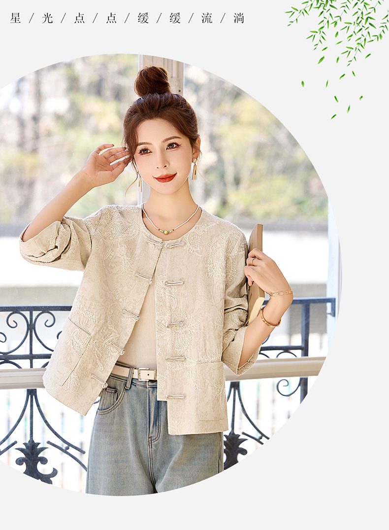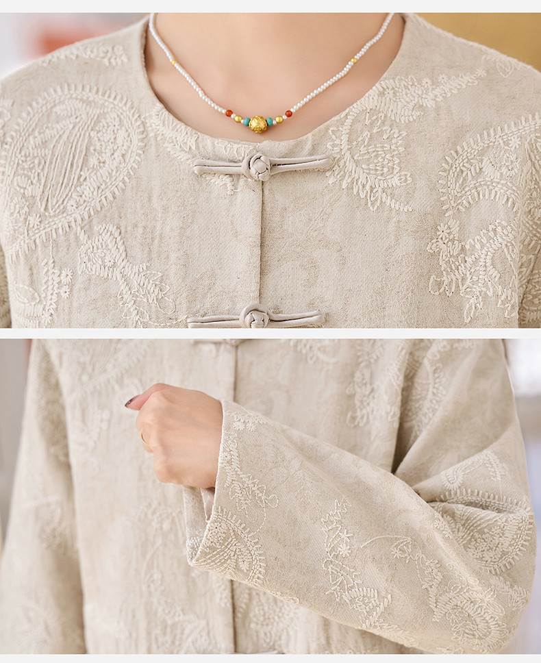 新中式国风外套,时尚复古腰果花亚麻棉刺绣圆领上衣HR-GJC2519