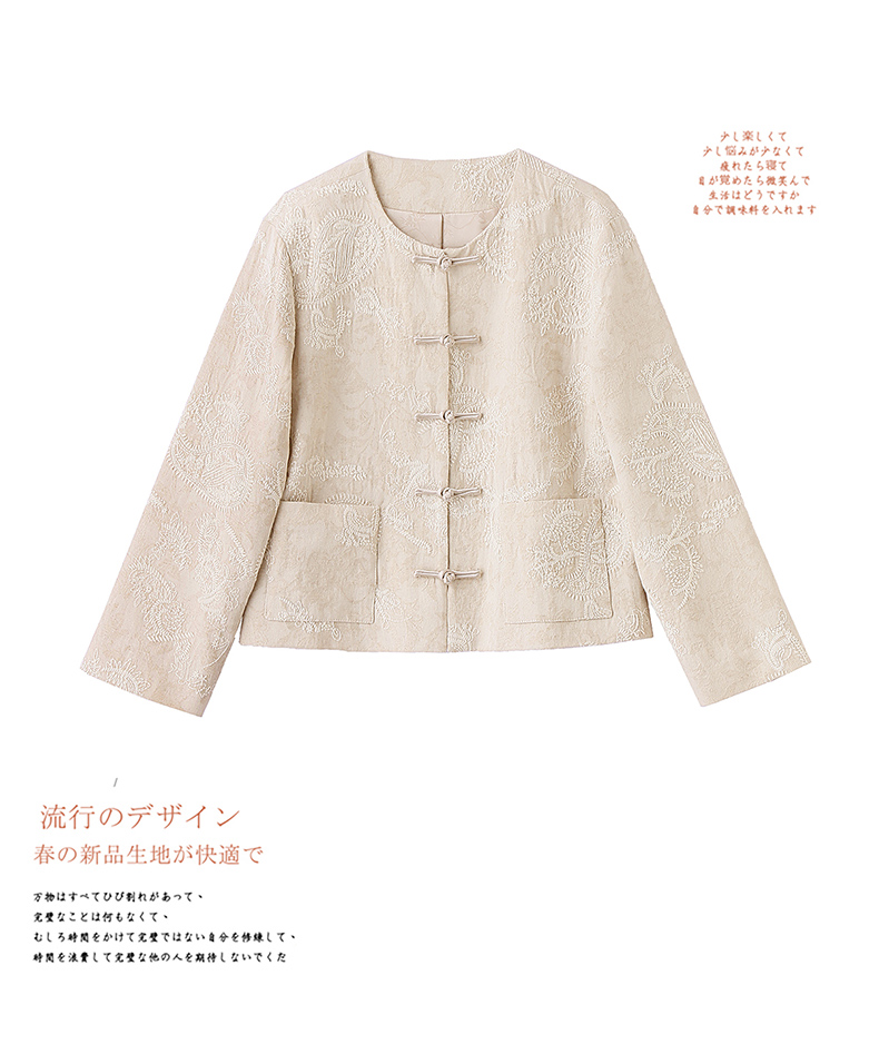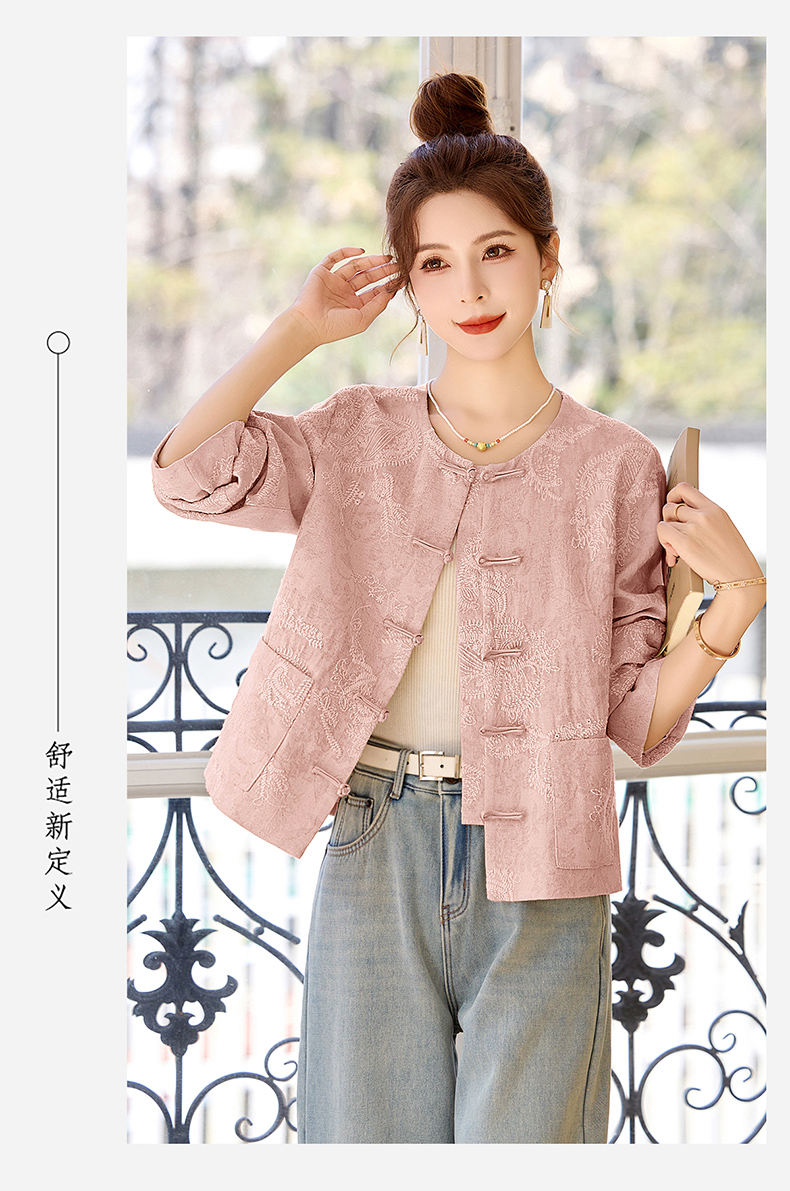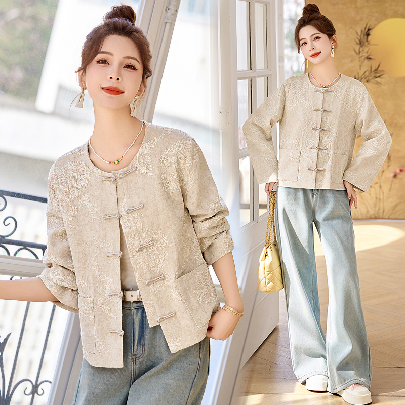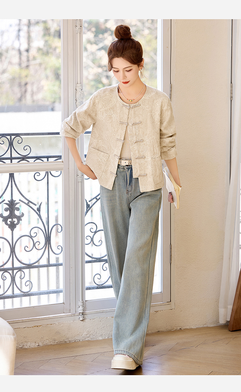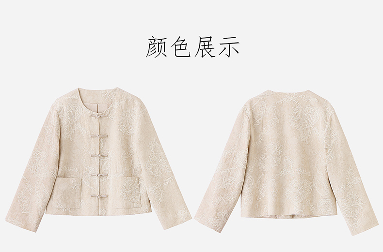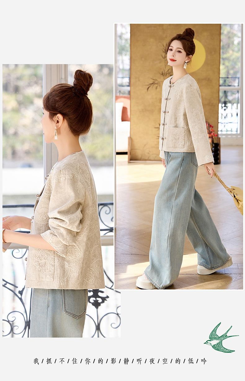新中式国风外套,时尚复古腰果花亚麻棉刺绣圆领上衣HR-GJC2519